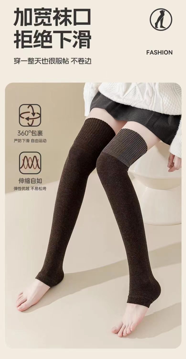 무릎 양말 남성용 및 여성용 면 기모 두꺼운 무릎 위 긴 가을과 겨울 방한 보온 방한 오래 된 차가운 다리 미끄럼 방지스토어 가기