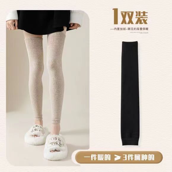 무릎 양말 남성용 및 여성용 면 기모 두꺼운 무릎 위 긴 가을과 겨울 방한 보온 방한 오래 된 차가운 다리 미끄럼 방지