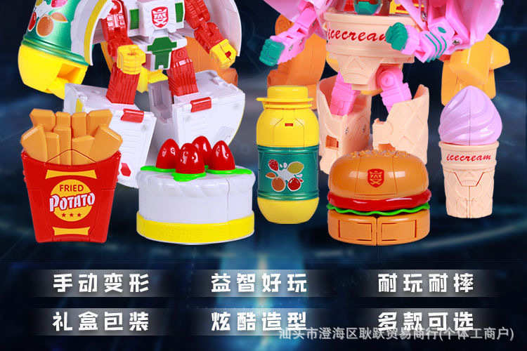 어린이 음식 변형 장난감 아이스크림 감자 튀김 햄버거 로봇 교육 창조적 인 선물 소년 소녀 세트스토어 가기