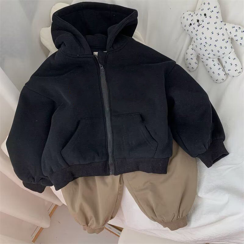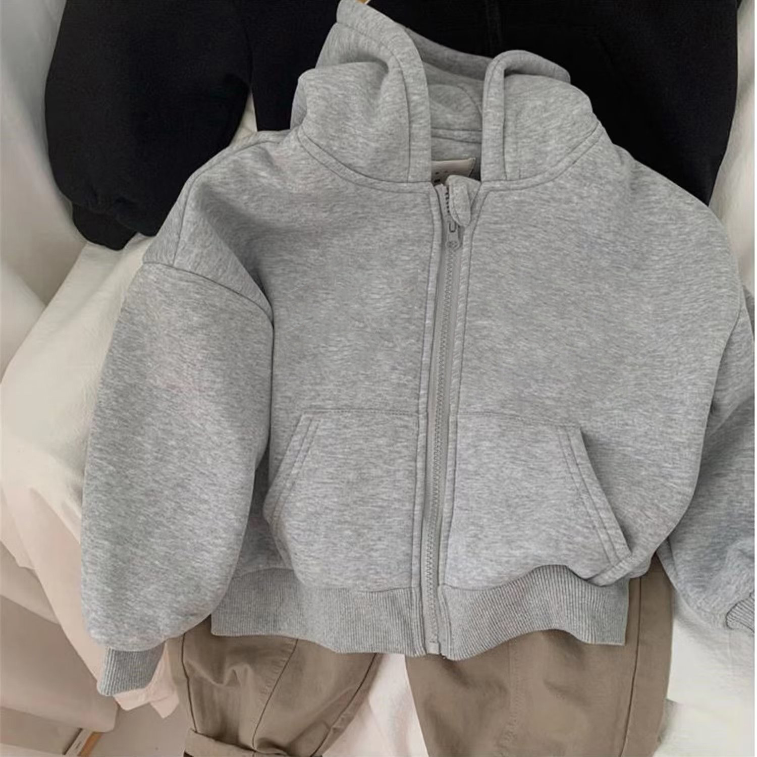소년을위한 어린이 카디건 후드 스웨터 봄과 가을, 겨울 트렌디 느슨한 올 매치 솔리드 컬러 중대형 아동복 외부 풀오버