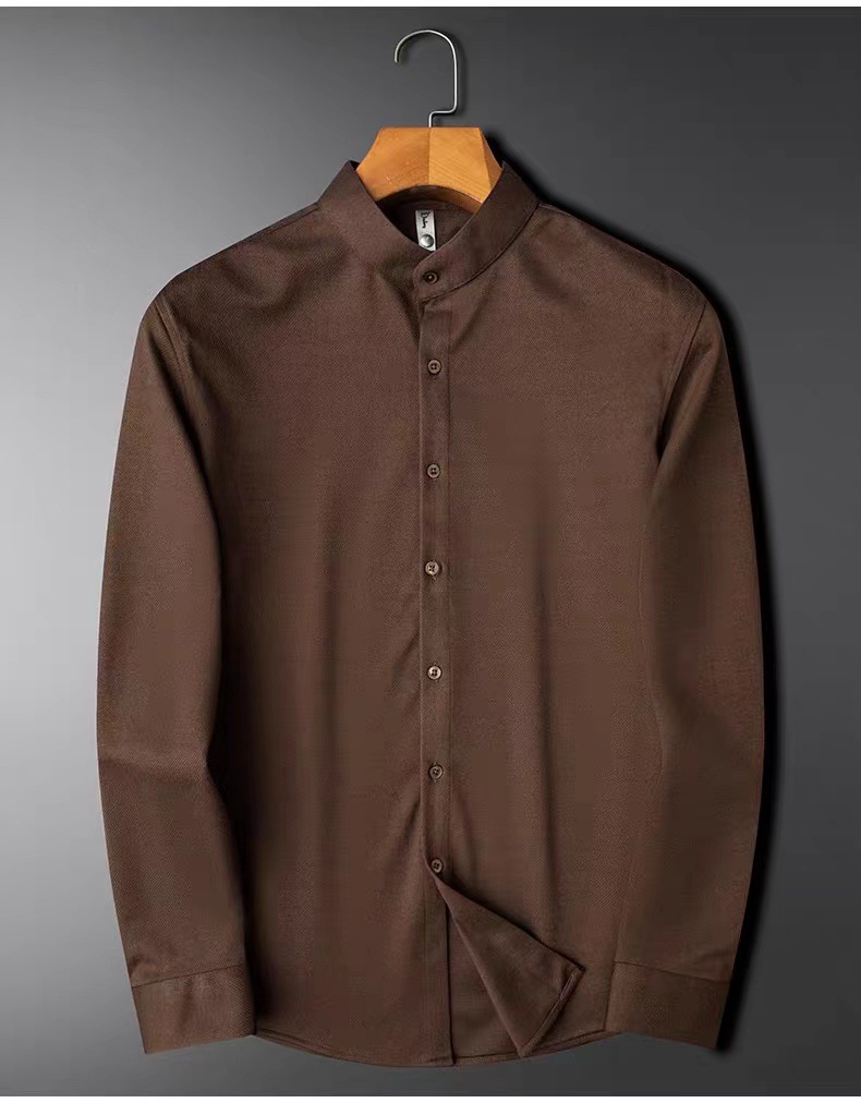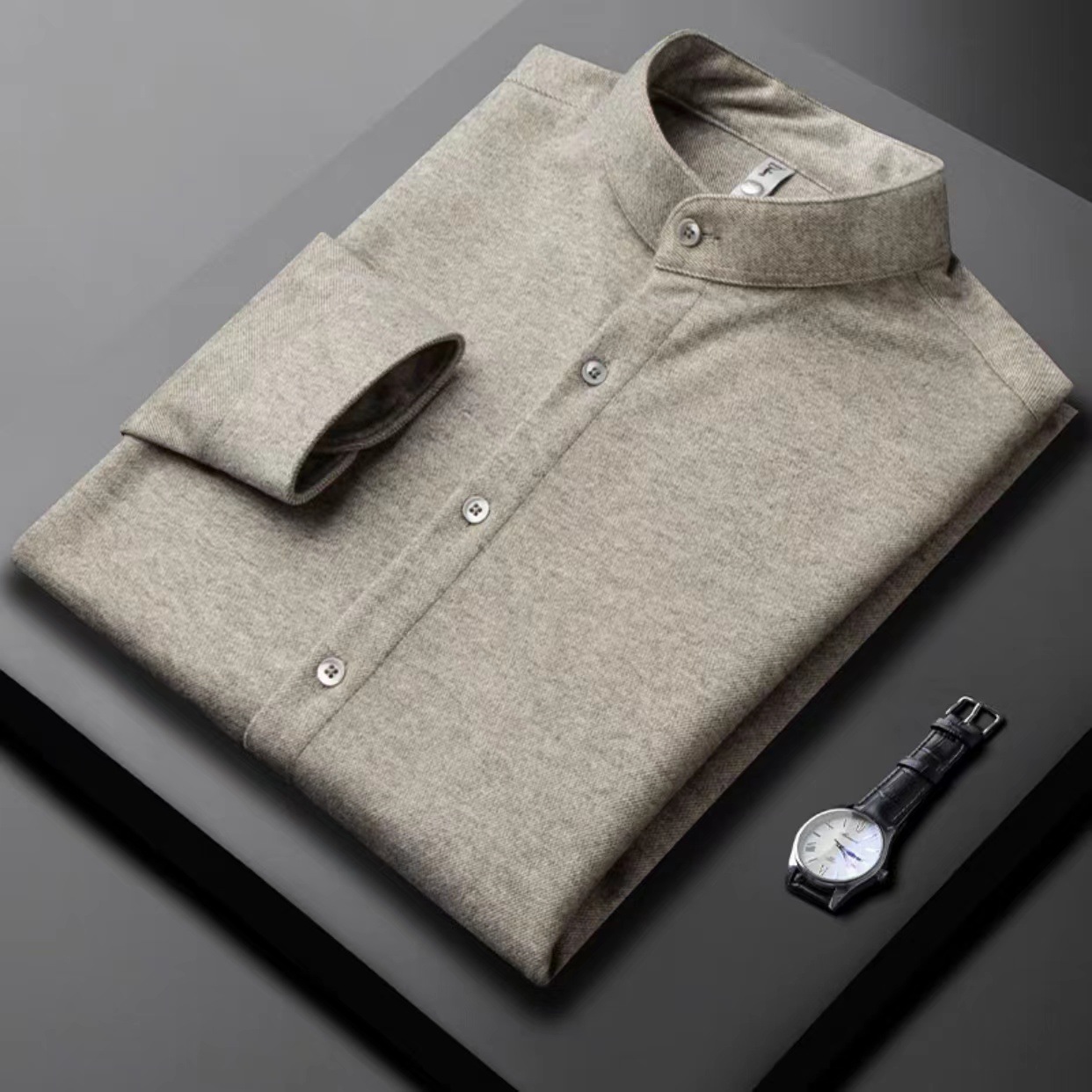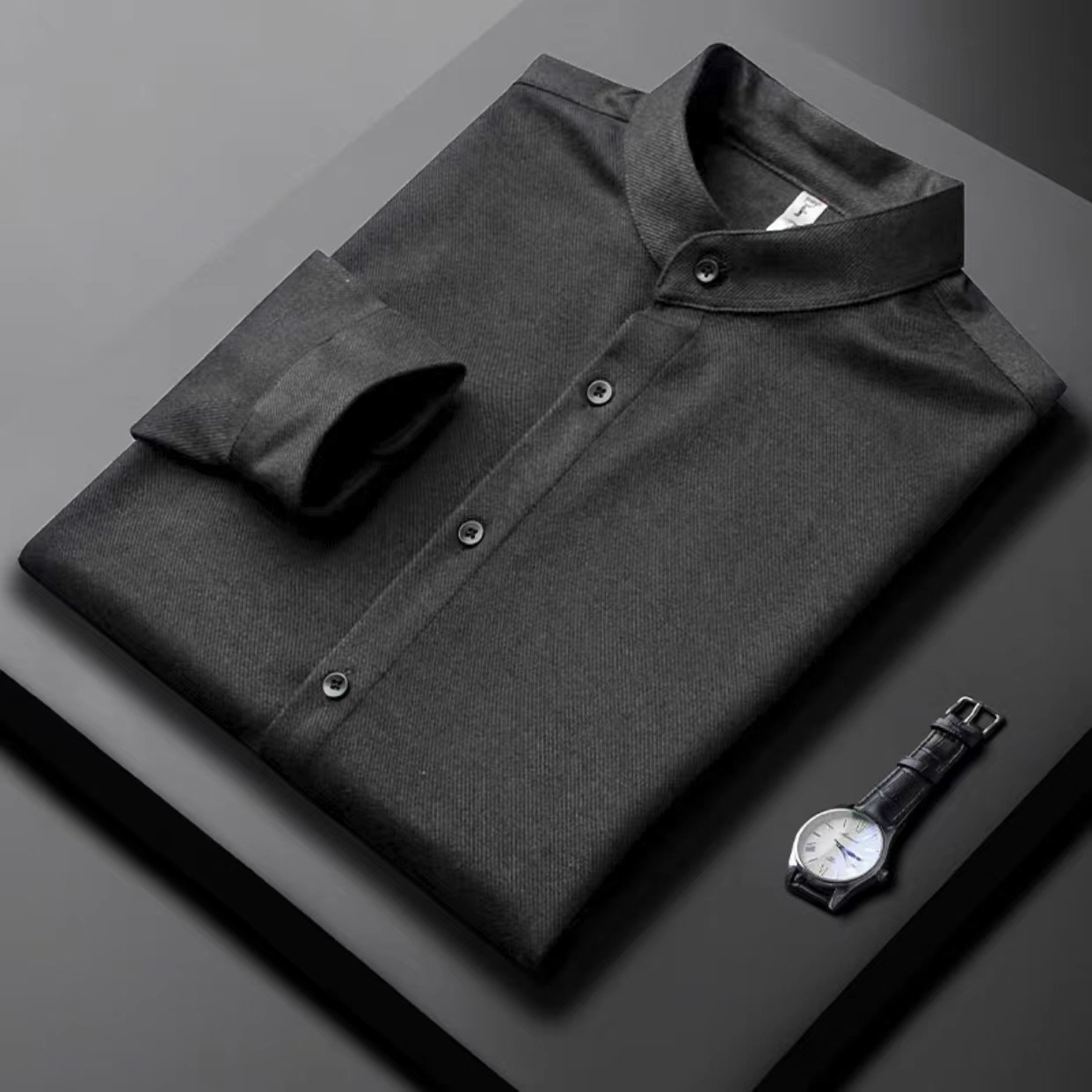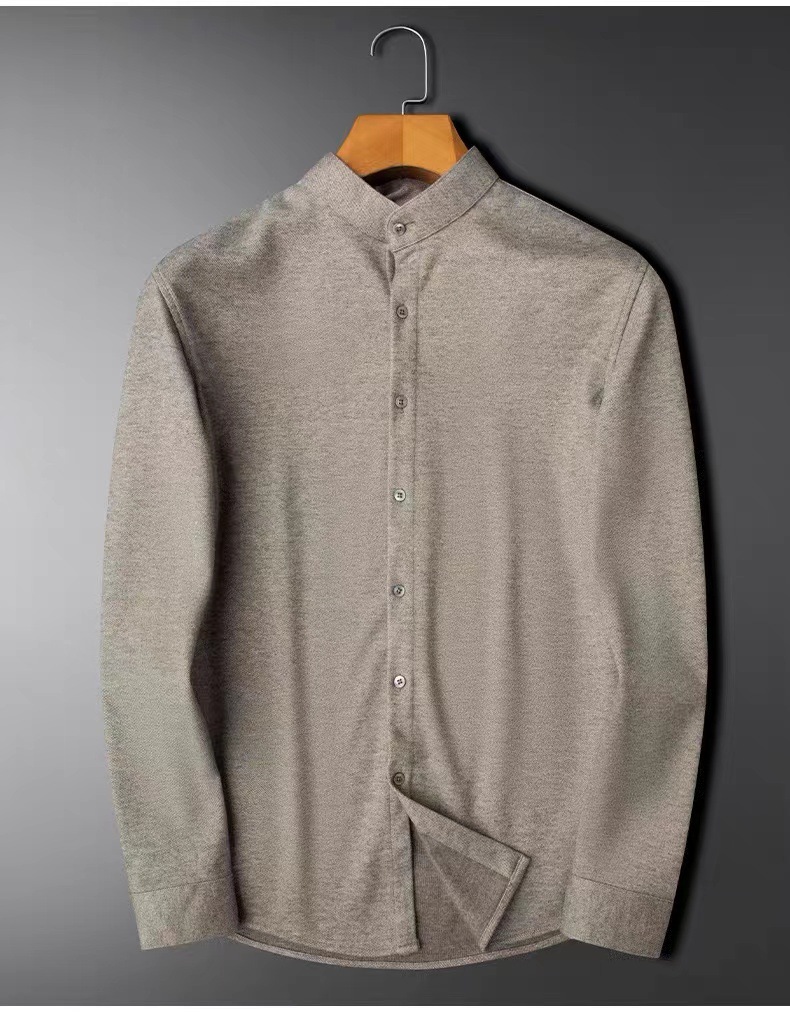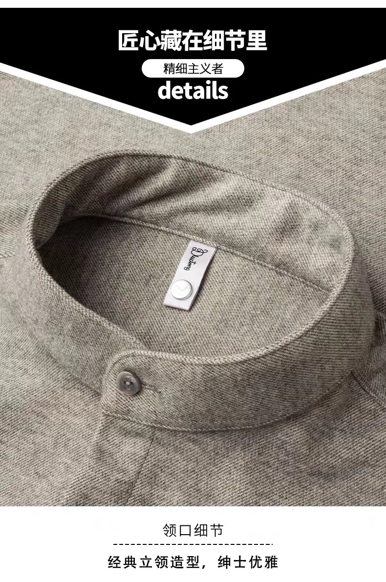 가벼운 럭셔리 겨울 따뜻한 모직 스탠드 칼라 셔츠 남성용 긴팔 비즈니스 캐주얼 주름 방지 슬림핏 청소년 중산 칼라 셔츠