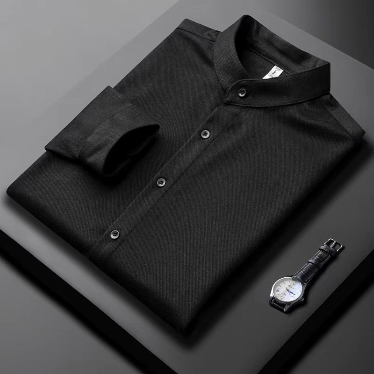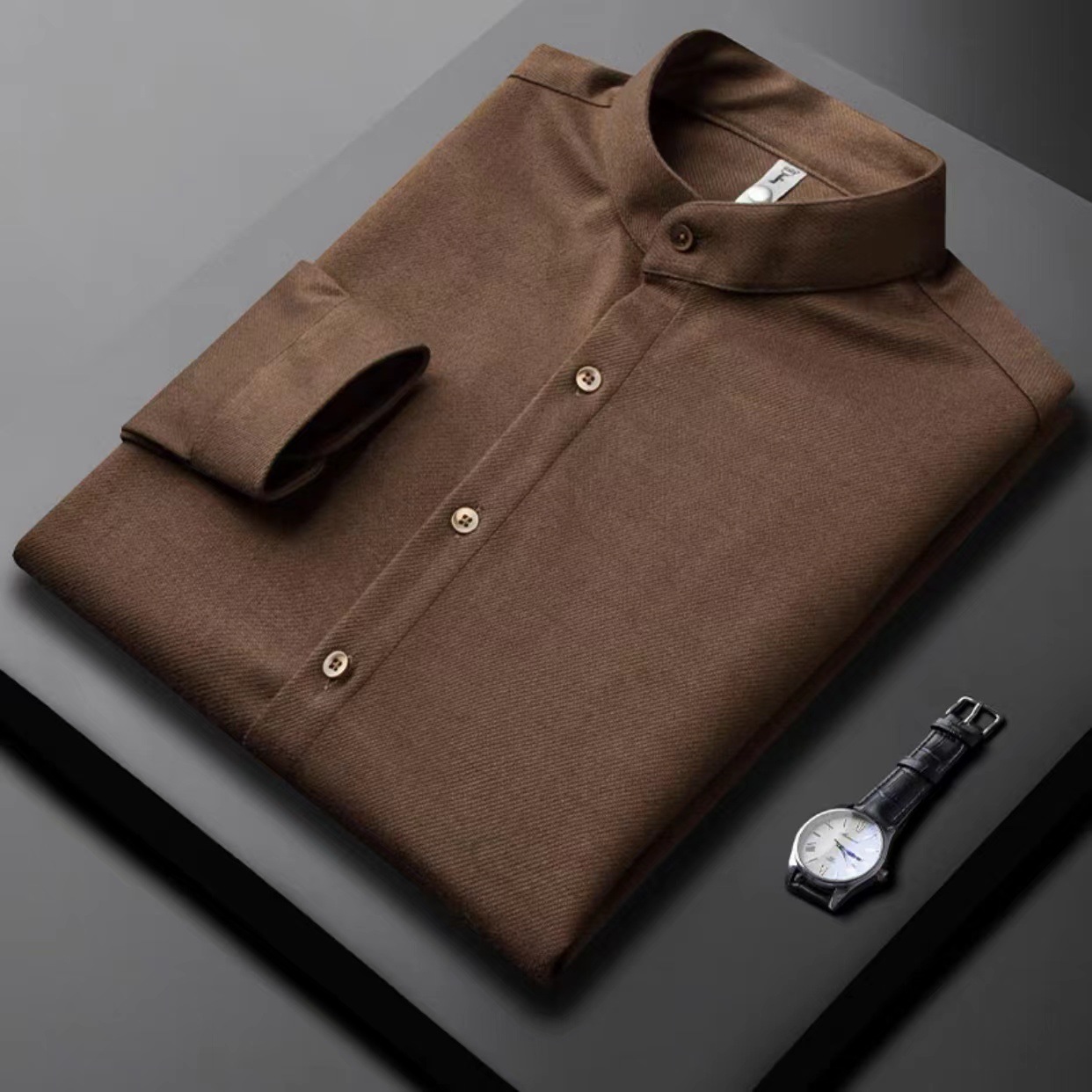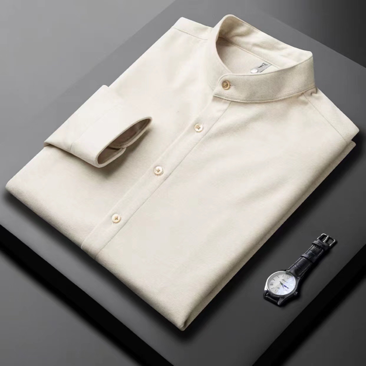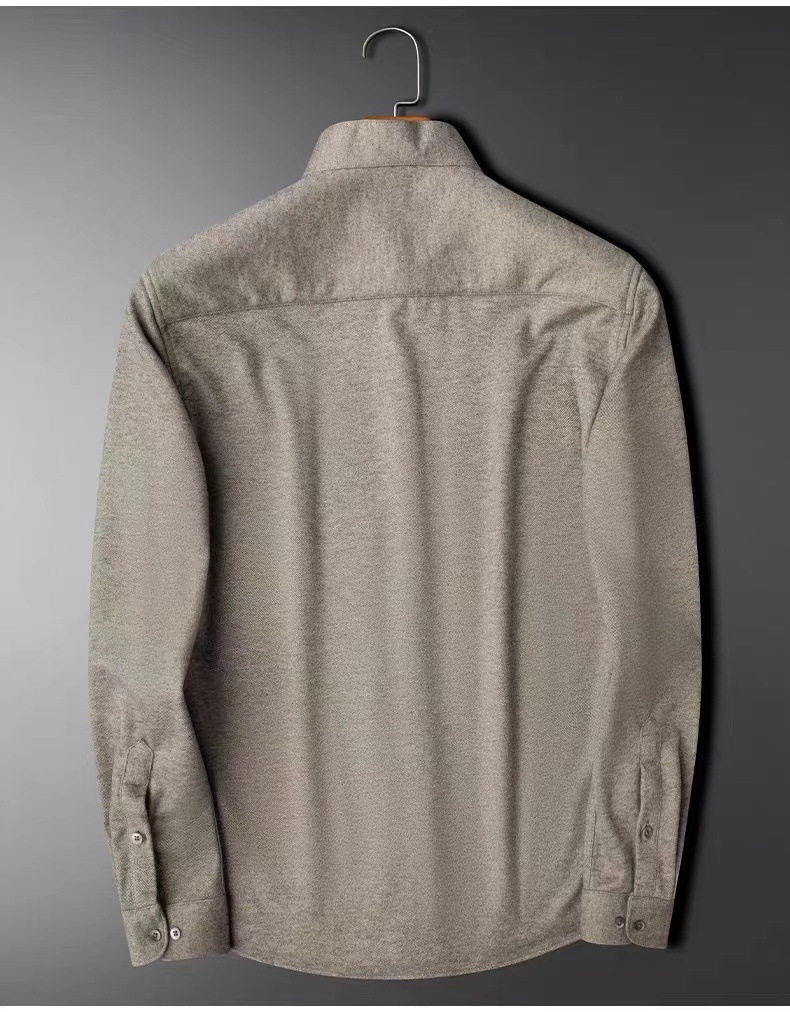 가벼운 럭셔리 겨울 따뜻한 모직 스탠드 칼라 셔츠 남성용 긴팔 비즈니스 캐주얼 주름 방지 슬림핏 청소년 중산 칼라 셔츠