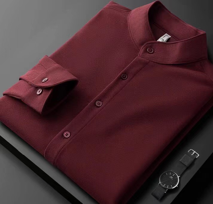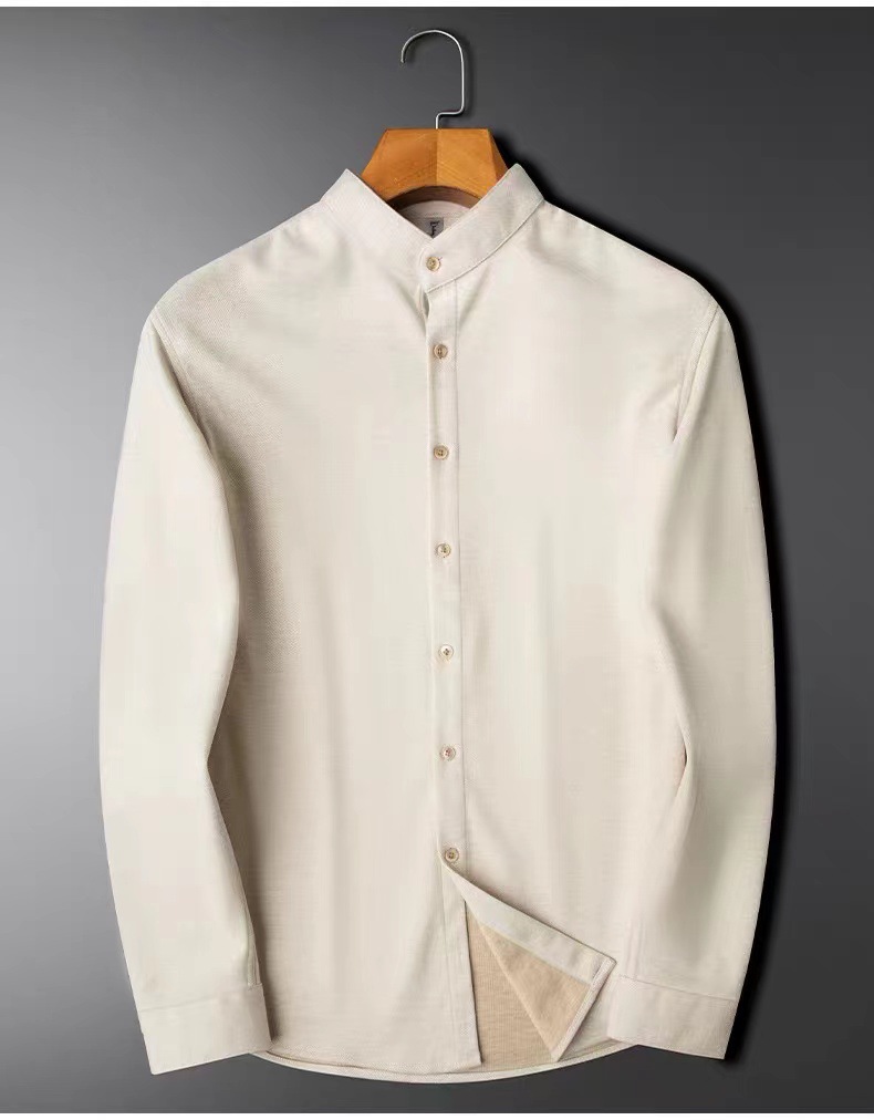 가벼운 럭셔리 겨울 따뜻한 모직 스탠드 칼라 셔츠 남성용 긴팔 비즈니스 캐주얼 주름 방지 슬림핏 청소년 중산 칼라 셔츠스토어 가기