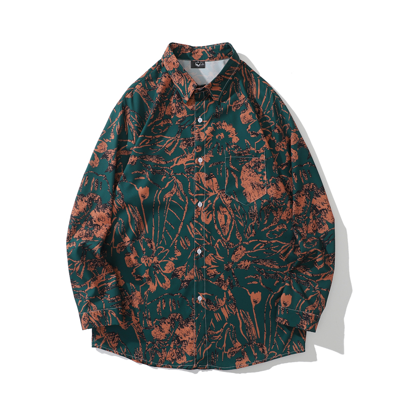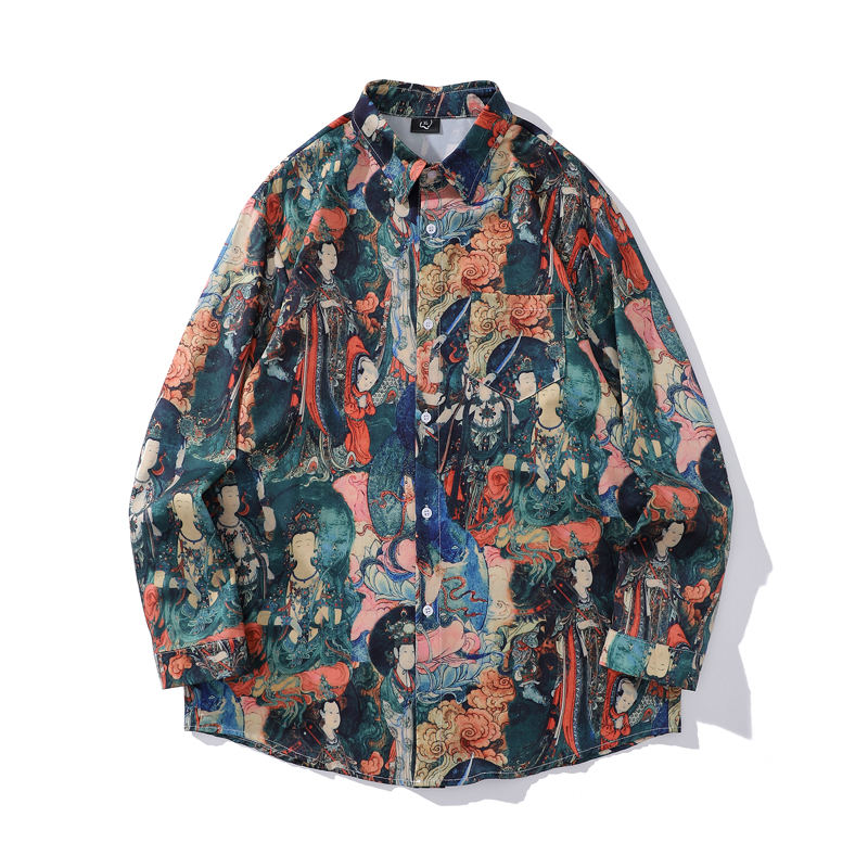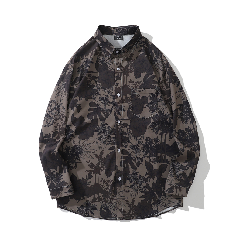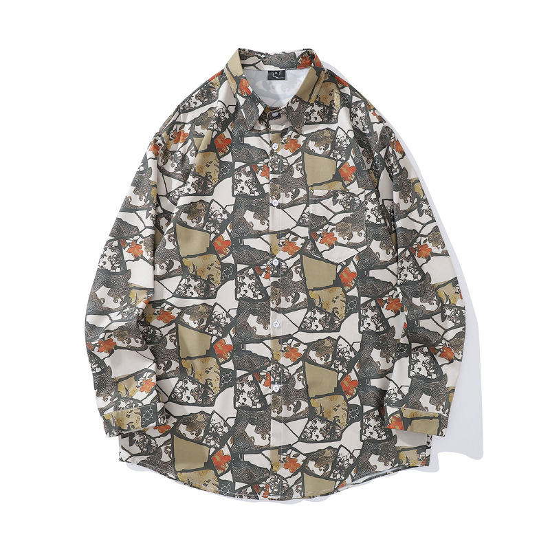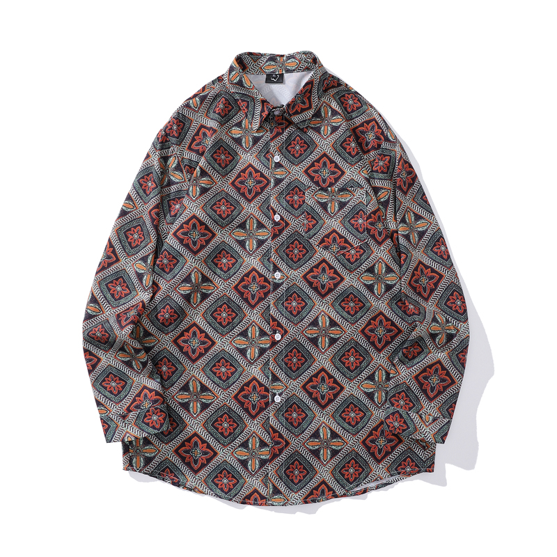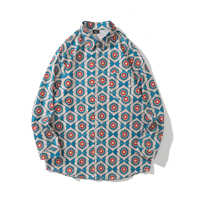 크로스 보더 대외 무역 레트로 풀 프린트 셔츠 남성과 여성의 골동품 느슨한 틈새 긴팔 셔츠 휴가 해변 재킷