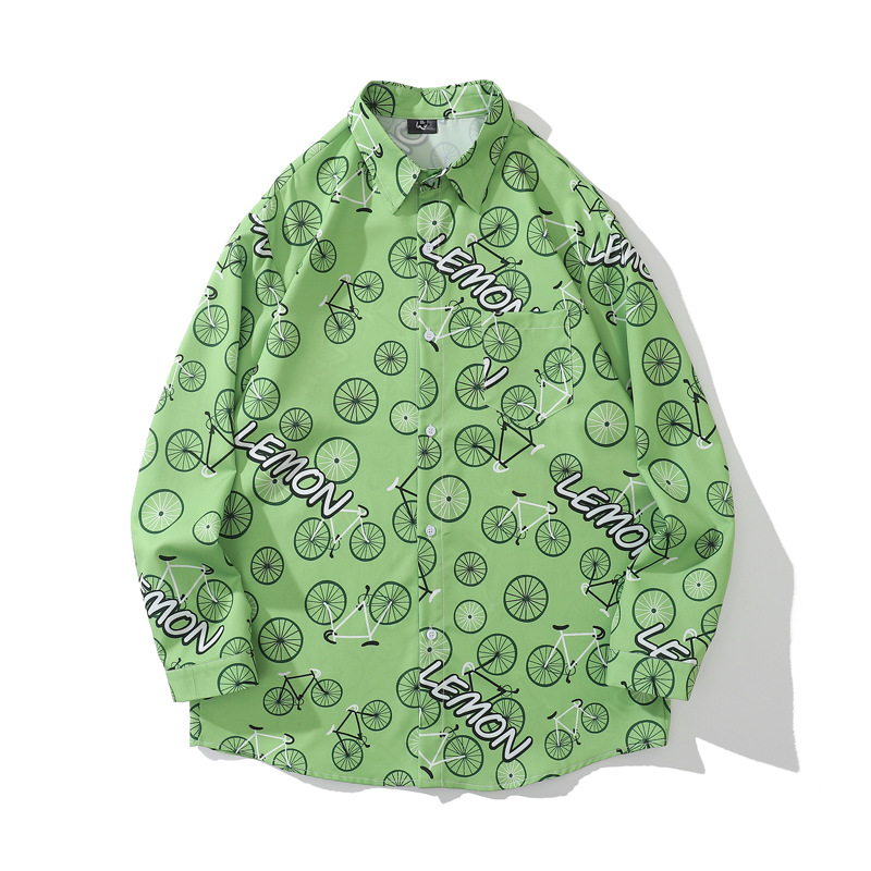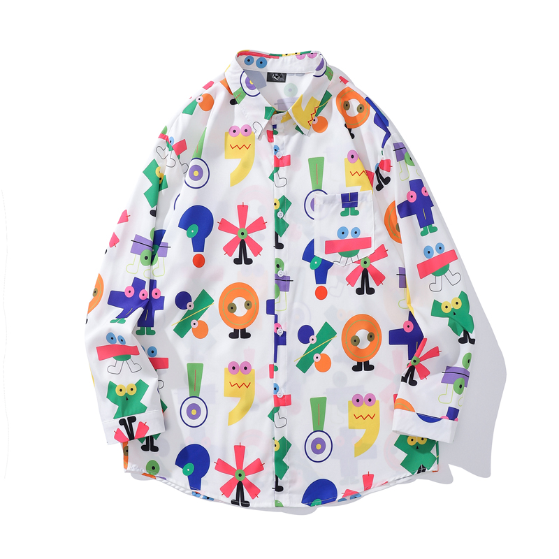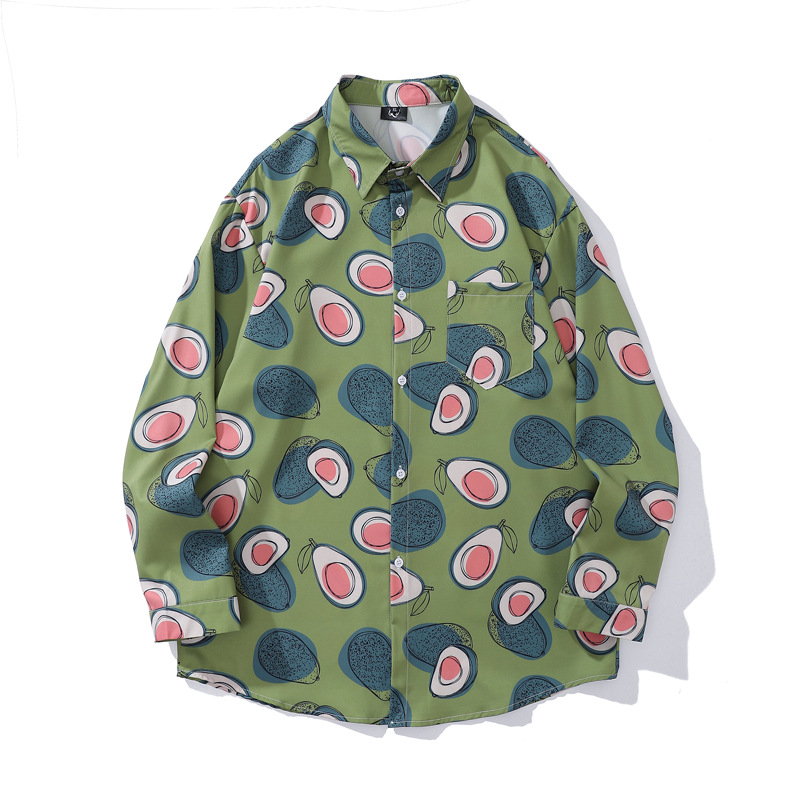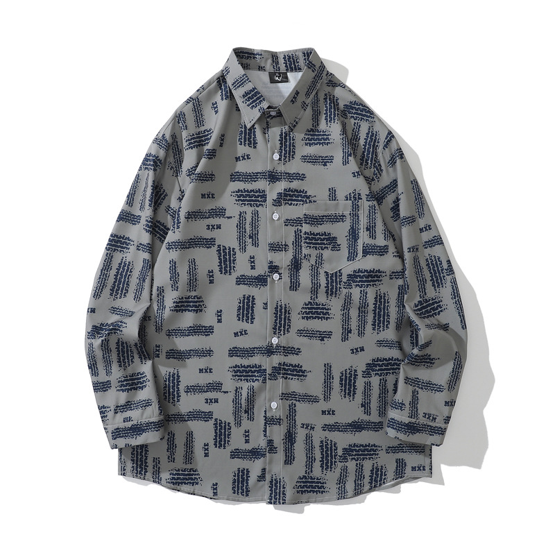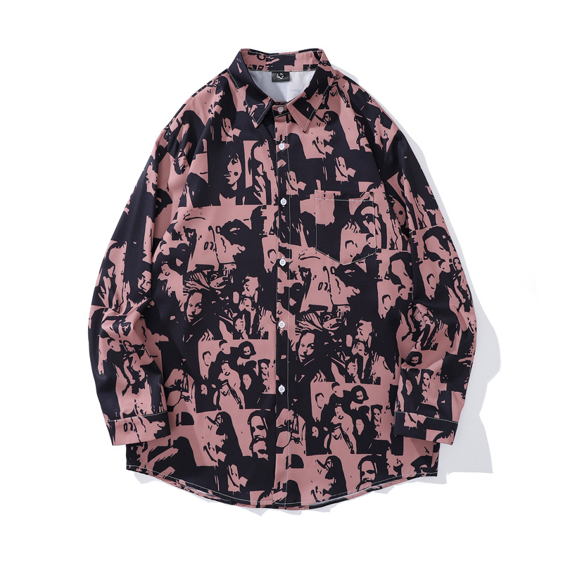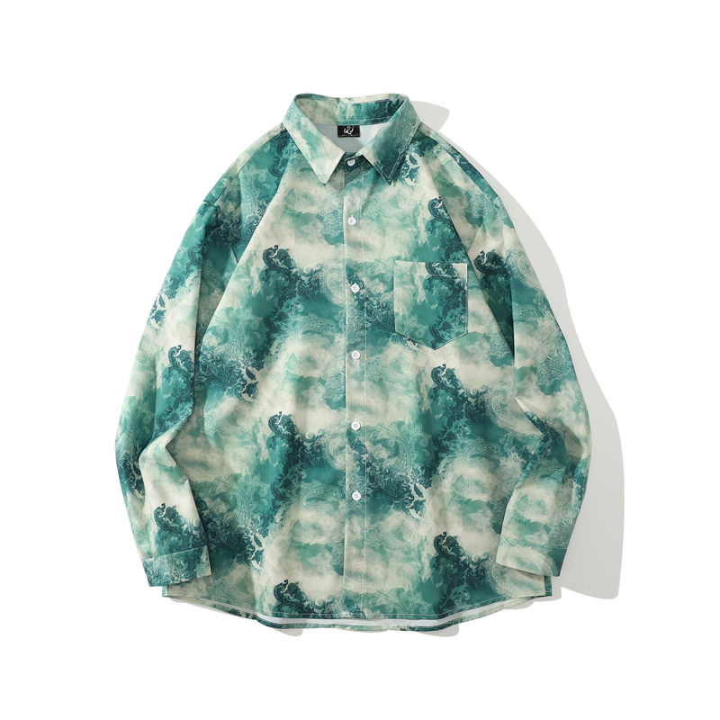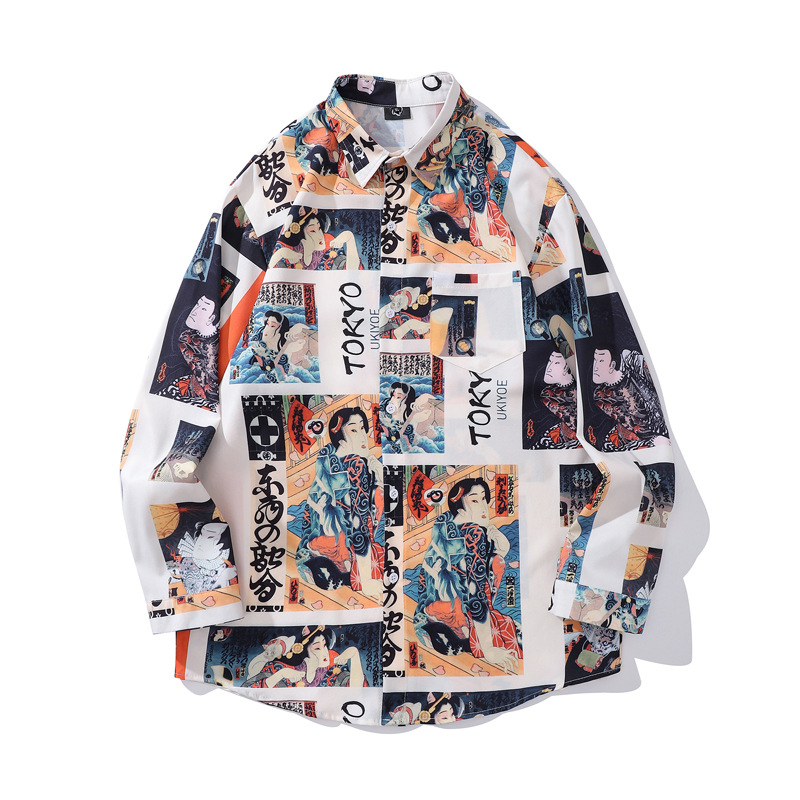 크로스 보더 대외 무역 레트로 풀 프린트 셔츠 남성과 여성의 골동품 느슨한 틈새 긴팔 셔츠 휴가 해변 재킷