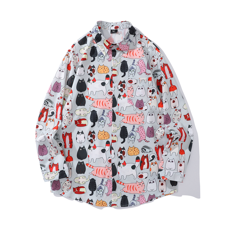 크로스 보더 대외 무역 레트로 풀 프린트 셔츠 남성과 여성의 골동품 느슨한 틈새 긴팔 셔츠 휴가 해변 재킷스토어 가기