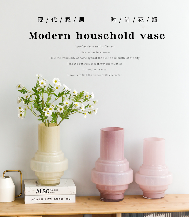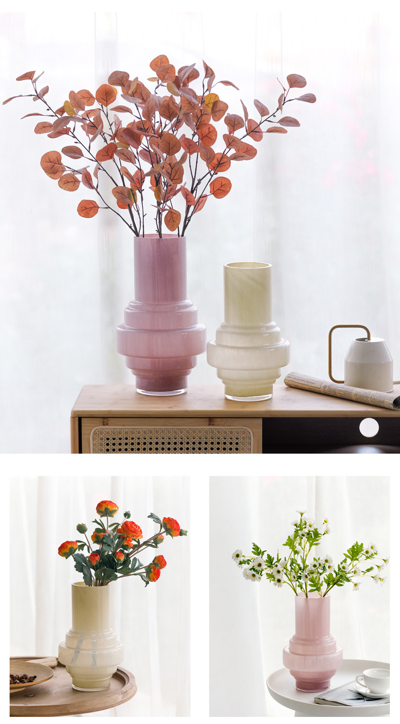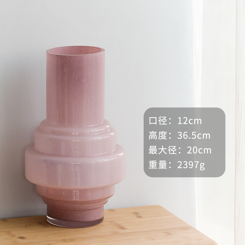가벼운 럭셔리 핑크 유리 꽃병 꽃병 현대 간단한 홈 거실 모델 룸 부드러운 장식 창조적 인 장식품