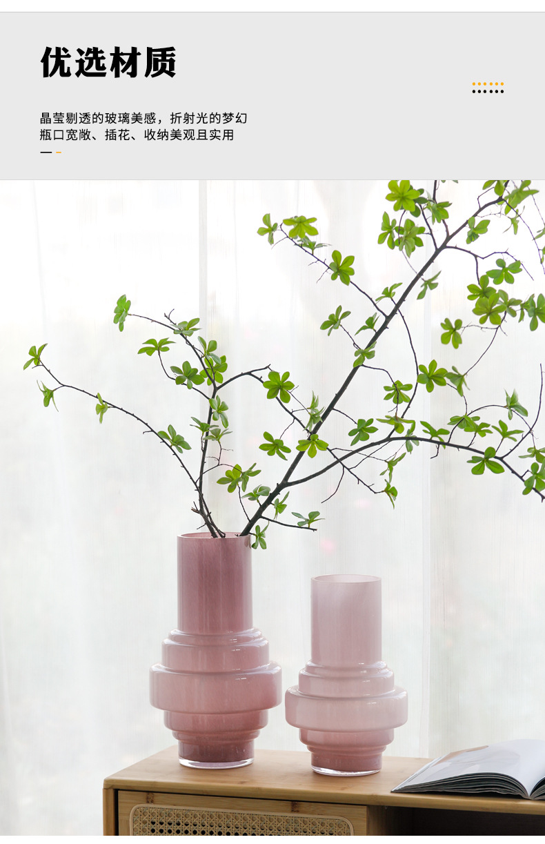 가벼운 럭셔리 핑크 유리 꽃병 꽃병 현대 간단한 홈 거실 모델 룸 부드러운 장식 창조적 인 장식품스토어 가기
