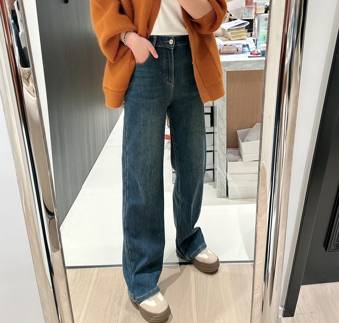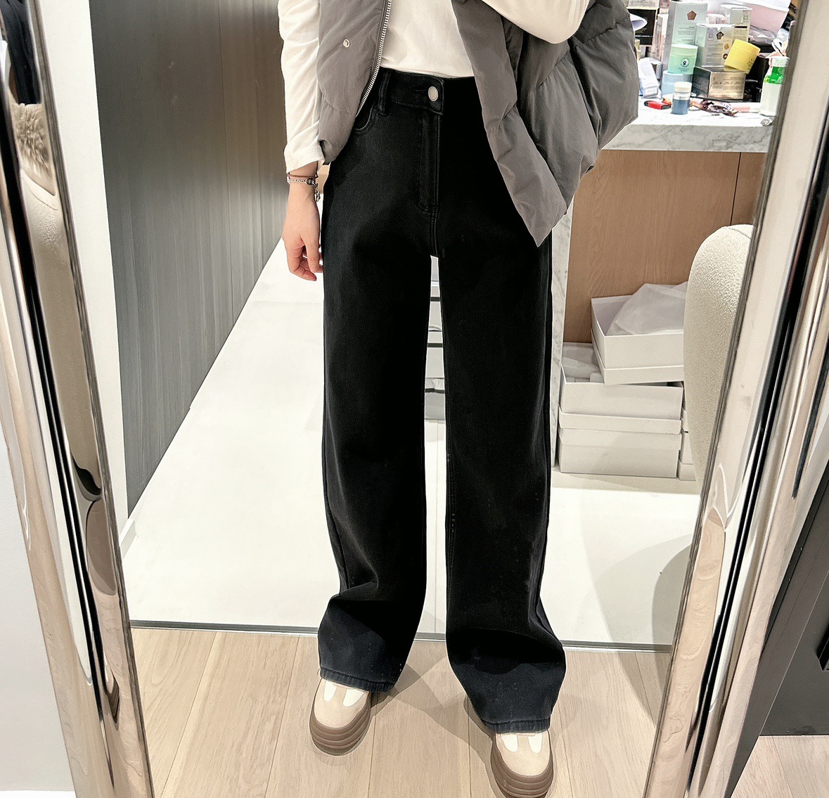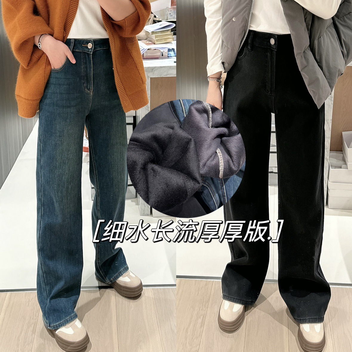 왕 튀긴 바지! 겨울 새로운 슬리밍 좁은 스트레이트 기모 청바지 여성의 느슨한 높은 허리 두꺼운 넓은 다리 바지 여성스토어 가기