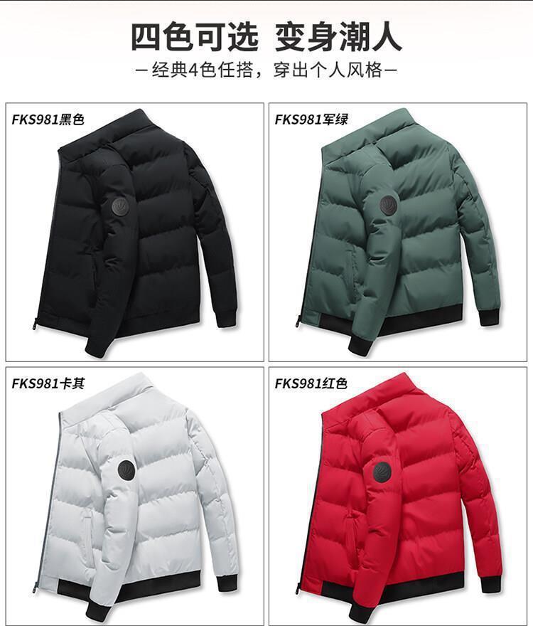 남성 캐주얼 깃털 면 코트 겨울 새로운 따뜻하고 두꺼운 단색 코트 스탠드 칼라 면 코트 한국 스타일 트렌디 면 재킷스토어 가기