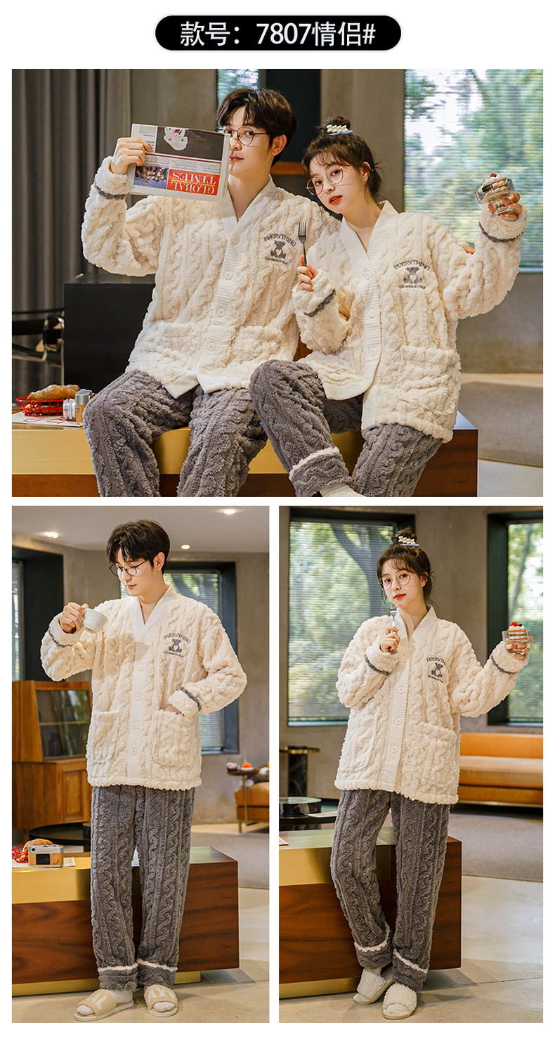 커플 잠옷 가을과 겨울 여자의 산호 양털 긴 소매 기모노 가정 옷 기모 두꺼운 남자의 플란넬 웨어러블 세트스토어 가기
