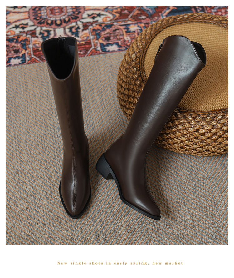 111 무릎 위까지 오는 웨스턴 카우보이 부츠 2025 뾰족코 부츠 와이드 롱부츠 여성 겨울용 플리스 안감 하이부츠 여성용 천연 가죽스토어 가기