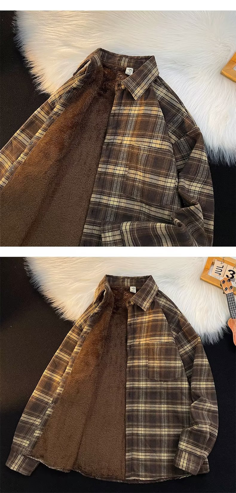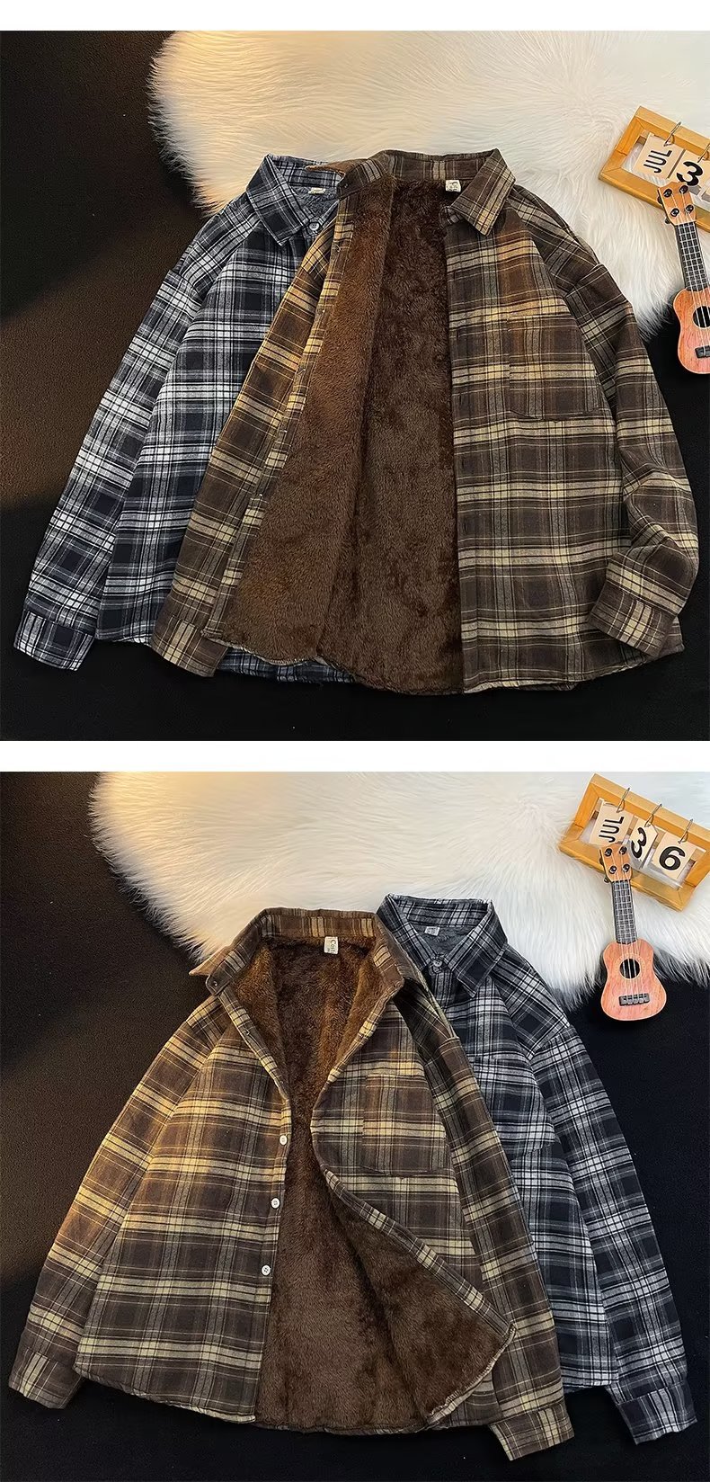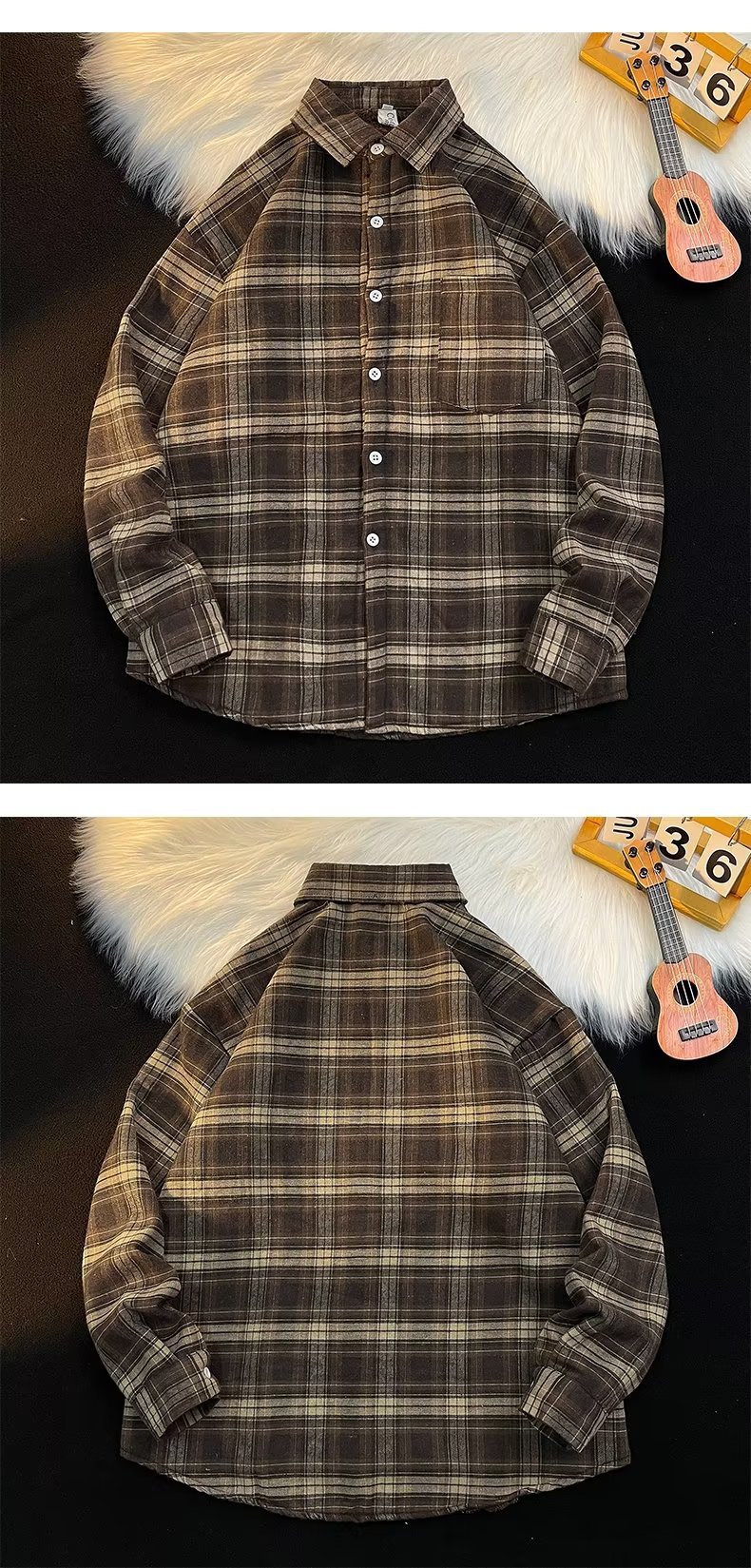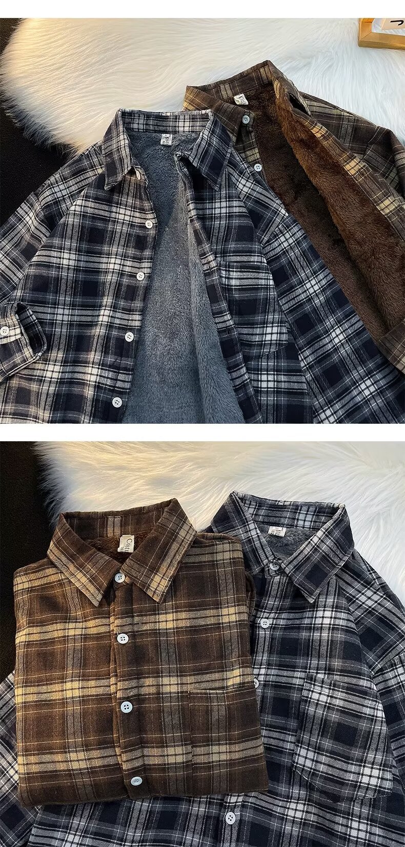 홍콩 스타일 격자 무늬 셔츠 남자의 가을과 겨울 따뜻한 기모 긴 소매 셔츠 유행 일 스타일 가을 재킷 유행스토어 가기