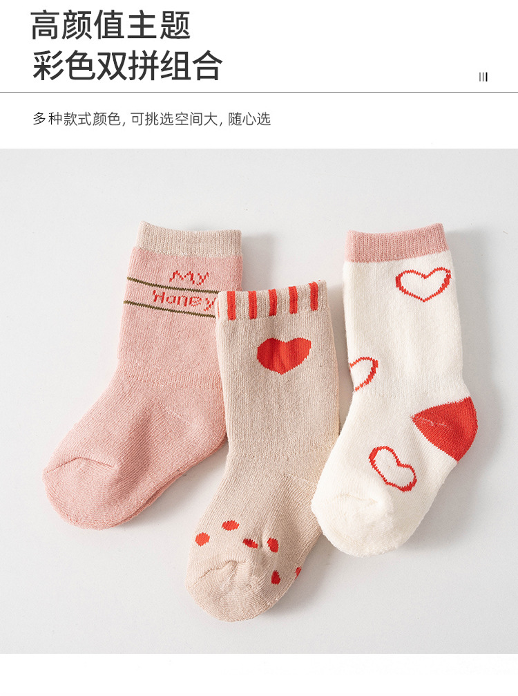 [빅 프로모션 가격] 가을과 겨울 테리 기모 두꺼운 열 보관 따뜻한 만화 귀여운 중간 긴 튜브 아기 양말 면 양말