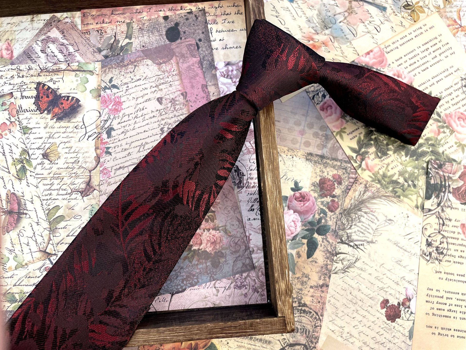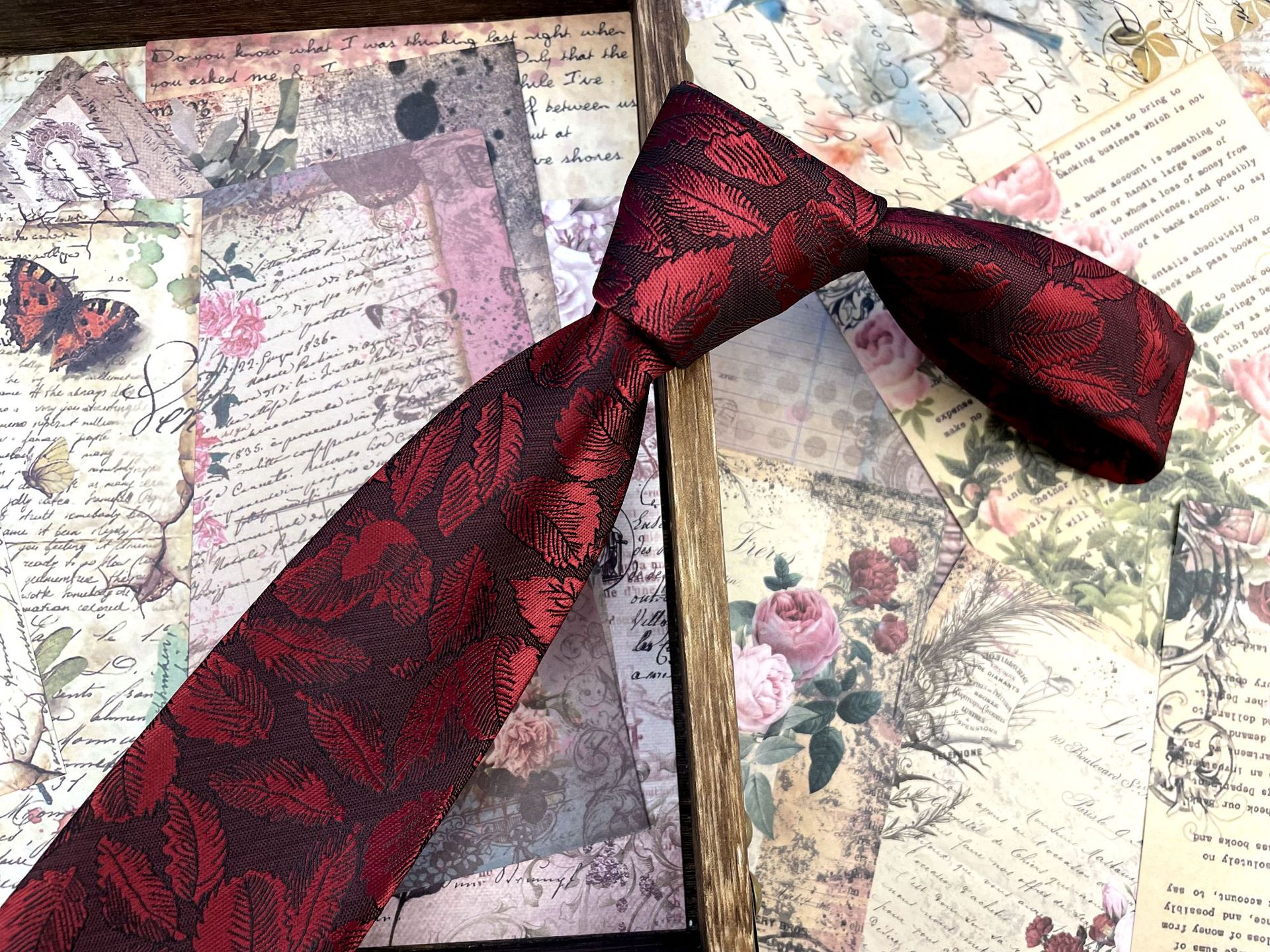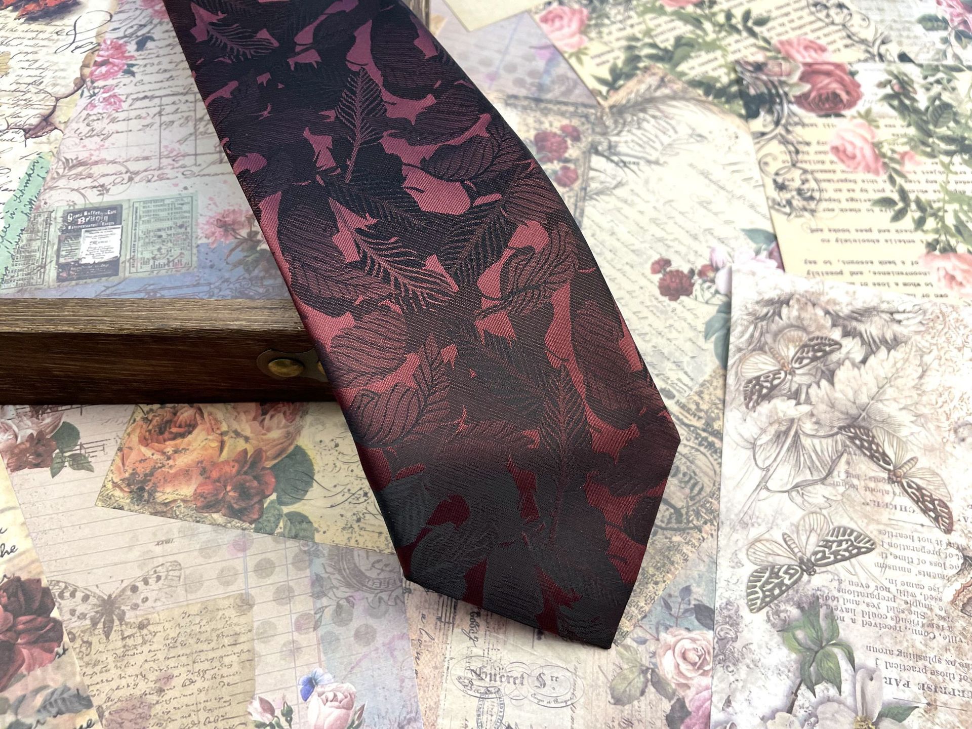 • 01 다크 레드 잎 넥타이 손 넥타이