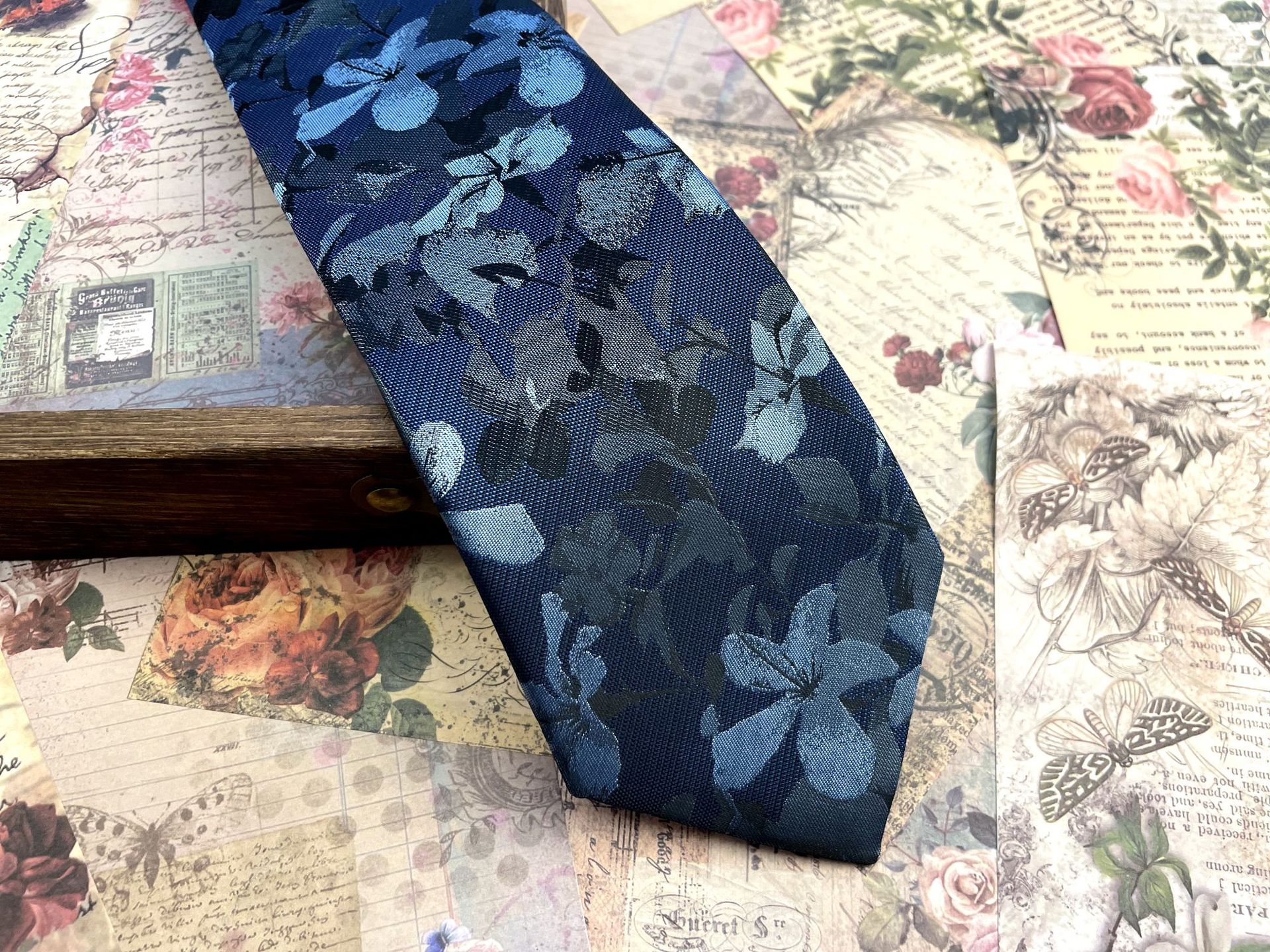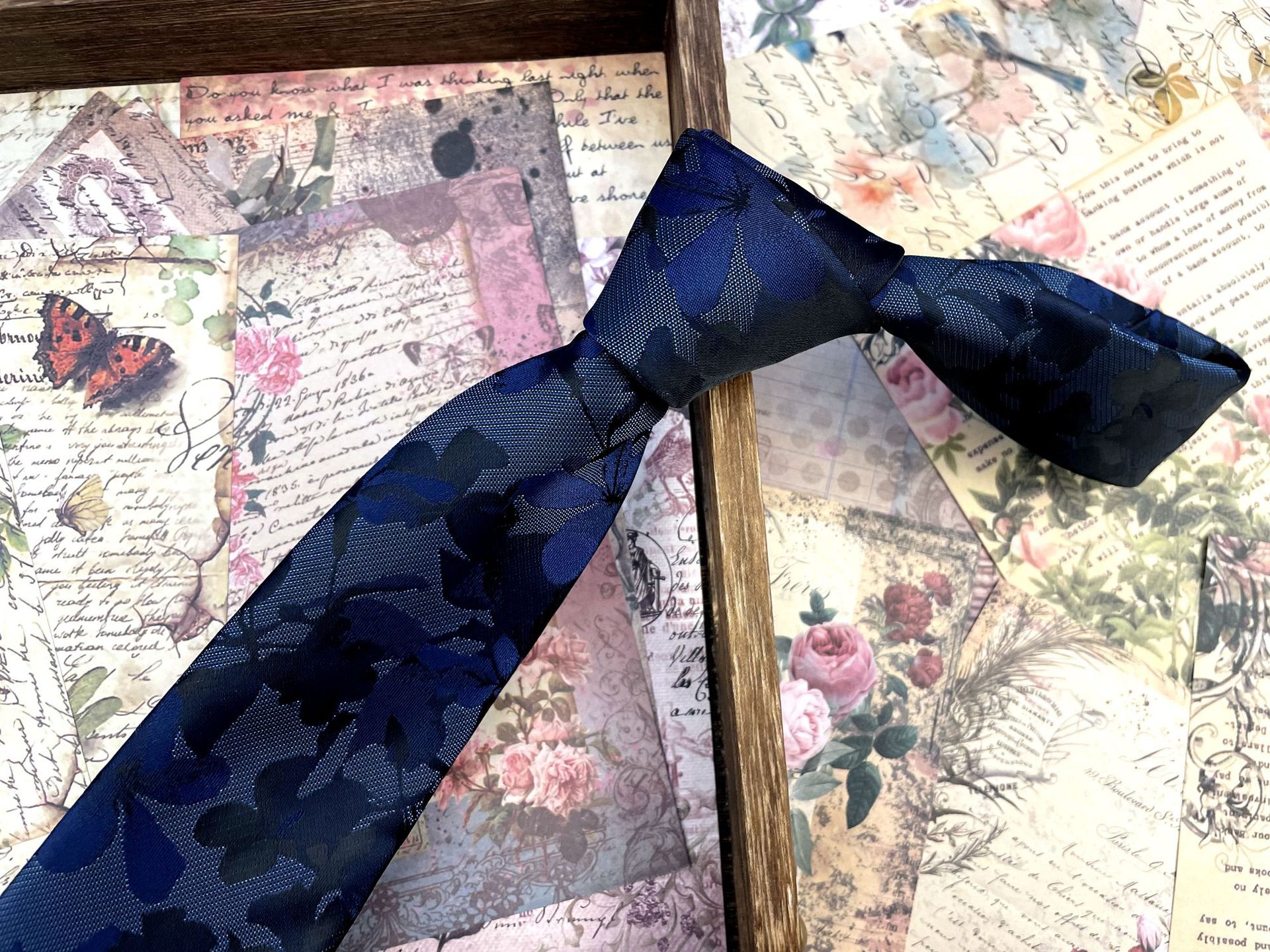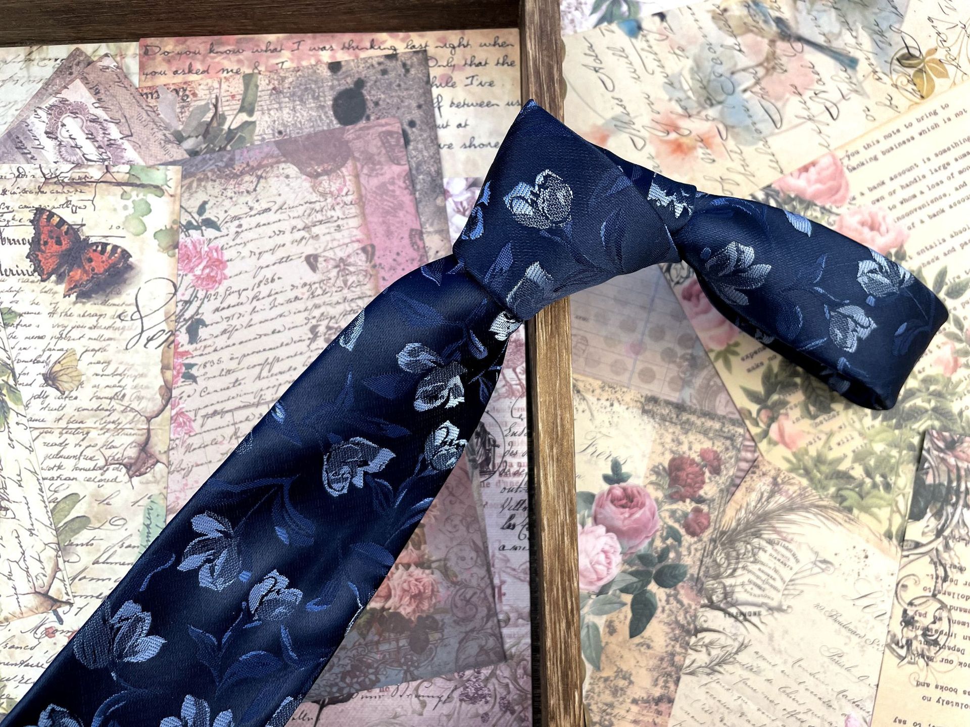 • 08 다크 블루 꽃 남자 넥타이 손 넥타이