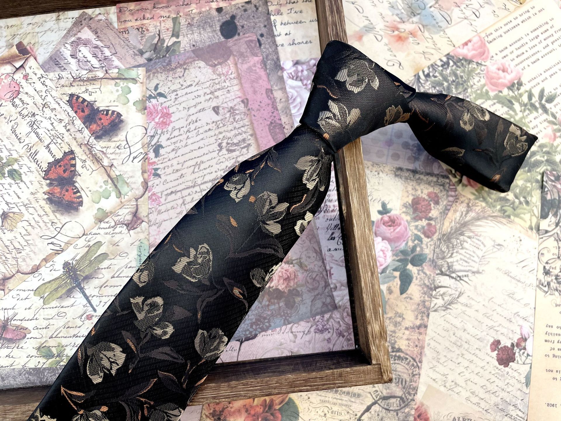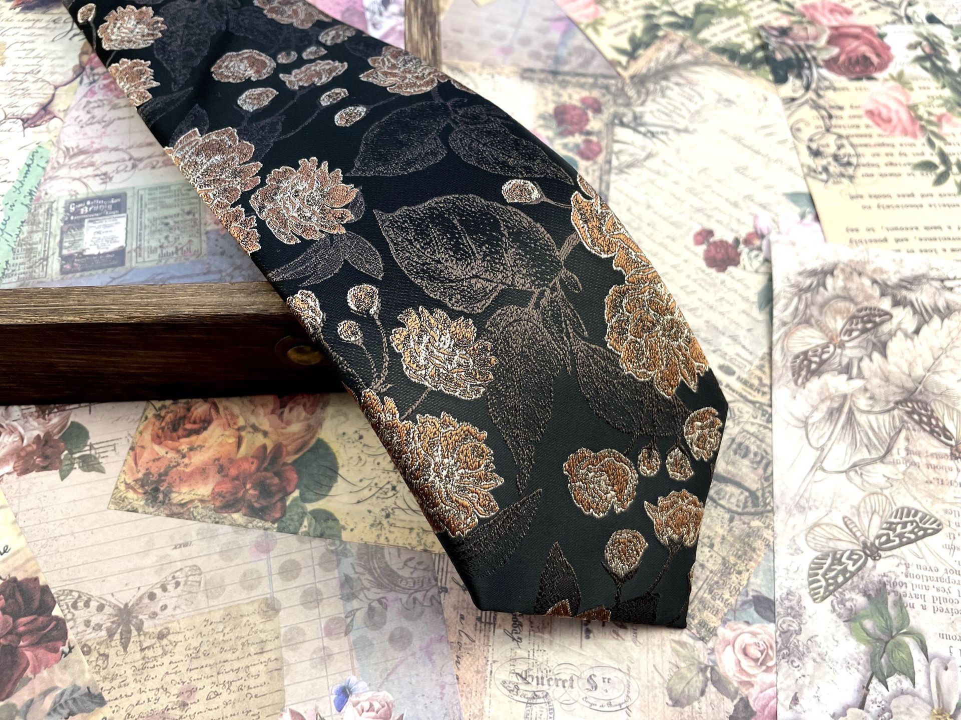 • 10 다크 브라운 꽃 덩굴 넥타이 손