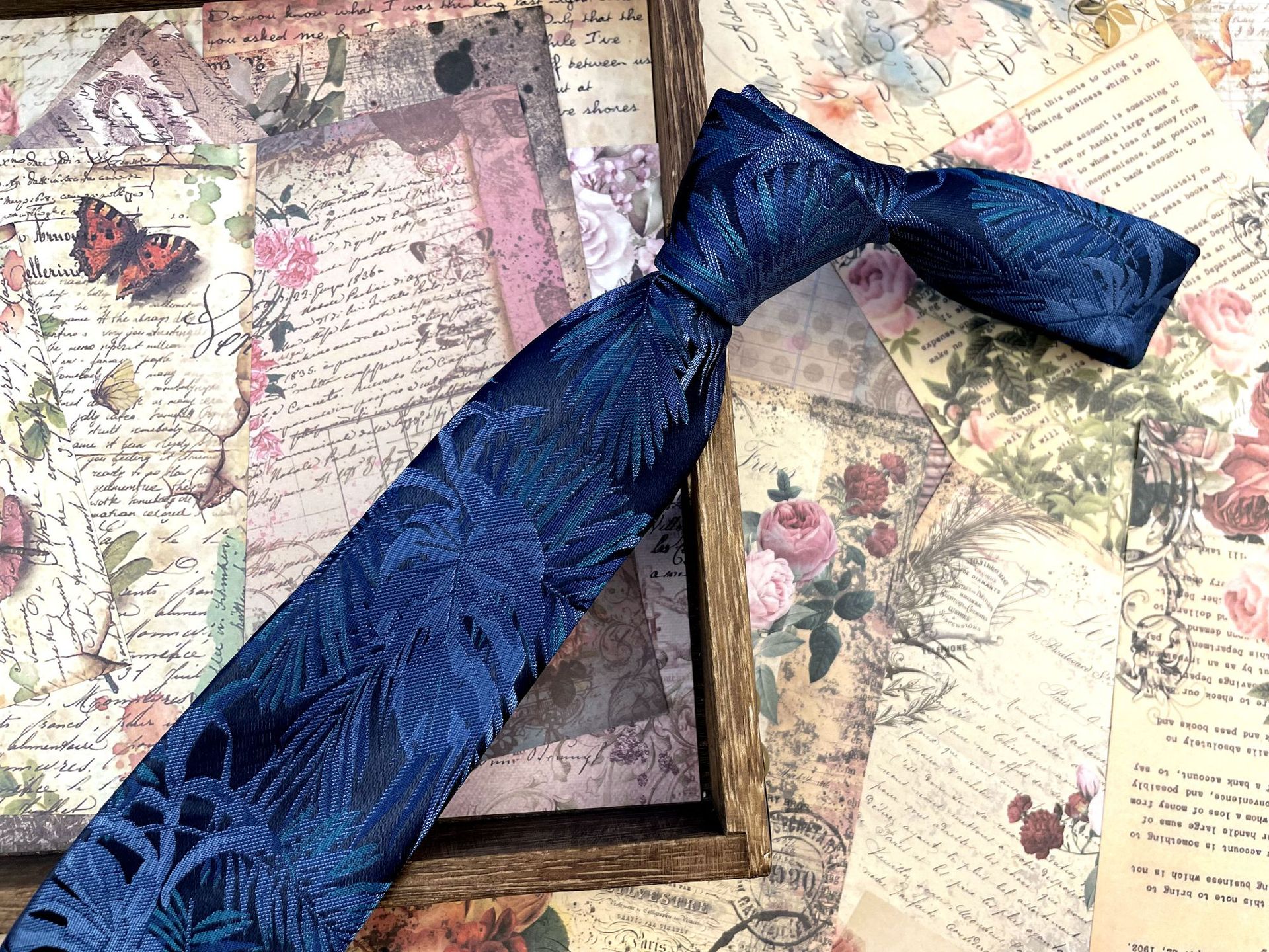 • 23 다크 블루 잎 넥타이 핸드 타이
