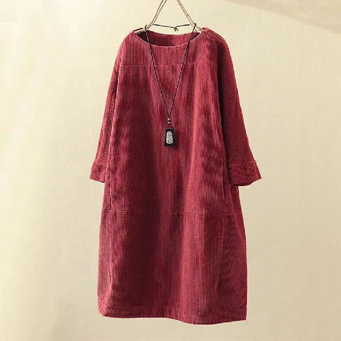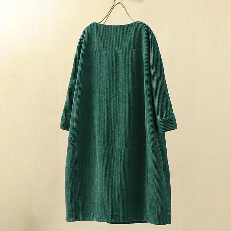 국경 간 가을과 겨울 새로운 스타일 코듀로이 복고풍 단색 원피스 느슨한 원피스 뚱뚱한 여동생 플러스 사이즈 여성 의류