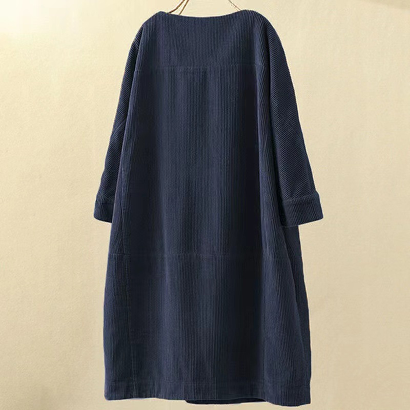 국경 간 가을과 겨울 새로운 스타일 코듀로이 복고풍 단색 원피스 느슨한 원피스 뚱뚱한 여동생 플러스 사이즈 여성 의류스토어 가기