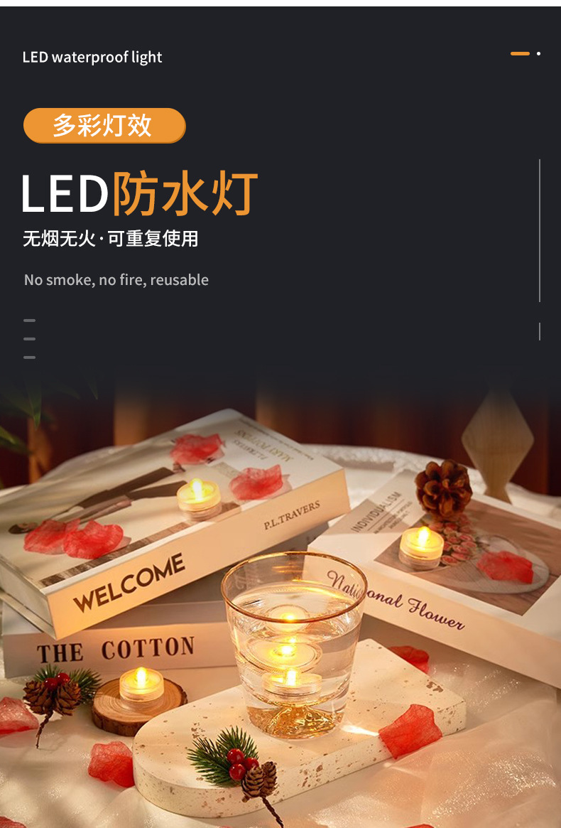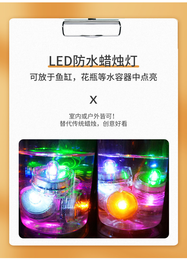라운드 방수 촛불 램프 어항 LED 방수 램프 수족관 건물 블록 싸우는 물고기 램프 다채로운 전자 양초 램프