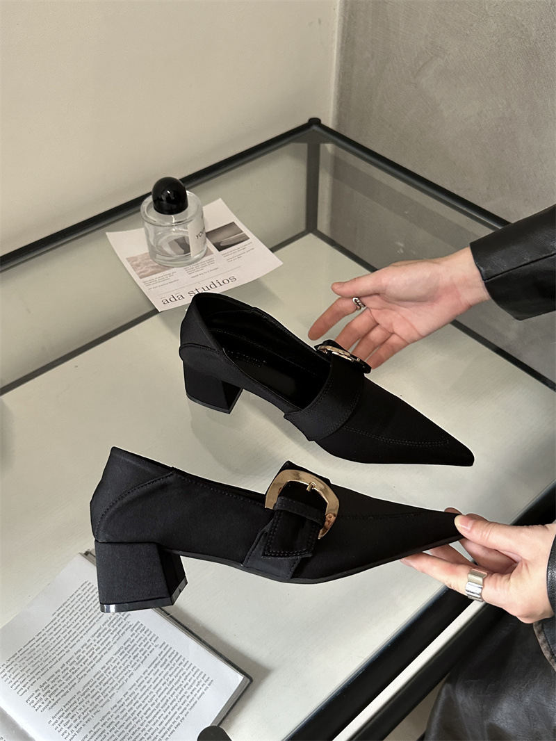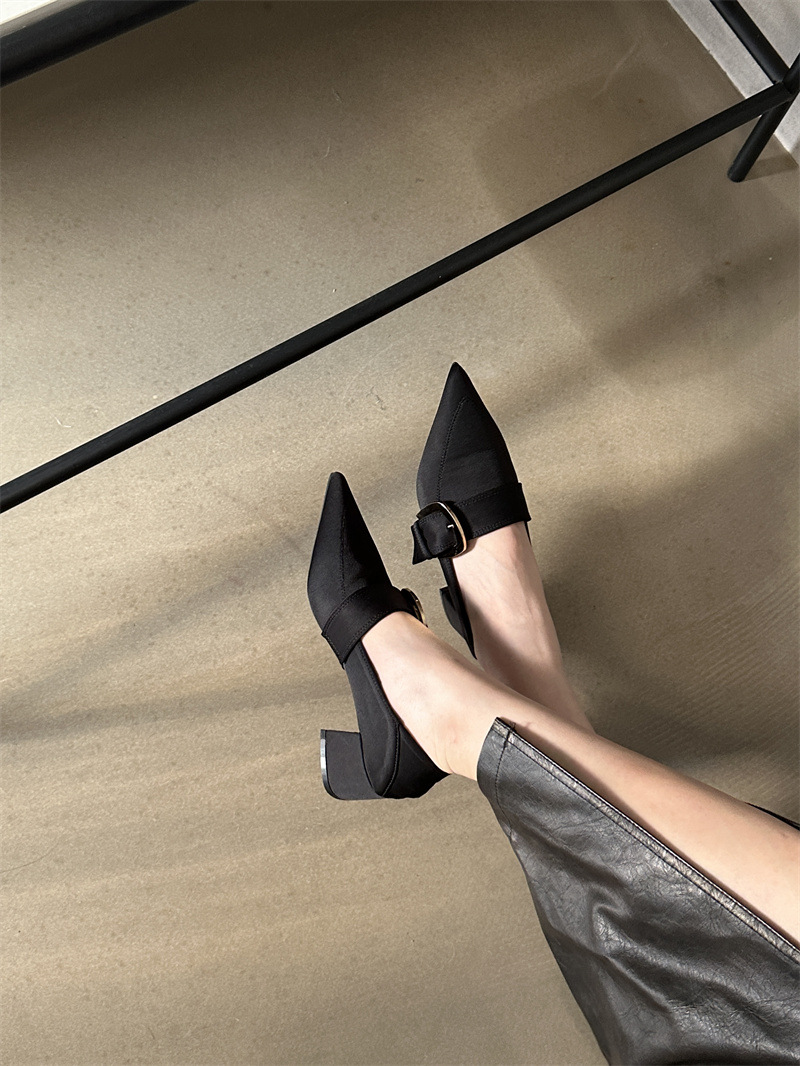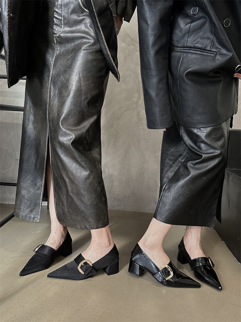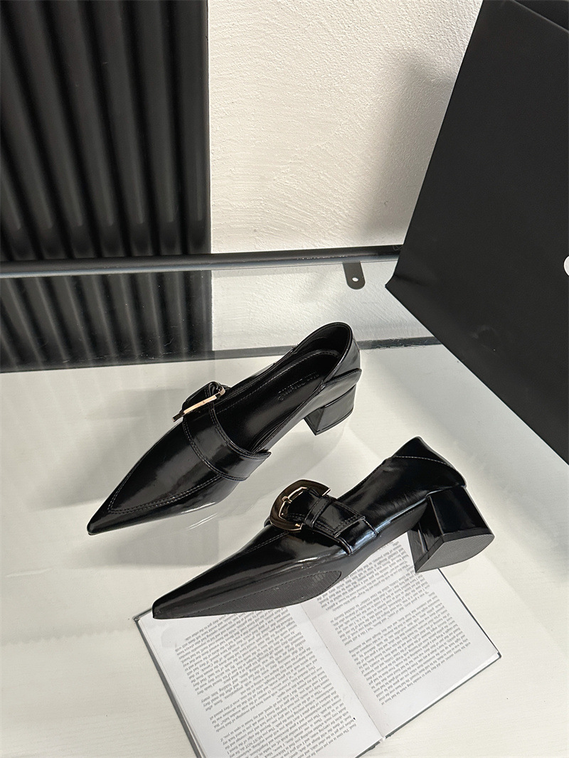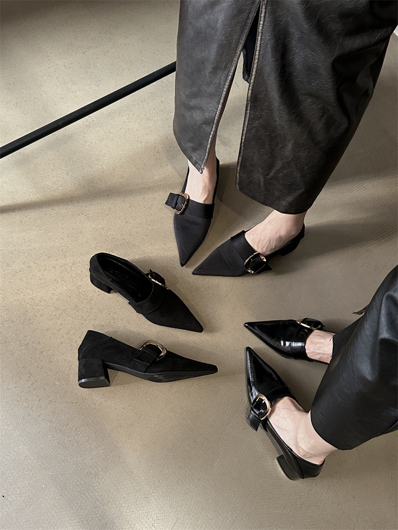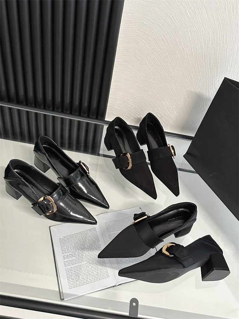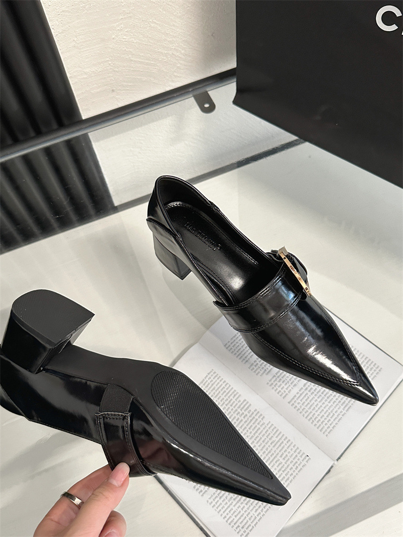 2024 봄과 가을 새로운 유럽과 미국 패션 청키 힐 신발 뾰족한 게으른 신발 하이힐 스타 여성 부츠스토어 가기