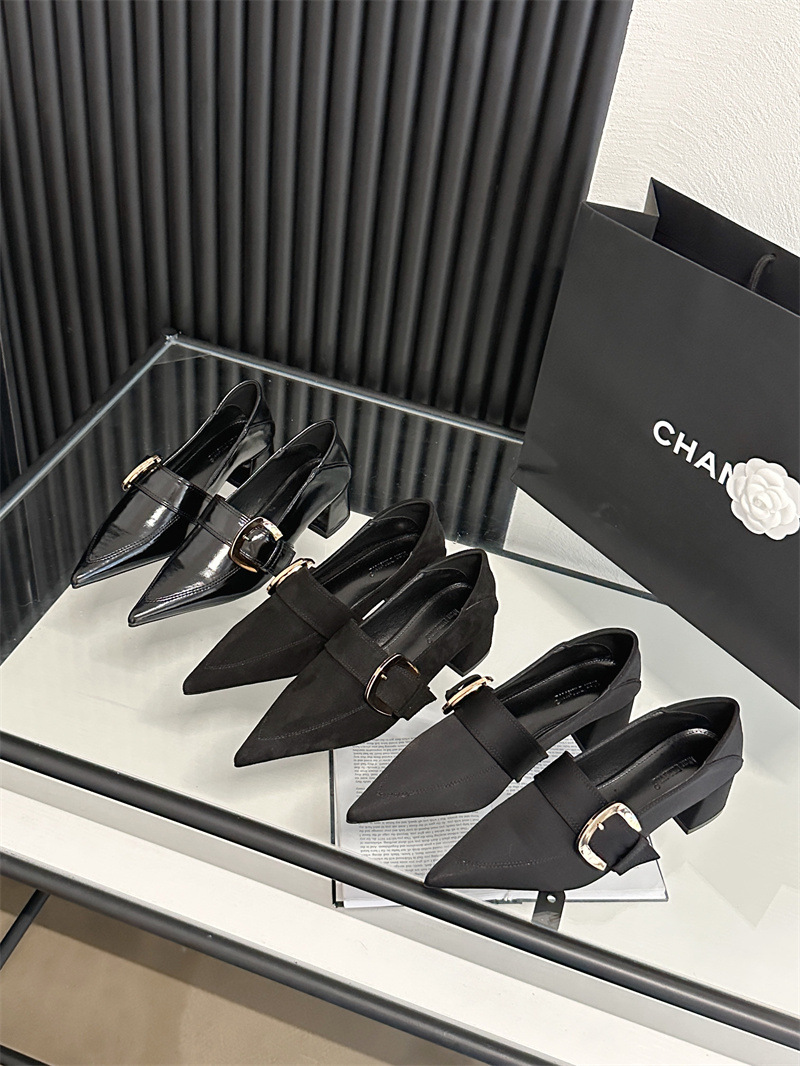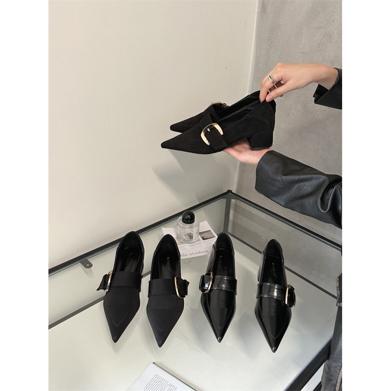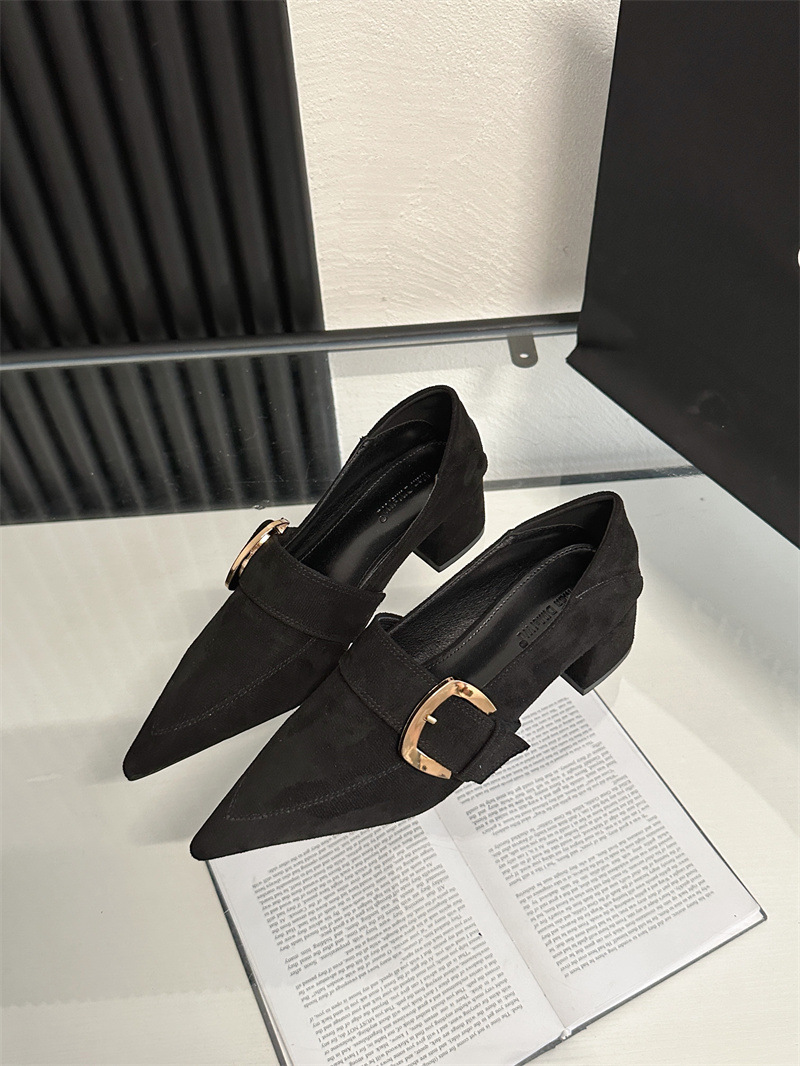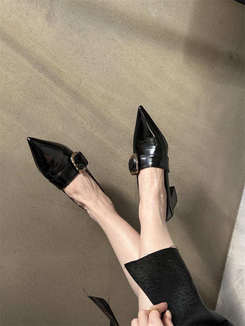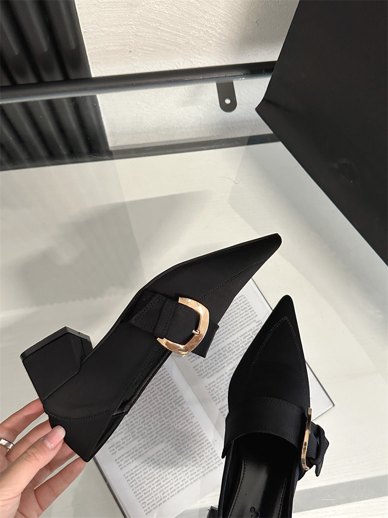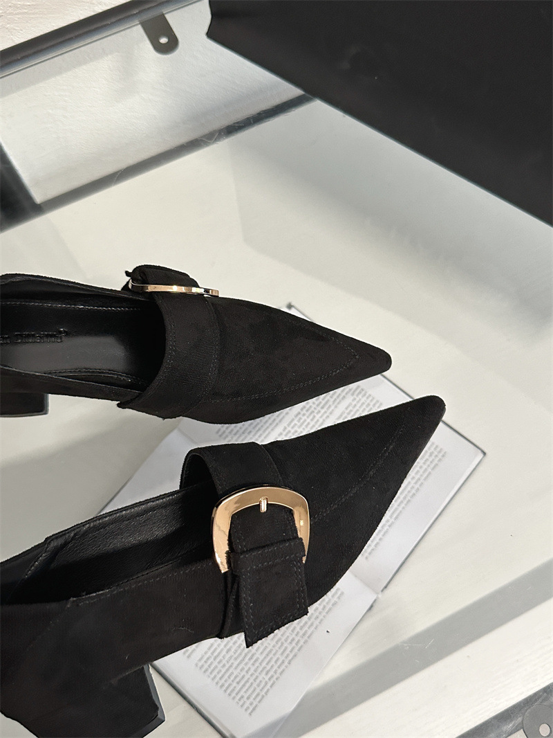 2024 봄과 가을 새로운 유럽과 미국 패션 청키 힐 신발 뾰족한 게으른 신발 하이힐 스타 여성 부츠스토어 가기
