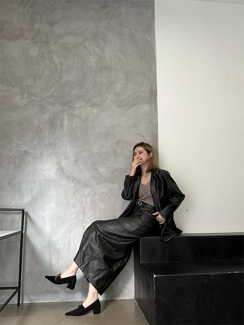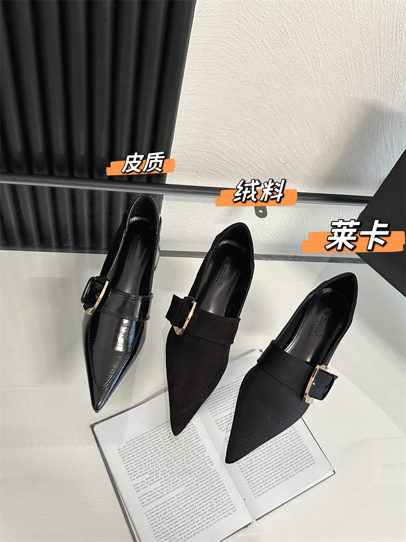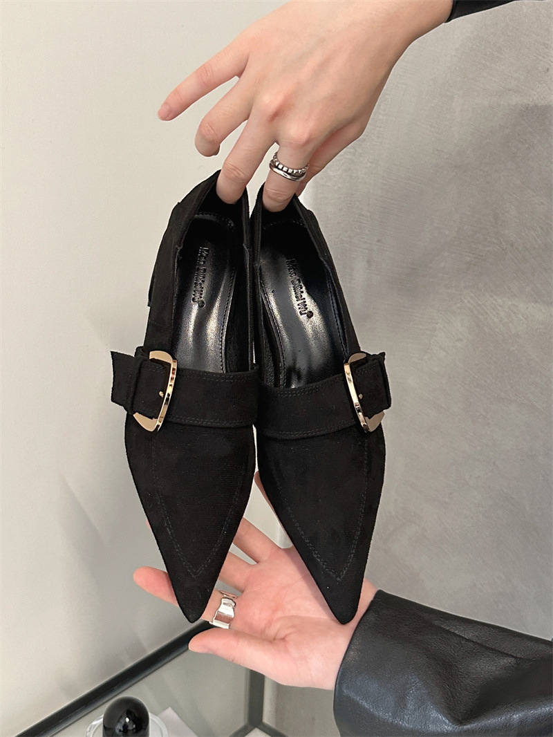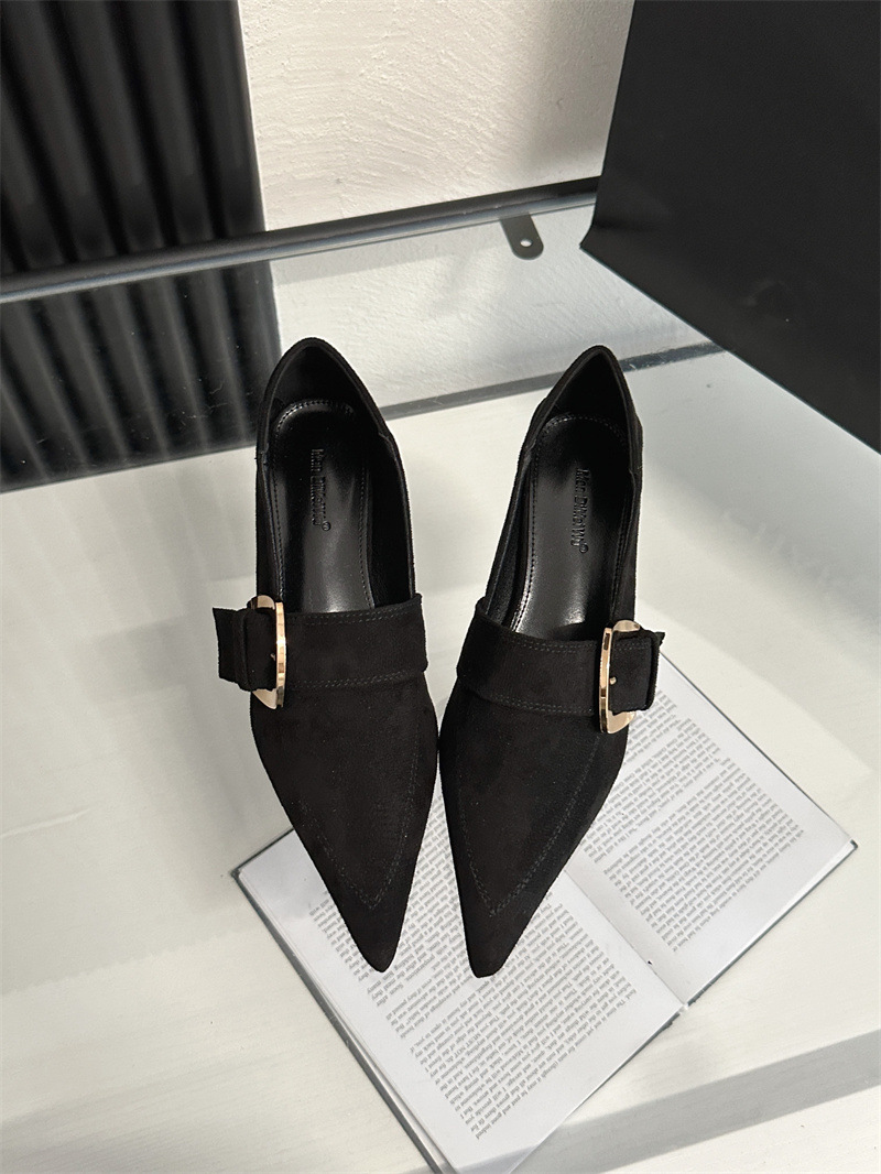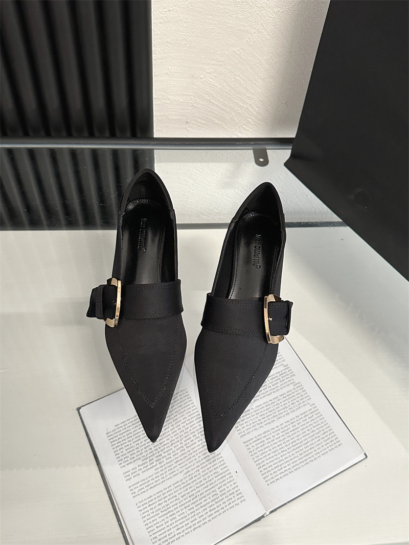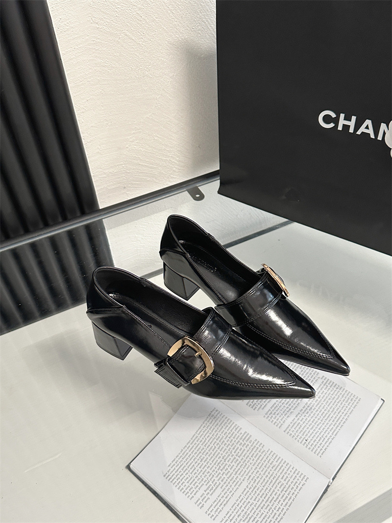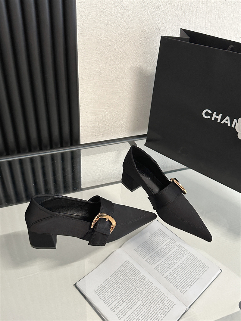 2024 봄과 가을 새로운 유럽과 미국 패션 청키 힐 신발 뾰족한 게으른 신발 하이힐 스타 여성 부츠스토어 가기
