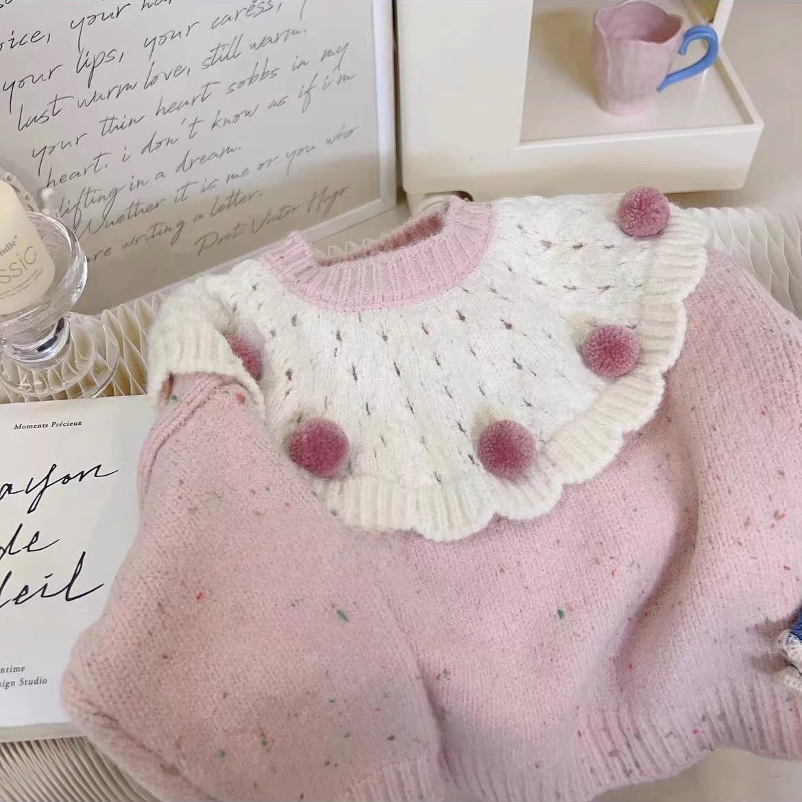 한국 스타일 달콤한 수제 크로 셰 뜨개질 니트 라운드 넥 느슨한 스웨터 새로운 가을과 겨울 입체 꽃 부드러운 왁시베이스
