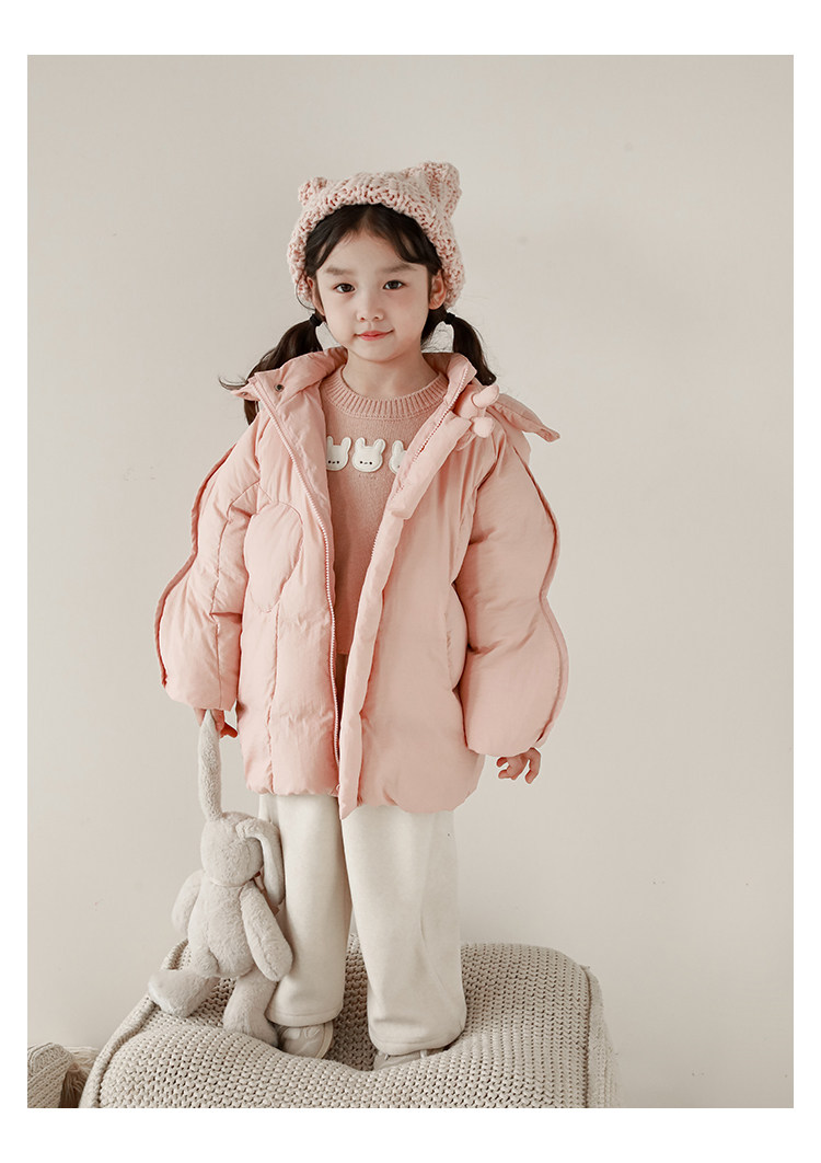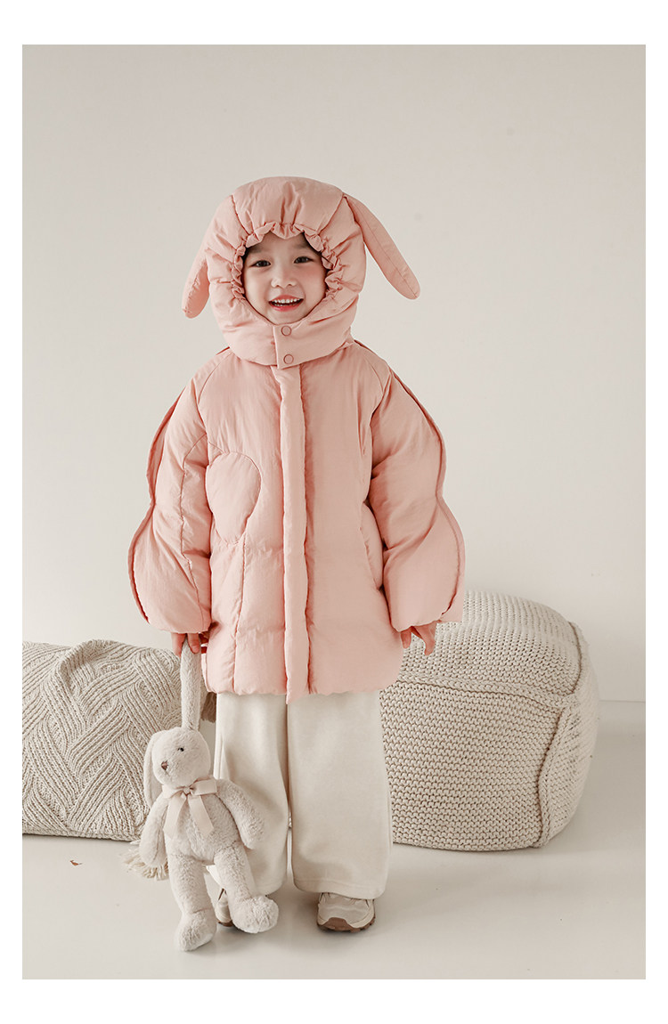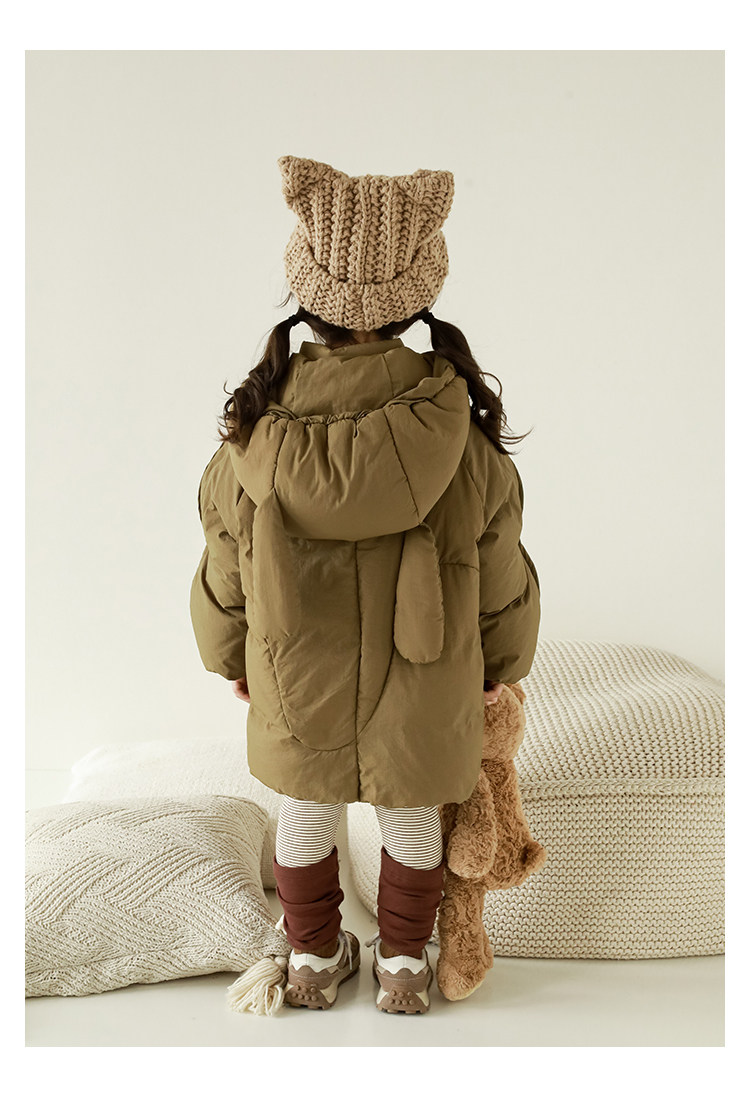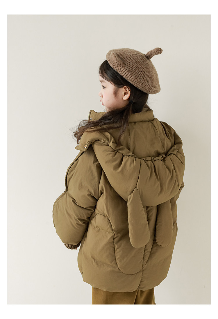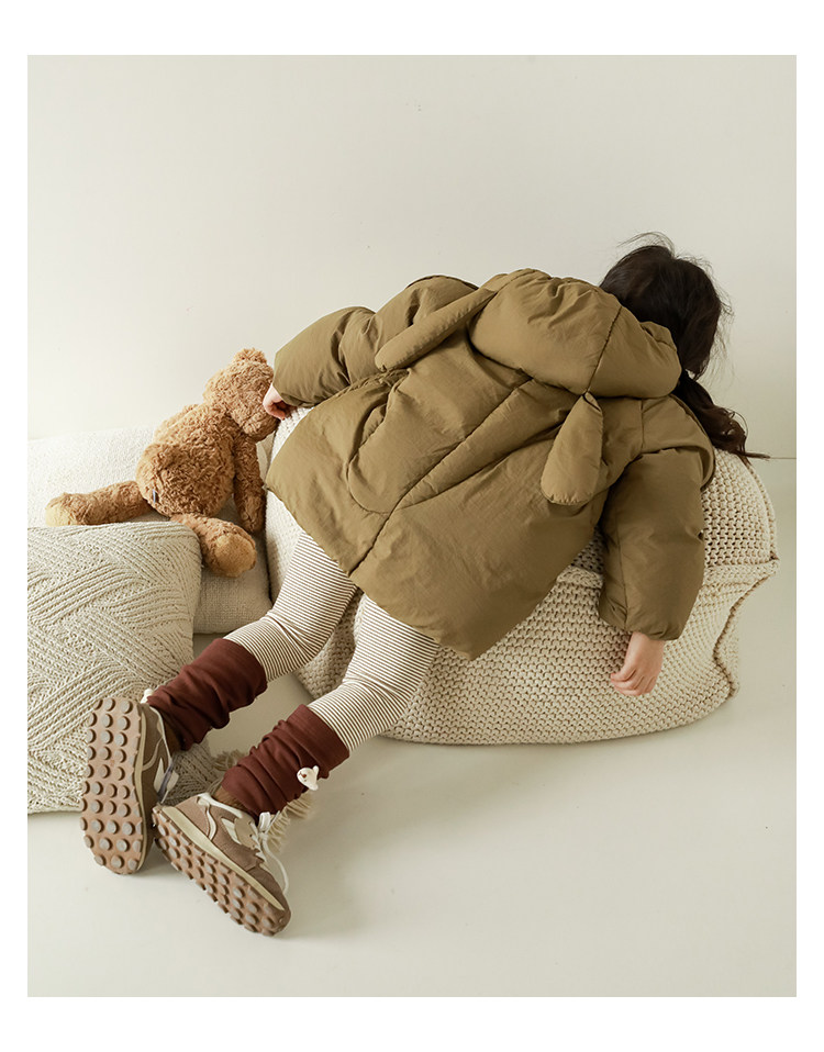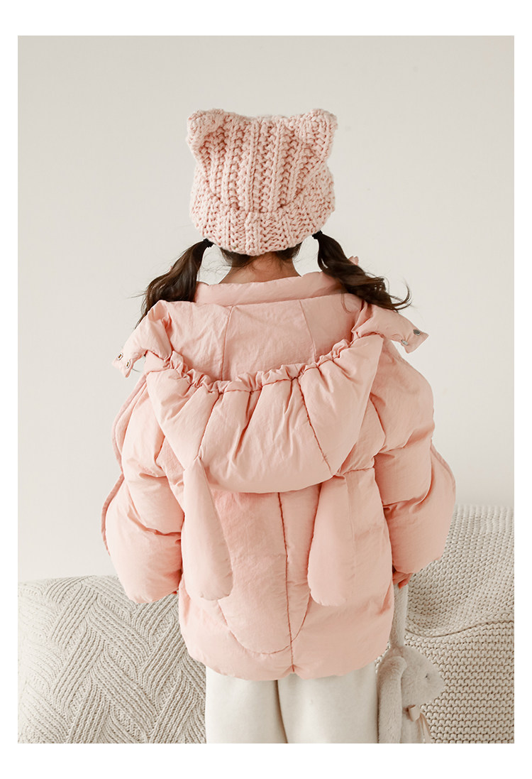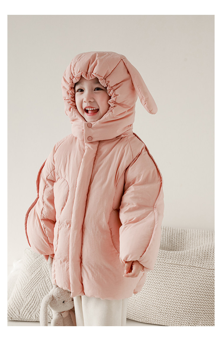 소녀의 긴 귀 토끼 모양의 후드 다운 재킷 겨울 어린이 귀여운 토끼 인형 따뜻한 코트