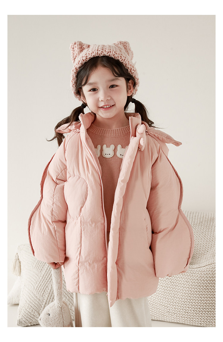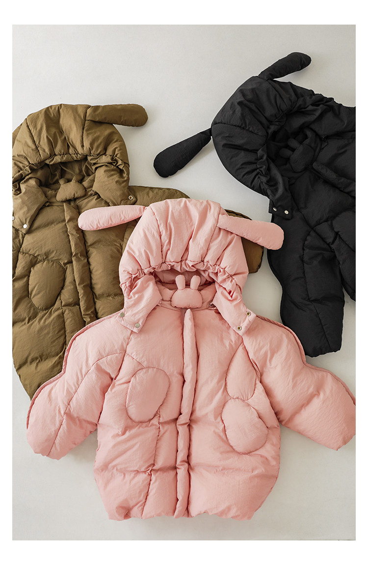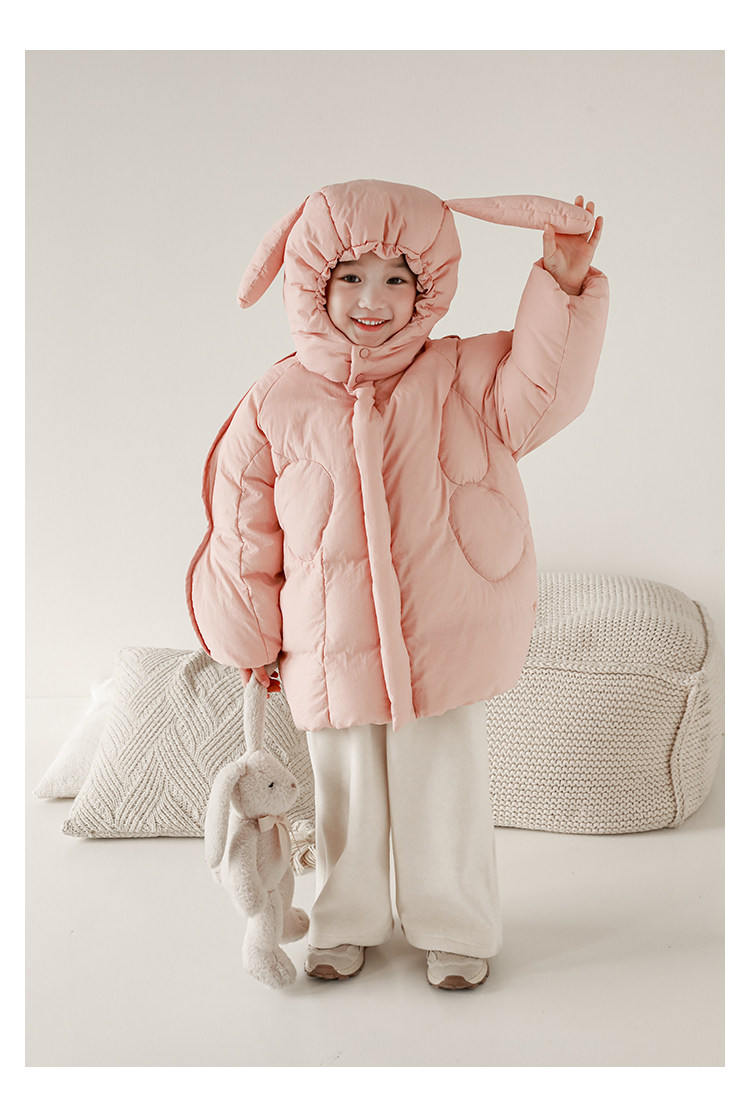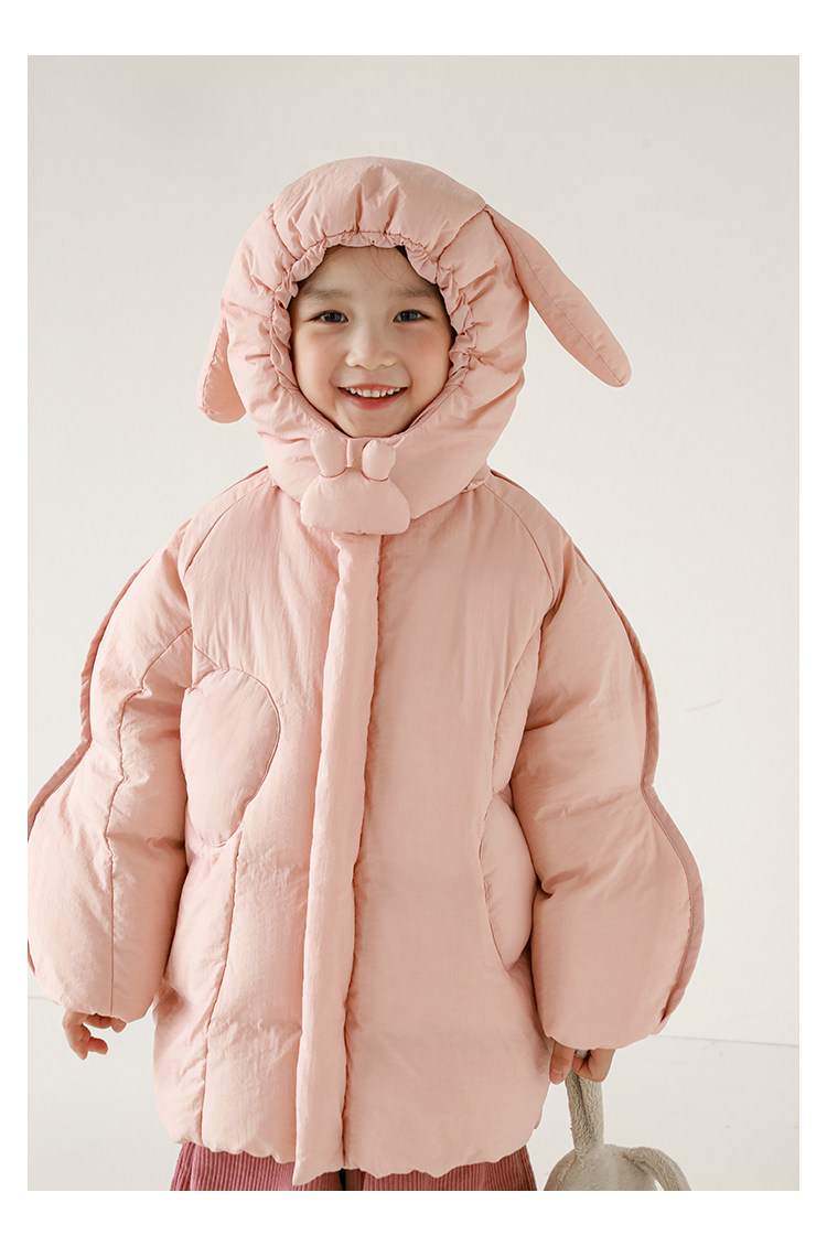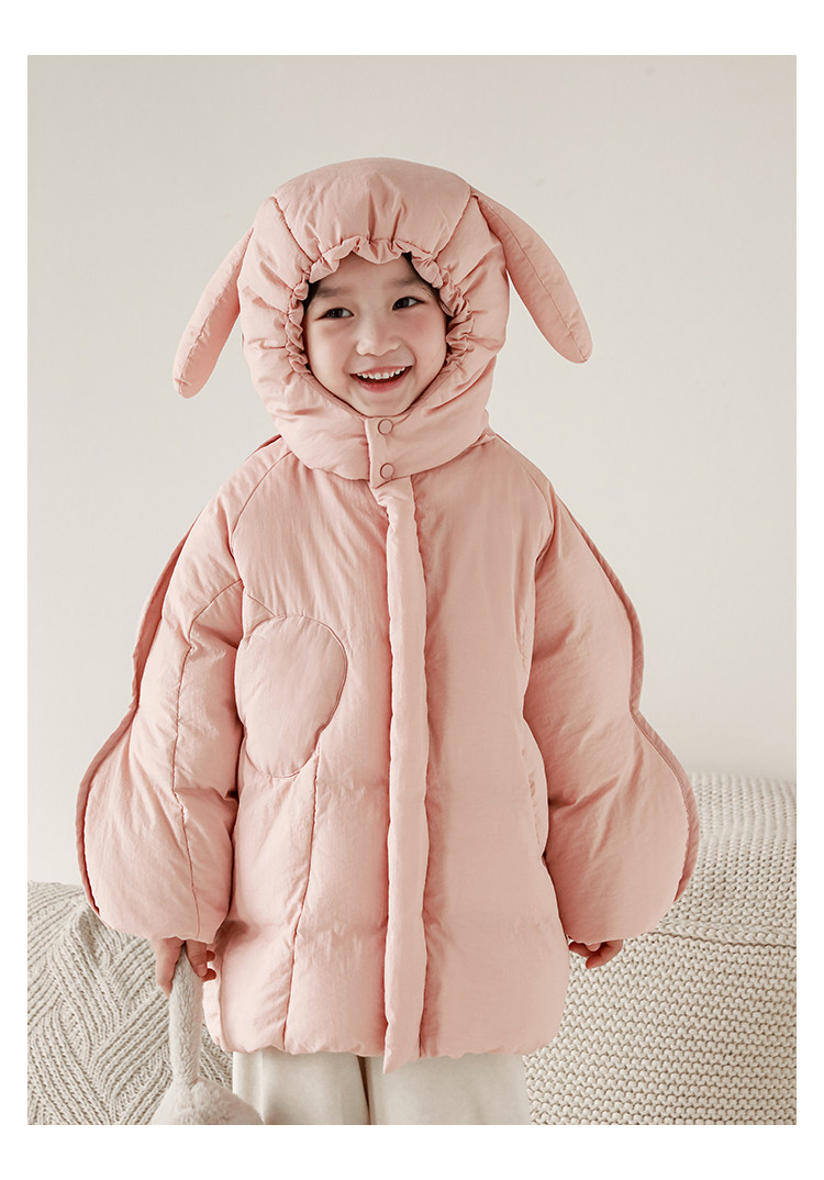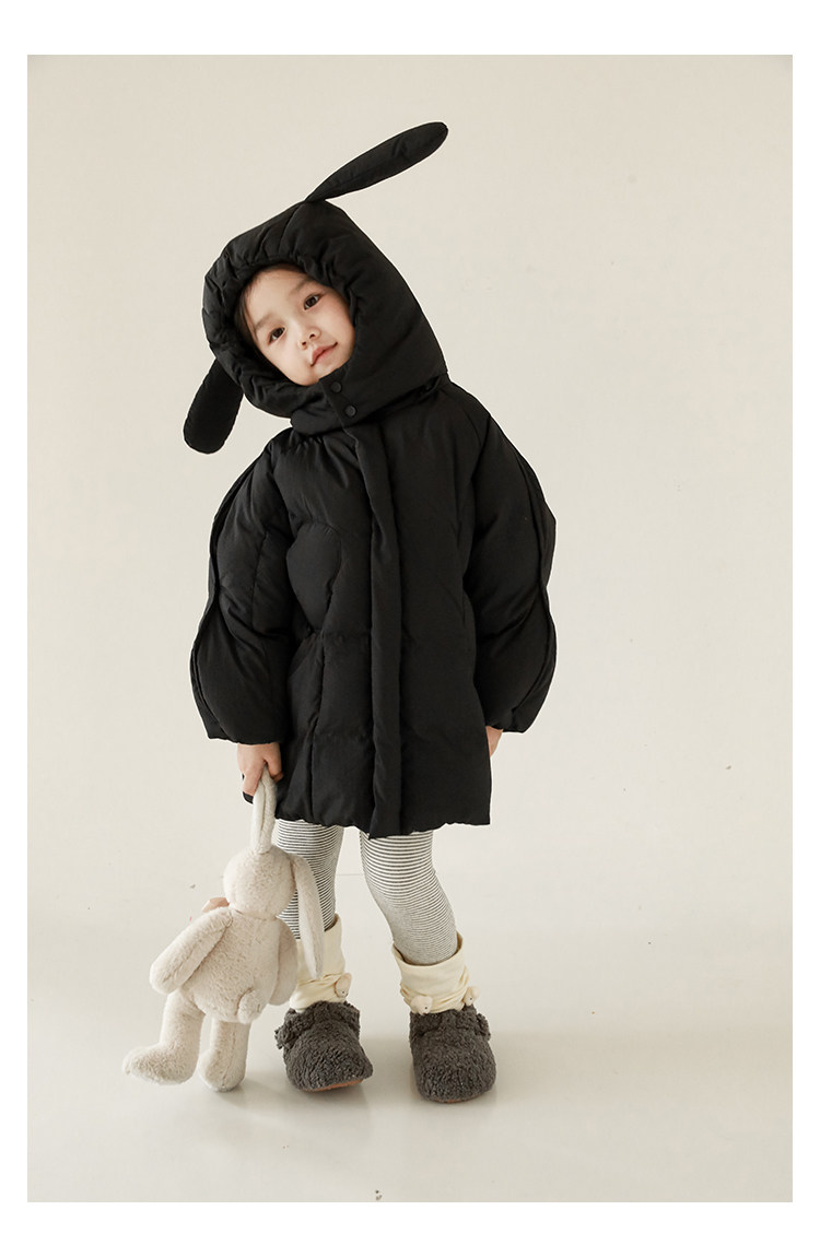 소녀의 긴 귀 토끼 모양의 후드 다운 재킷 겨울 어린이 귀여운 토끼 인형 따뜻한 코트