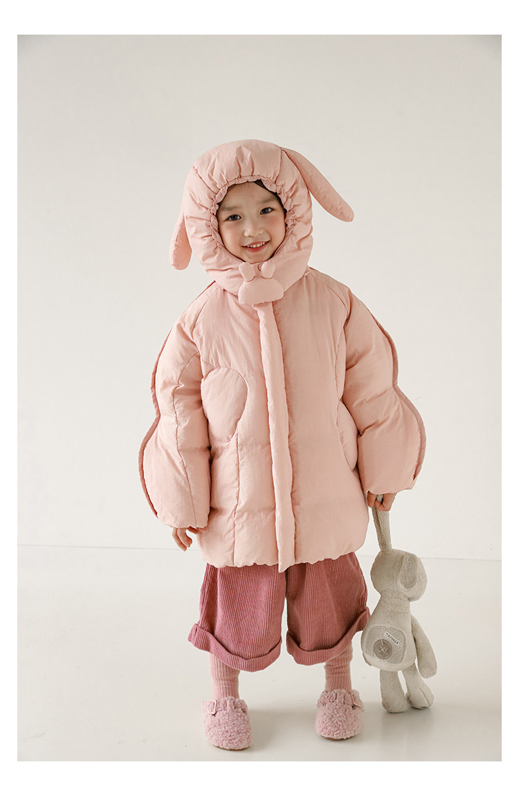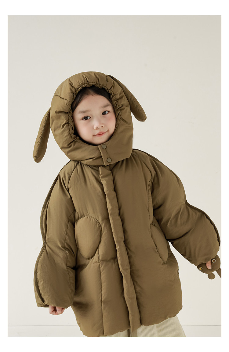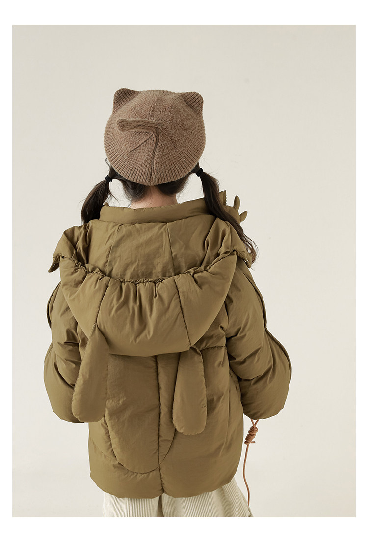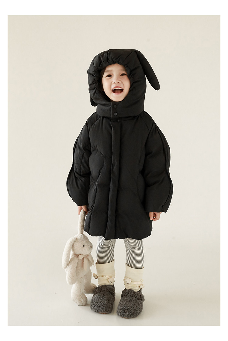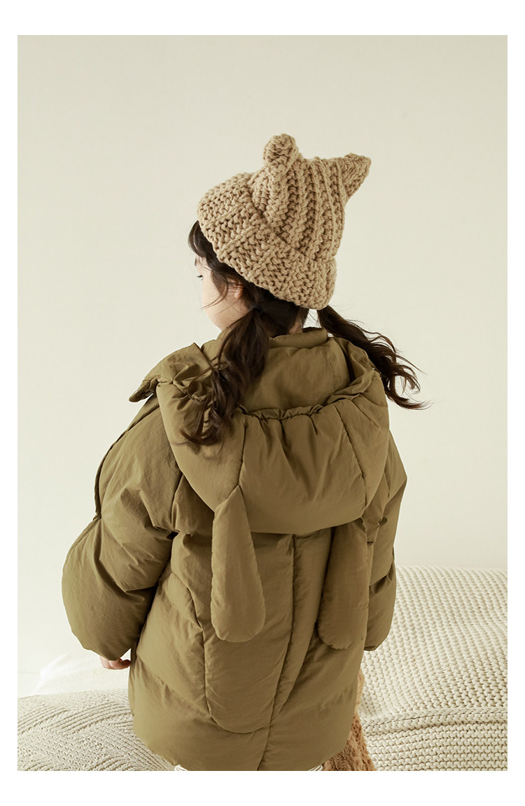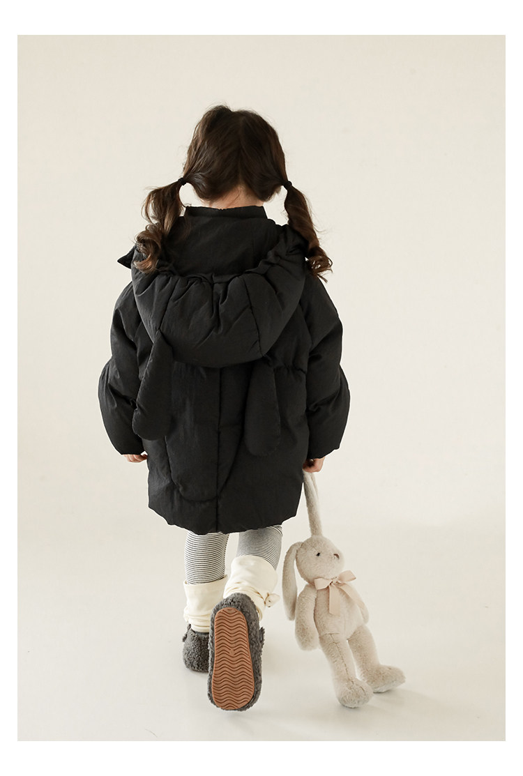 소녀의 긴 귀 토끼 모양의 후드 다운 재킷 겨울 어린이 귀여운 토끼 인형 따뜻한 코트