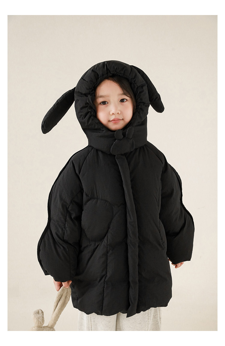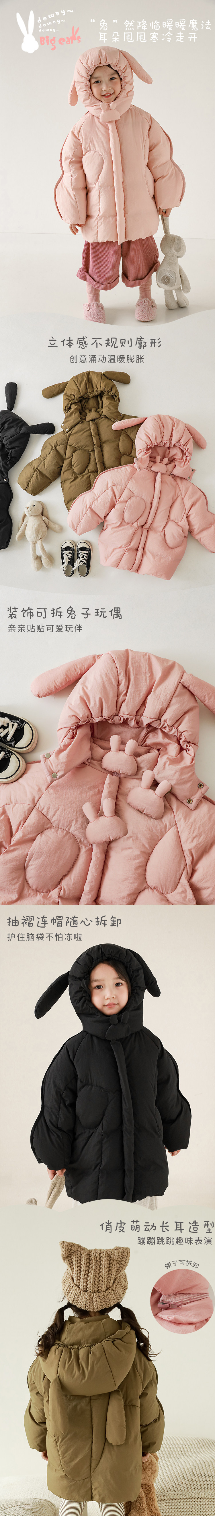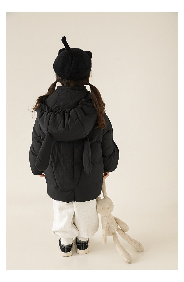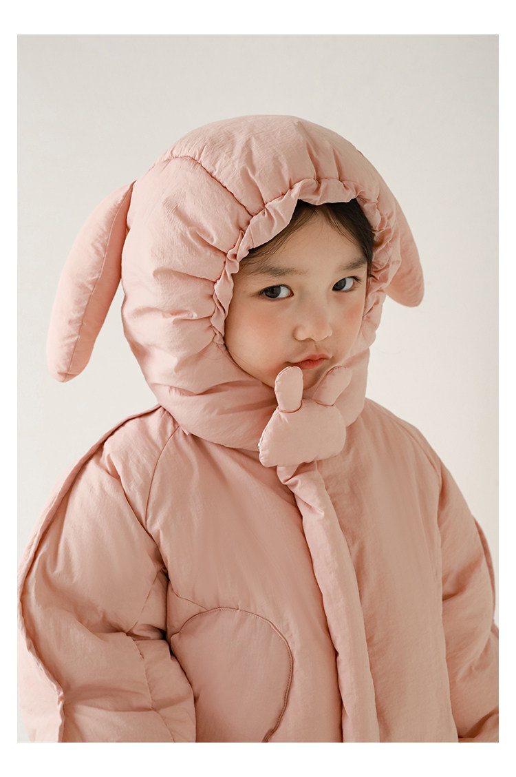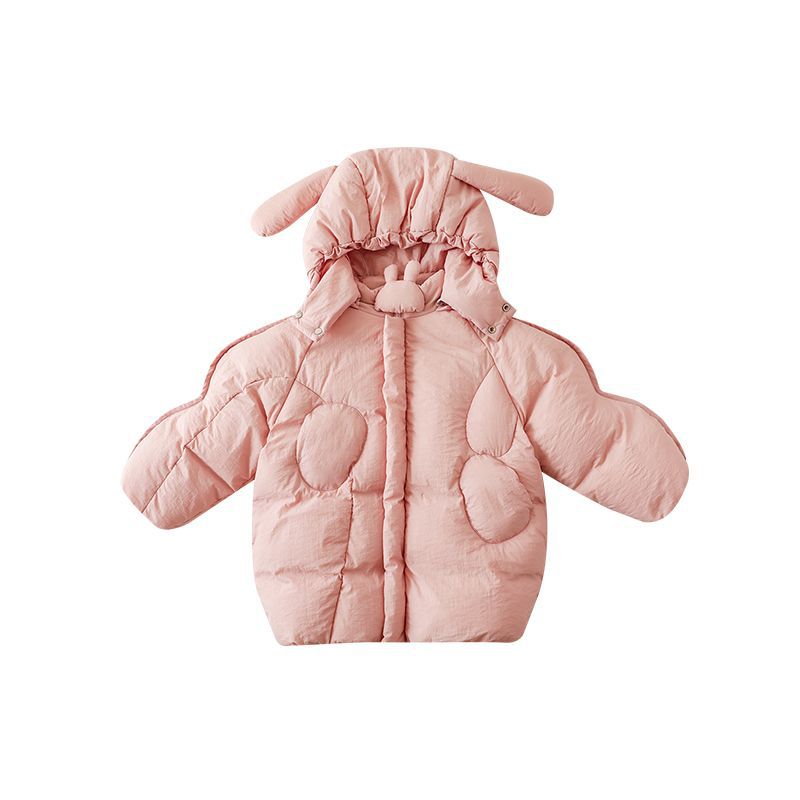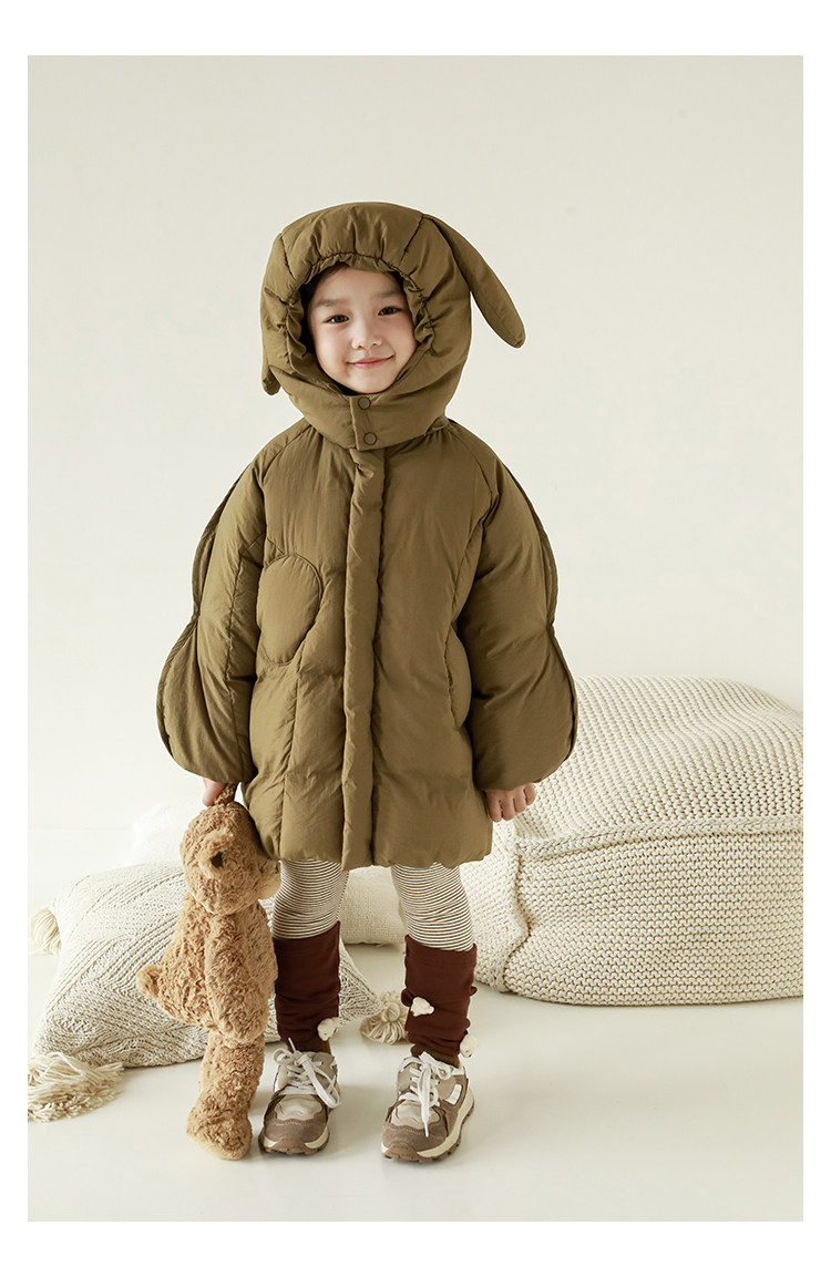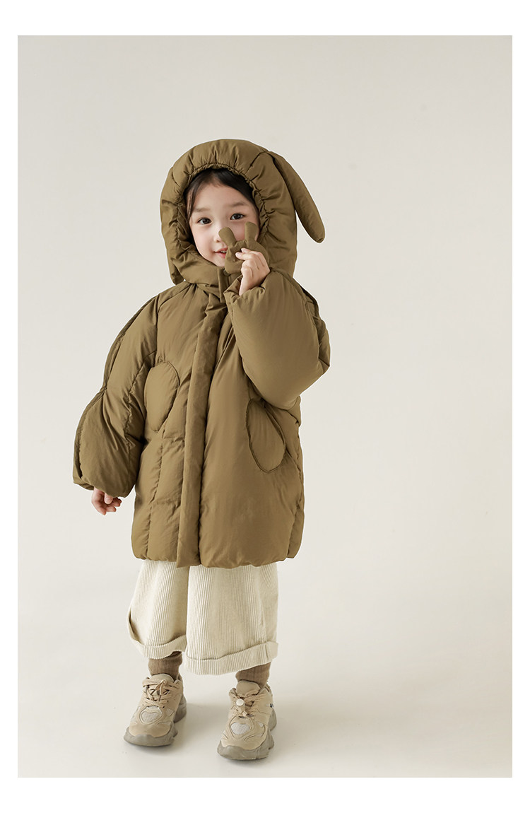 소녀의 긴 귀 토끼 모양의 후드 다운 재킷 겨울 어린이 귀여운 토끼 인형 따뜻한 코트