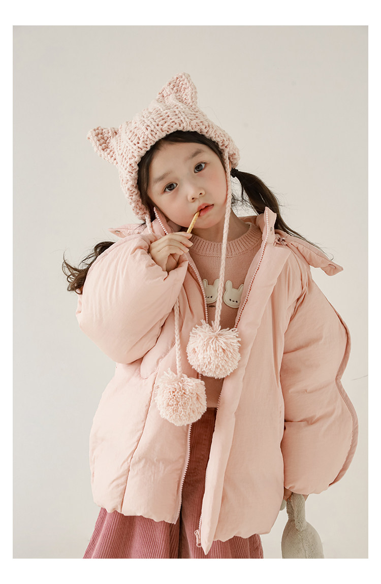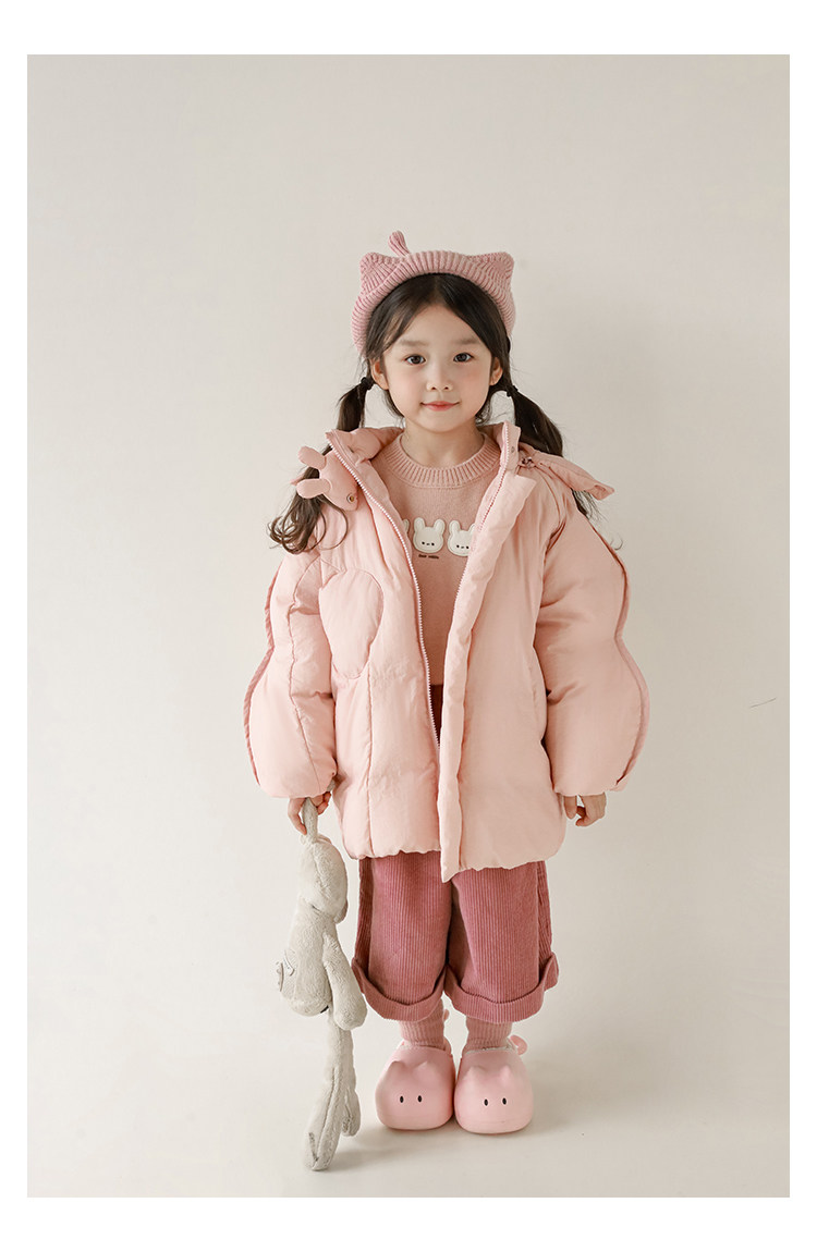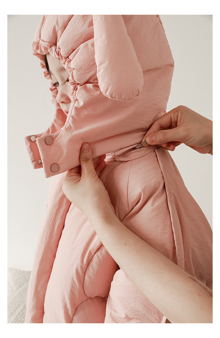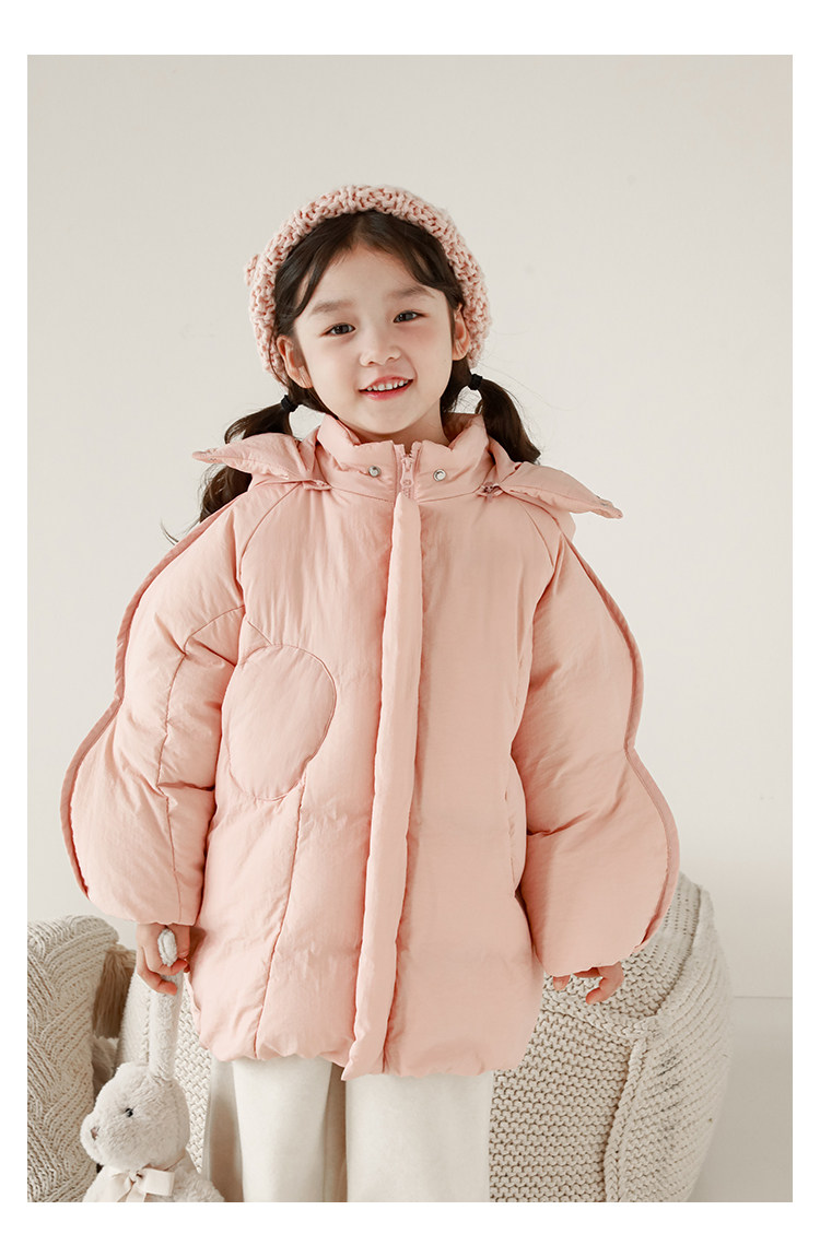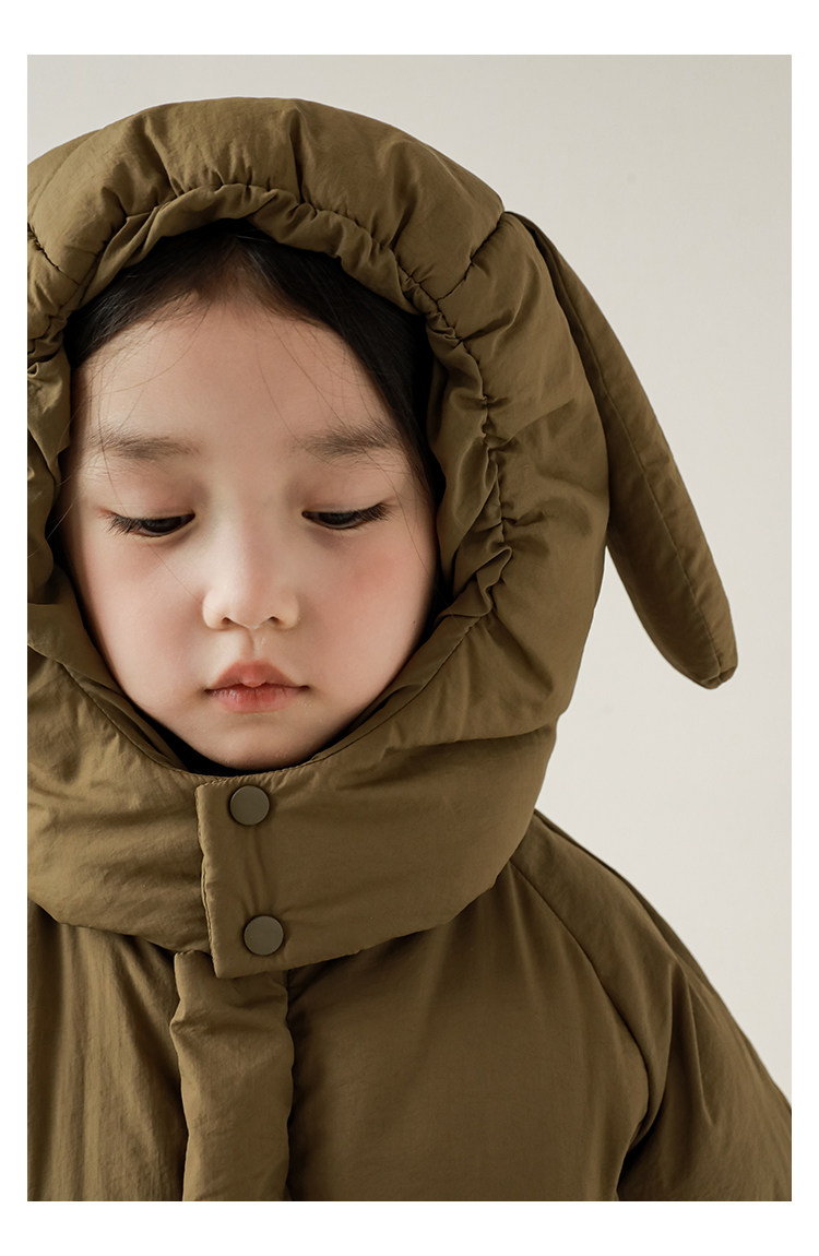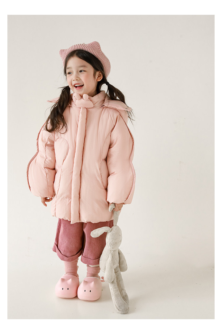 소녀의 긴 귀 토끼 모양의 후드 다운 재킷 겨울 어린이 귀여운 토끼 인형 따뜻한 코트