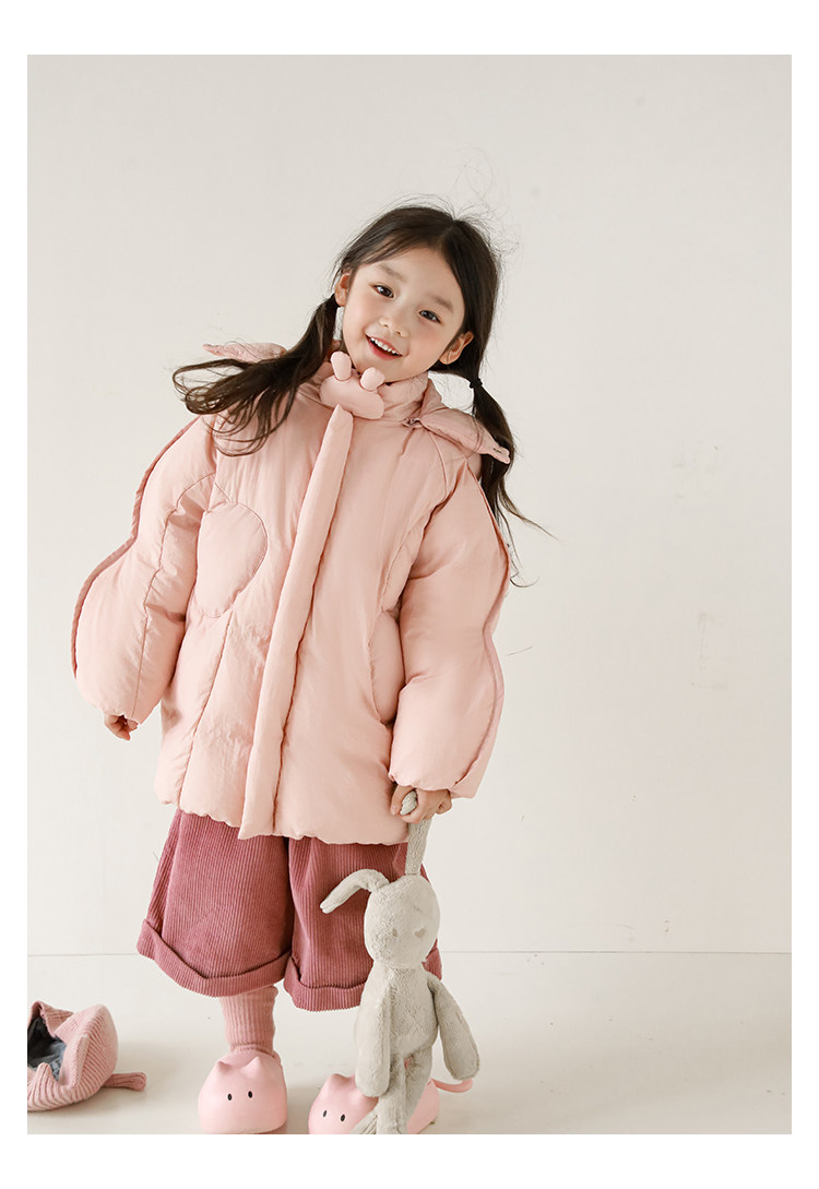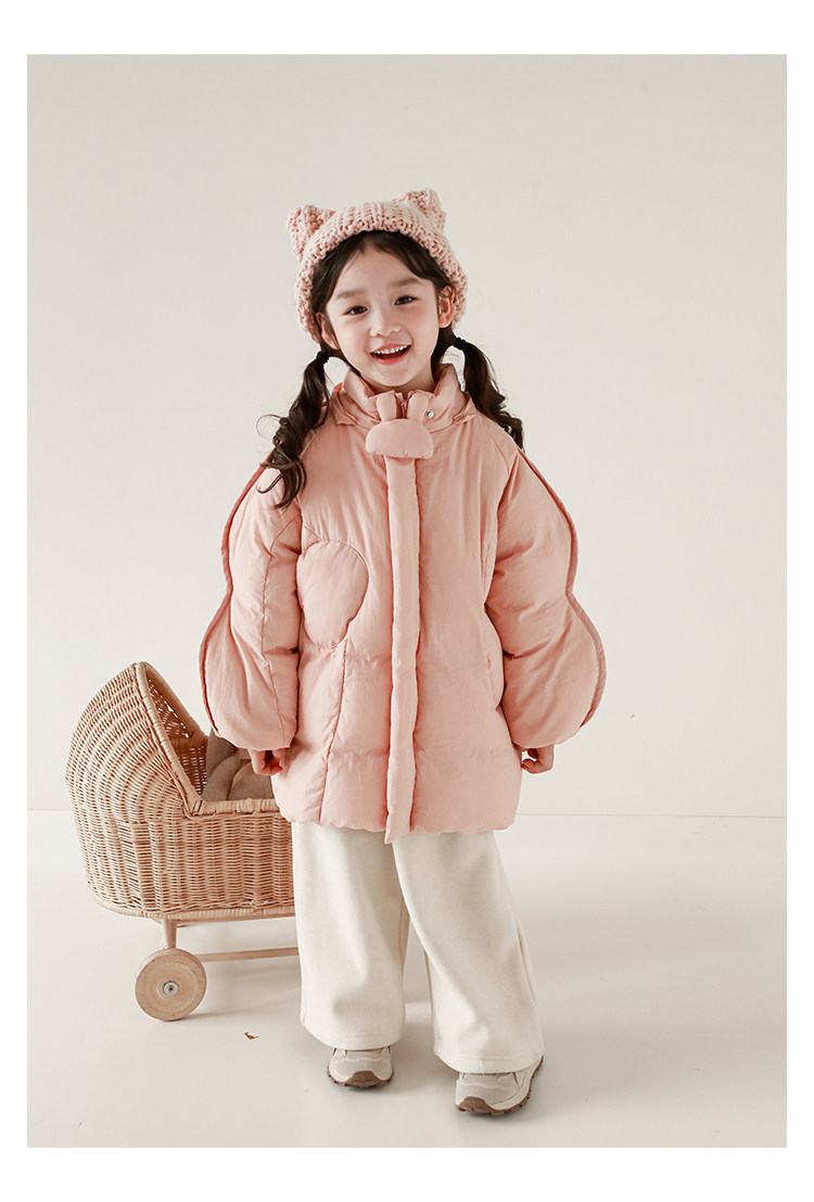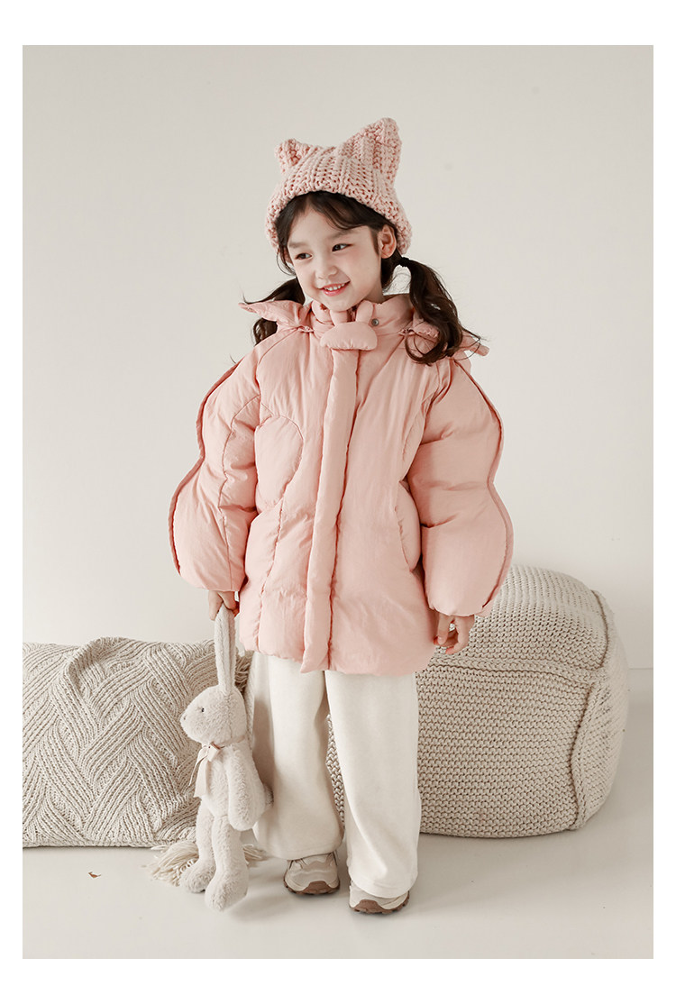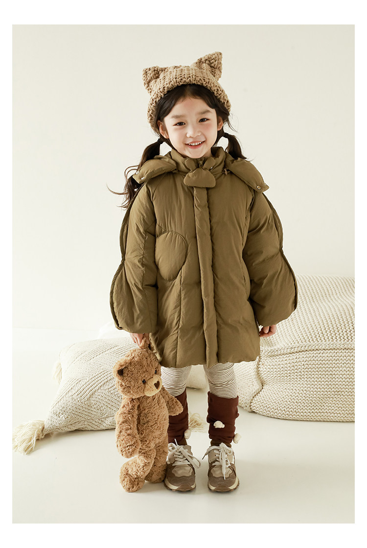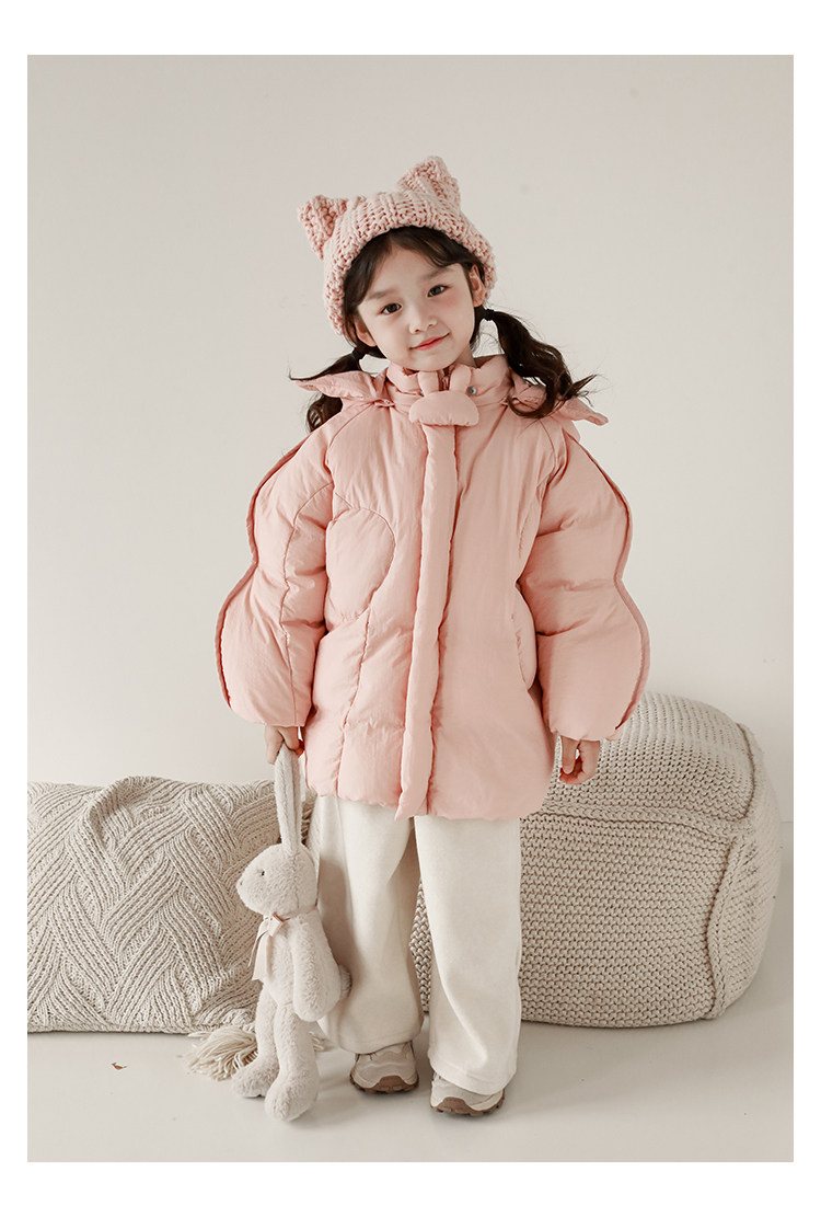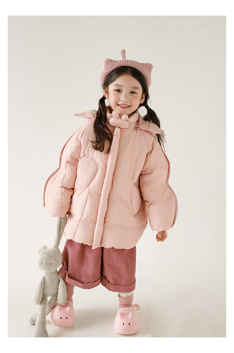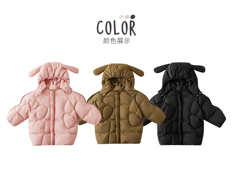 소녀의 긴 귀 토끼 모양의 후드 다운 재킷 겨울 어린이 귀여운 토끼 인형 따뜻한 코트