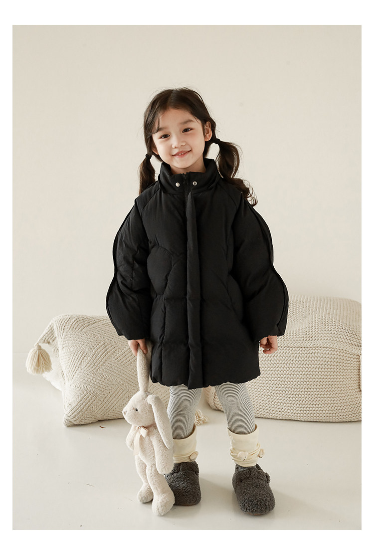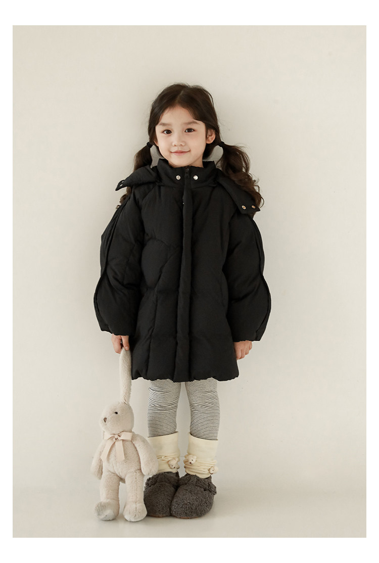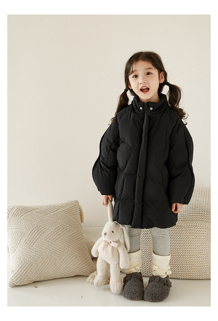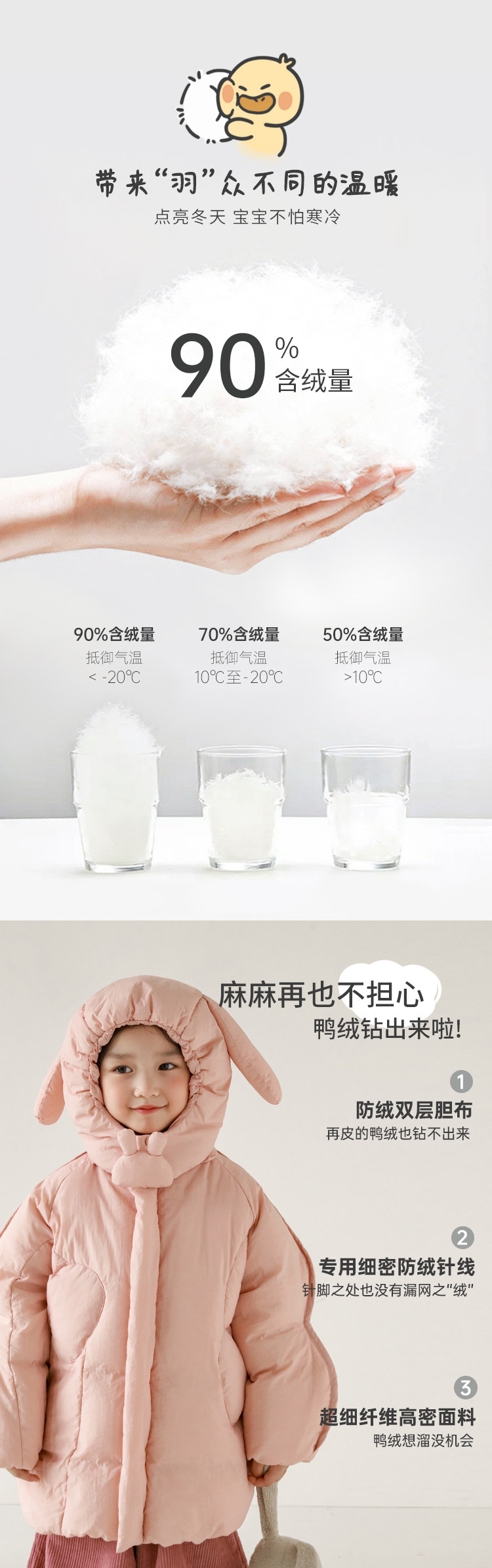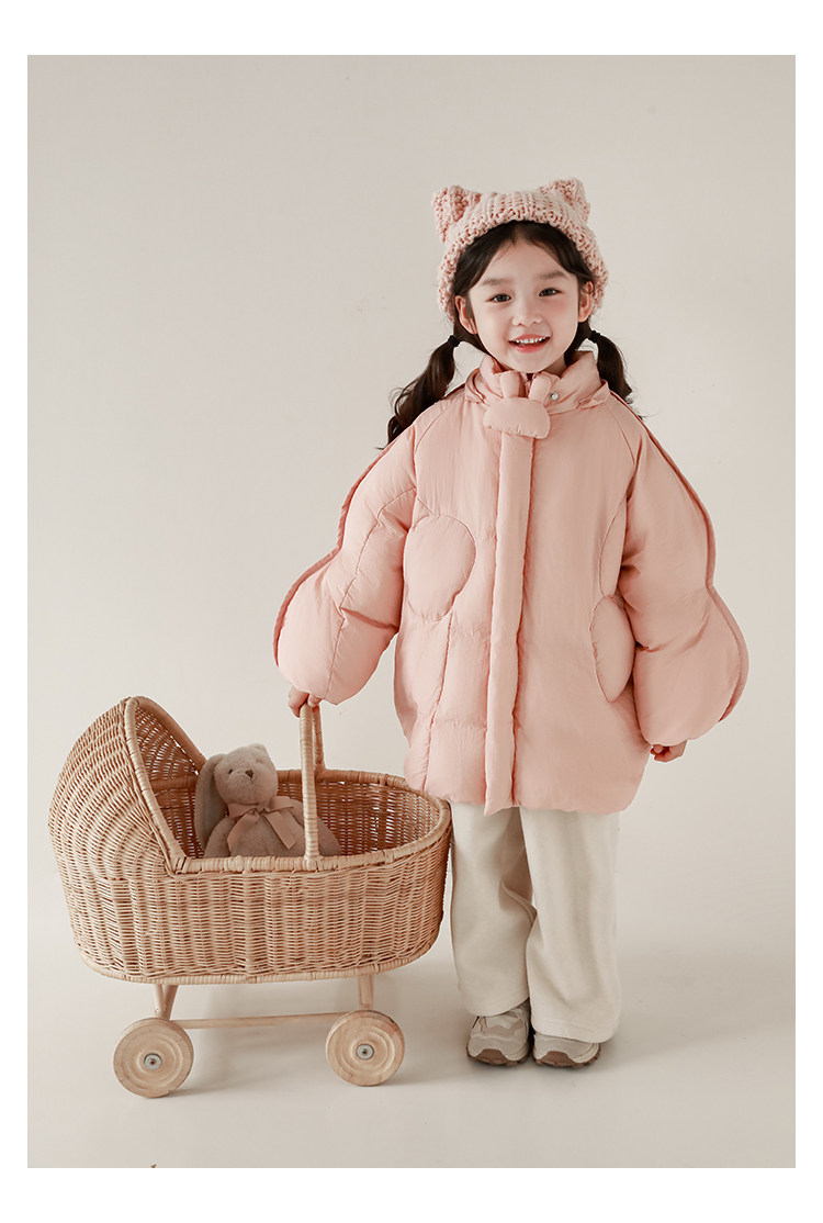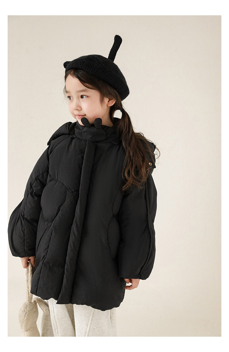 소녀의 긴 귀 토끼 모양의 후드 다운 재킷 겨울 어린이 귀여운 토끼 인형 따뜻한 코트