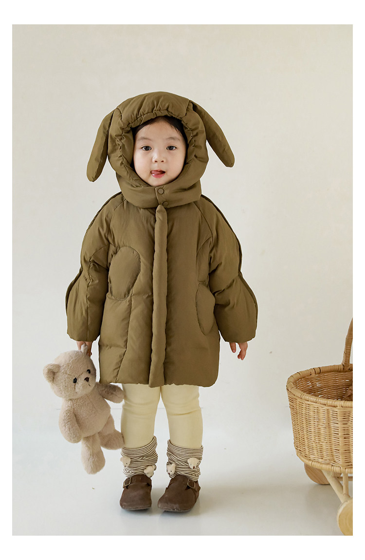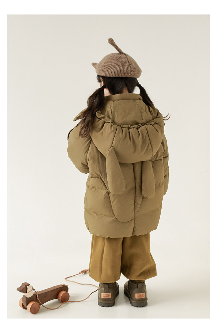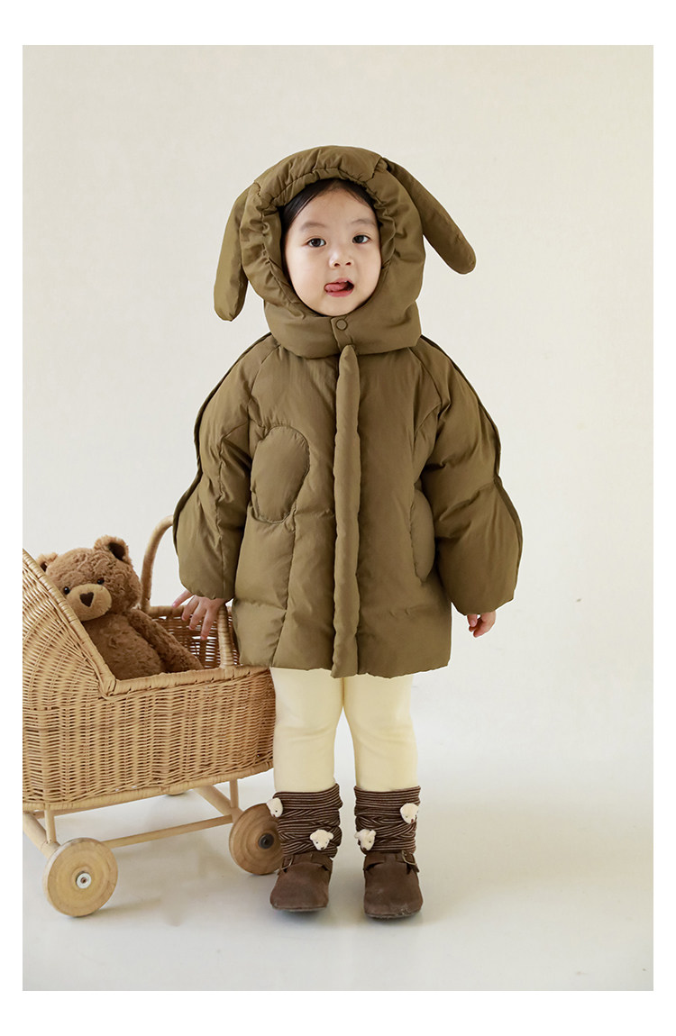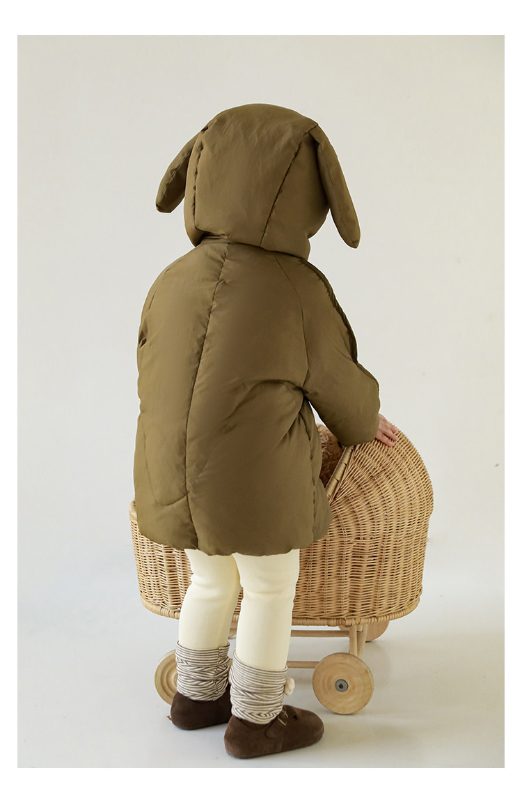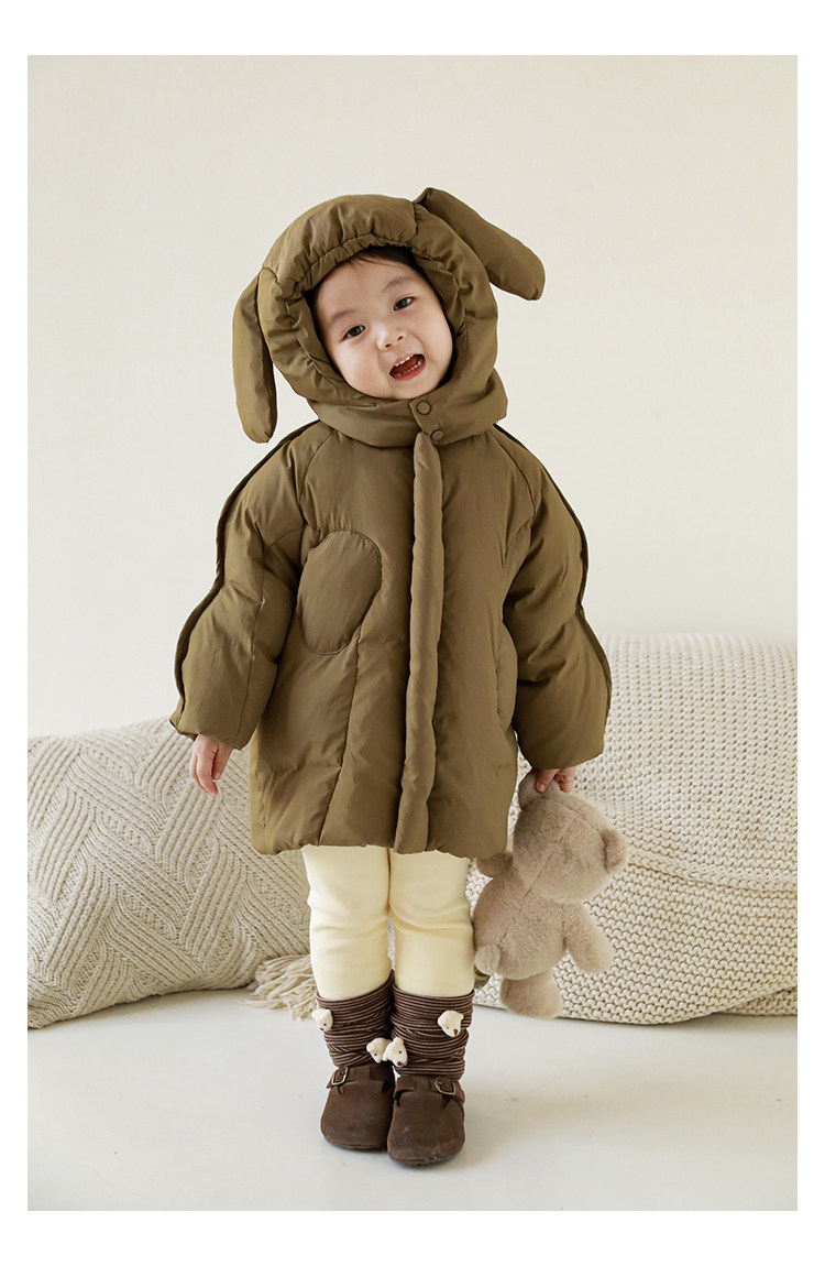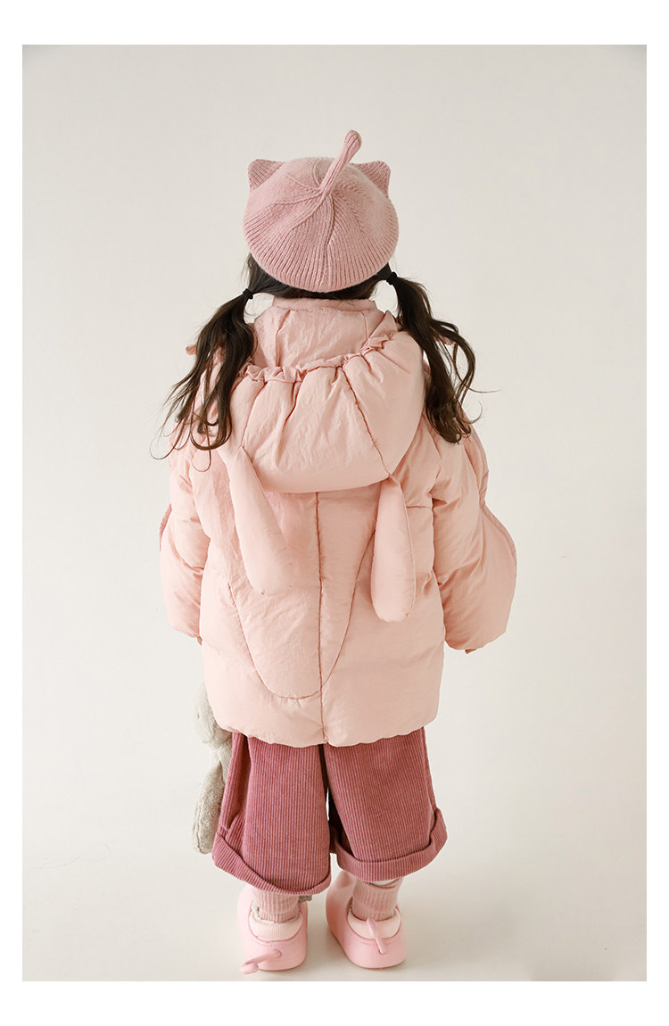 소녀의 긴 귀 토끼 모양의 후드 다운 재킷 겨울 어린이 귀여운 토끼 인형 따뜻한 코트스토어 가기