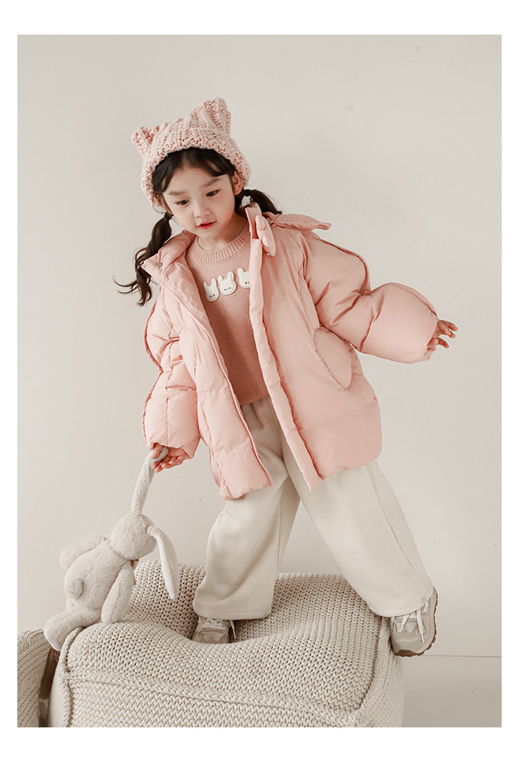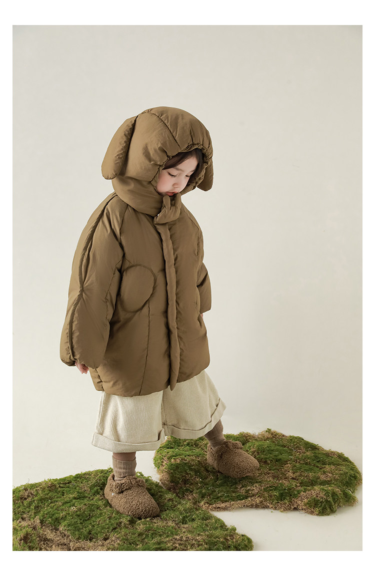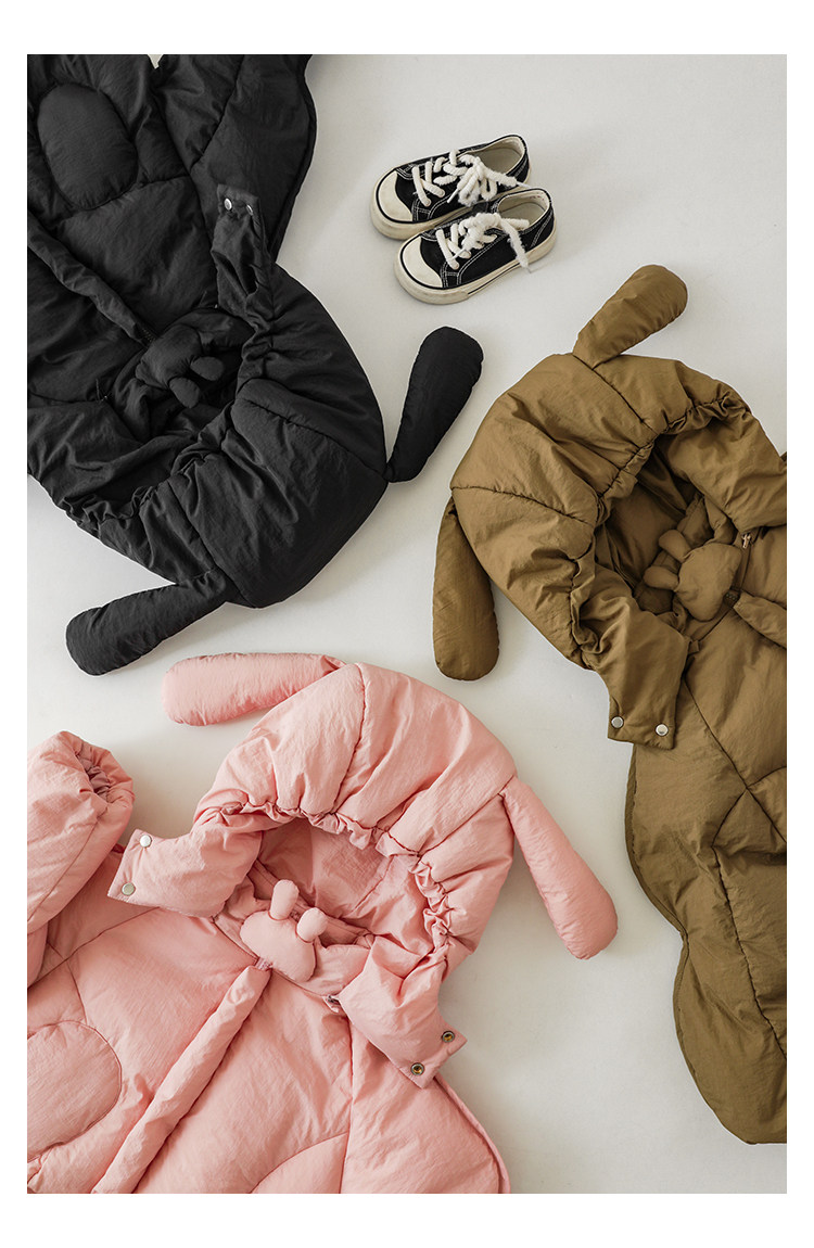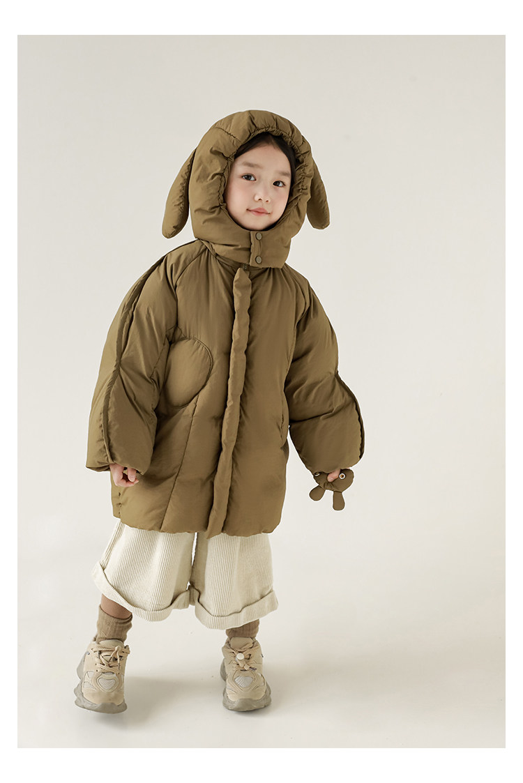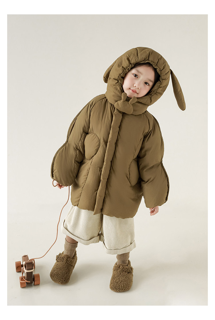 소녀의 긴 귀 토끼 모양의 후드 다운 재킷 겨울 어린이 귀여운 토끼 인형 따뜻한 코트스토어 가기