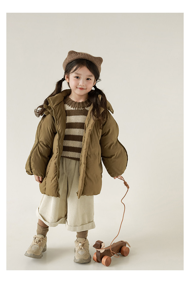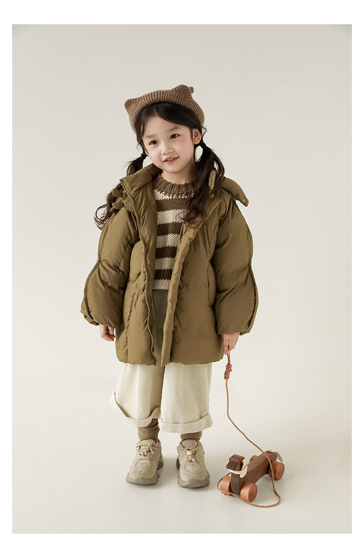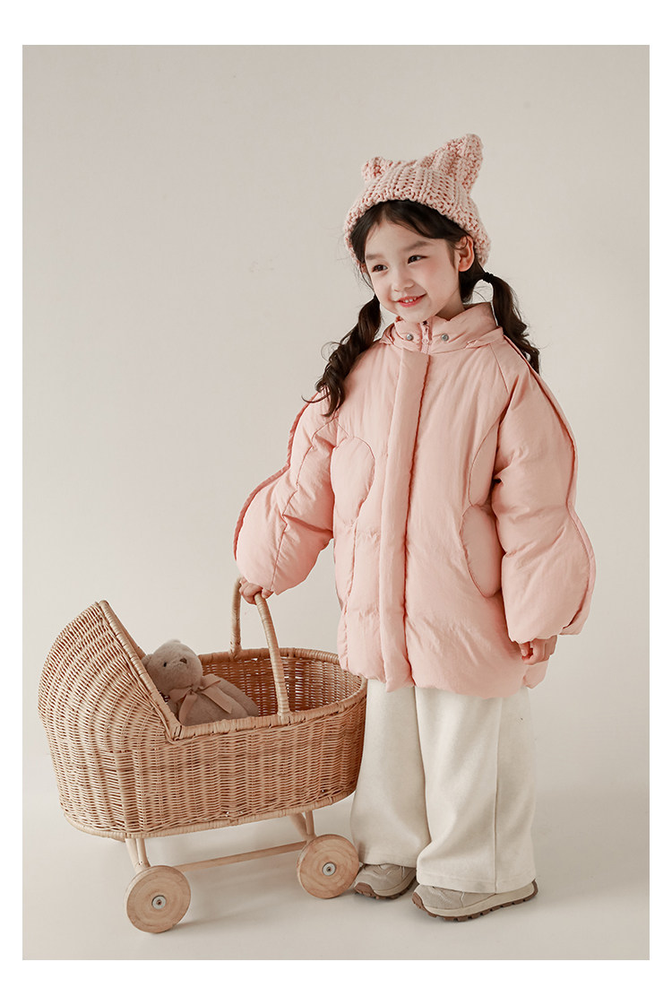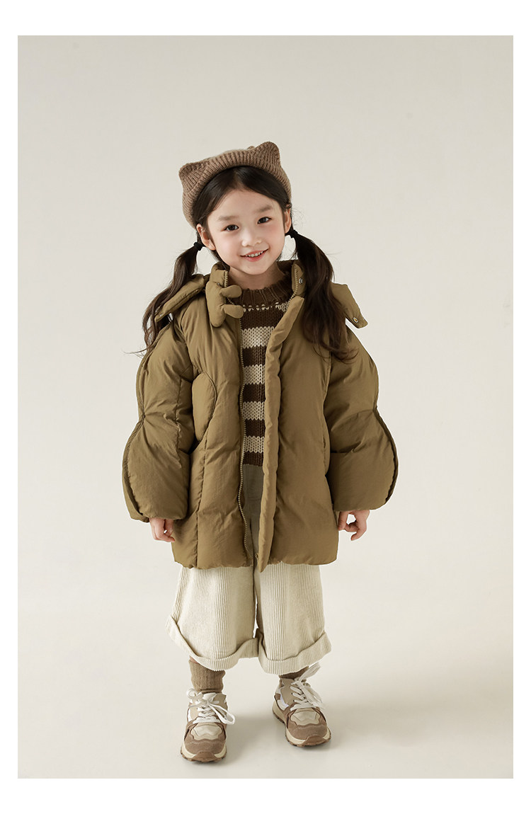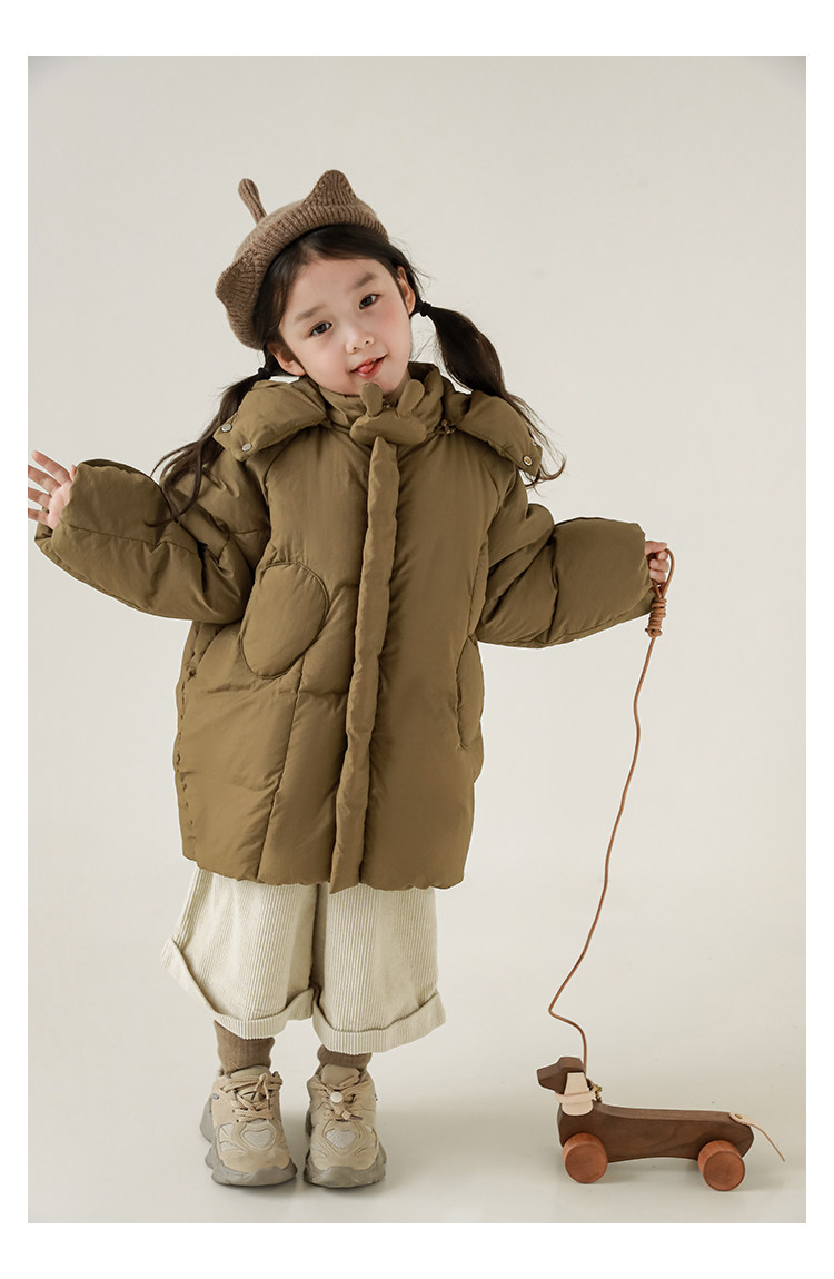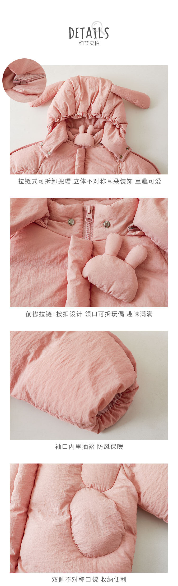 소녀의 긴 귀 토끼 모양의 후드 다운 재킷 겨울 어린이 귀여운 토끼 인형 따뜻한 코트스토어 가기