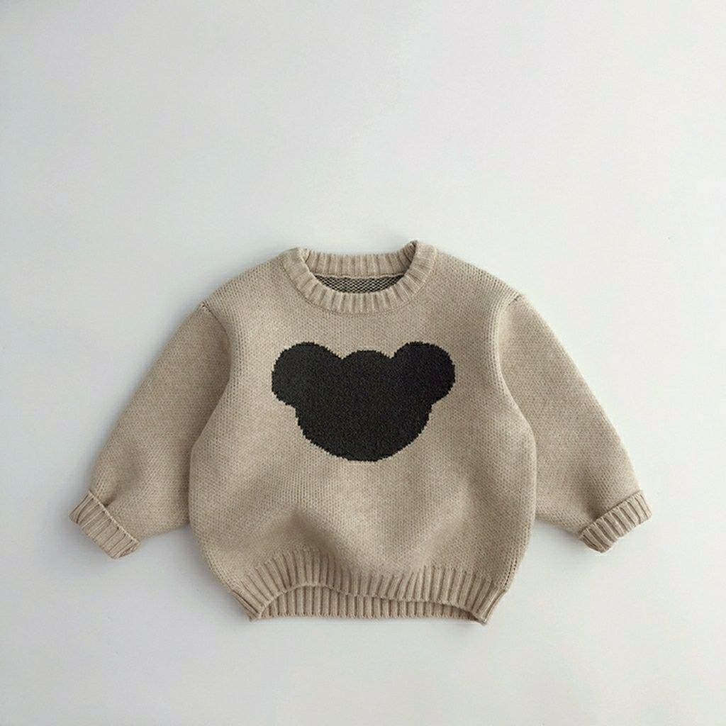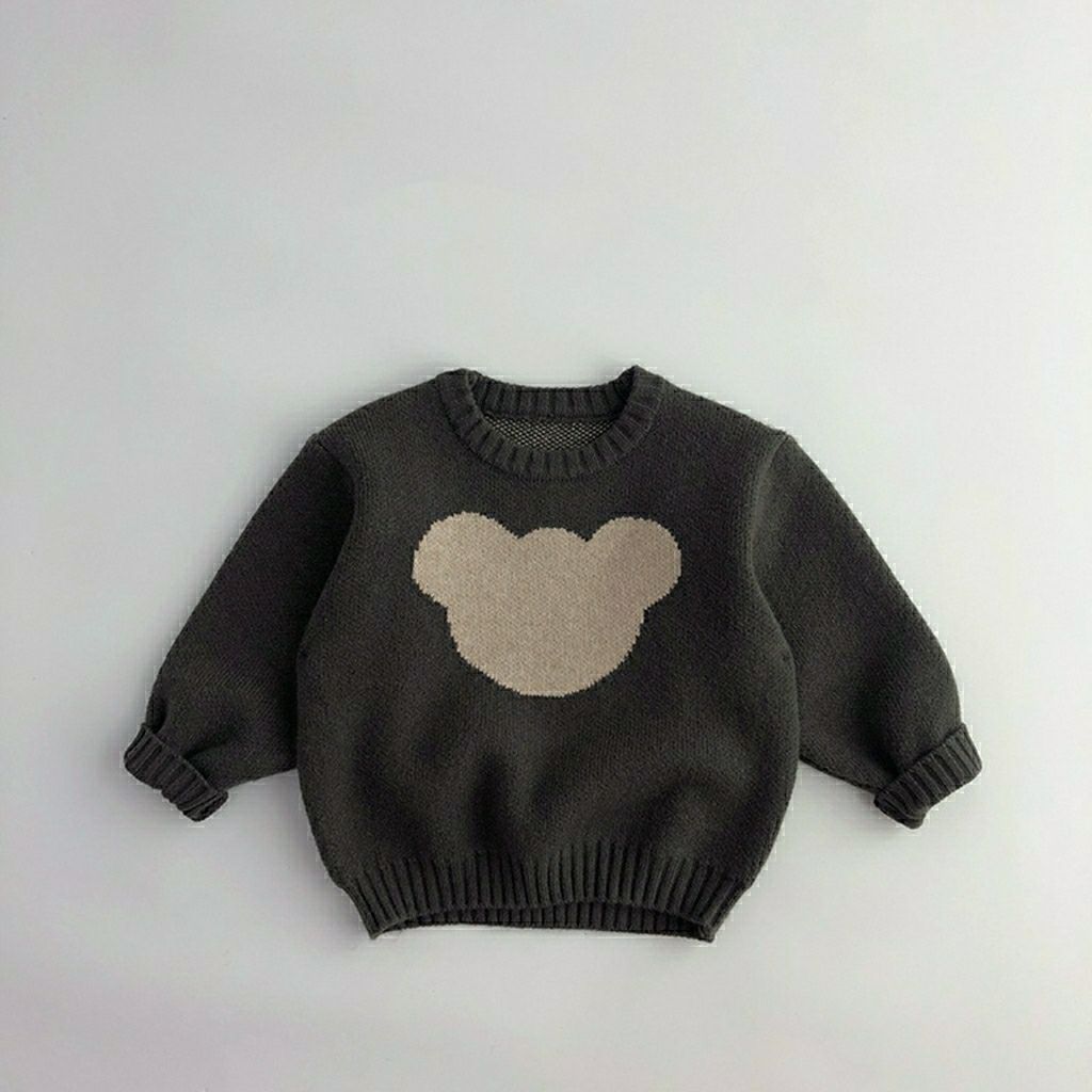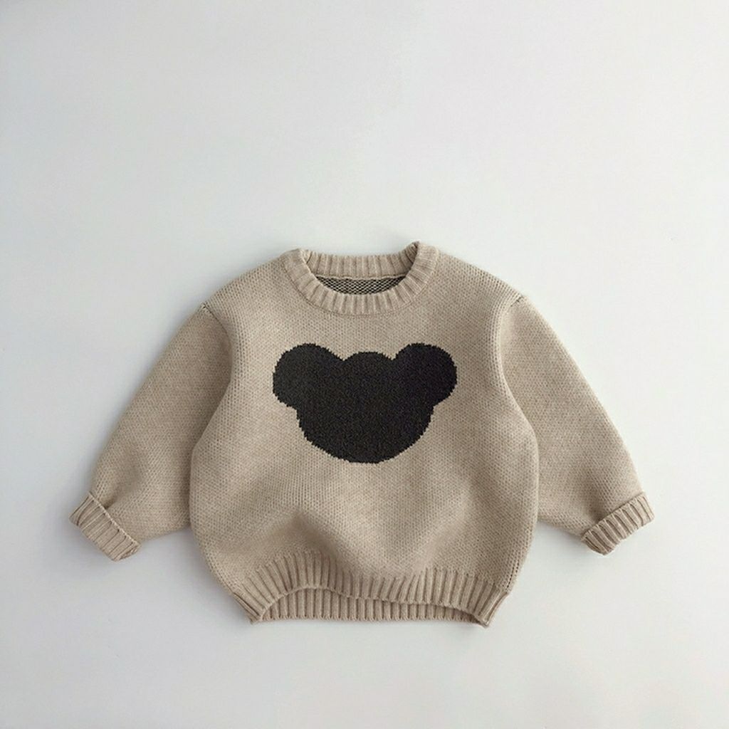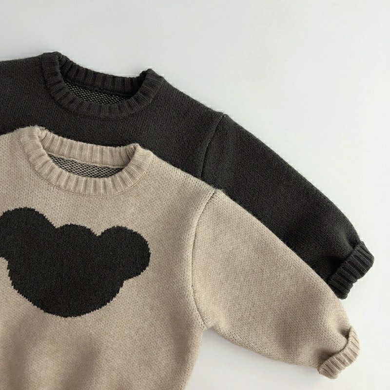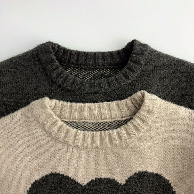 2024 소년 소녀를위한 가을 겨울 모리 스웨터 한국 스타일 아기 느슨한 스티칭 크루 넥 스웨터 풀오버