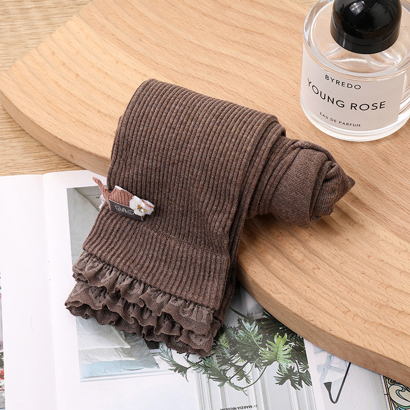 귀여운 크라운 소녀 피부 친화적인 면 레깅스 봄, 가을 얇은 아동용 다용도 레이스 세로 줄무늬 9부 바지스토어 가기