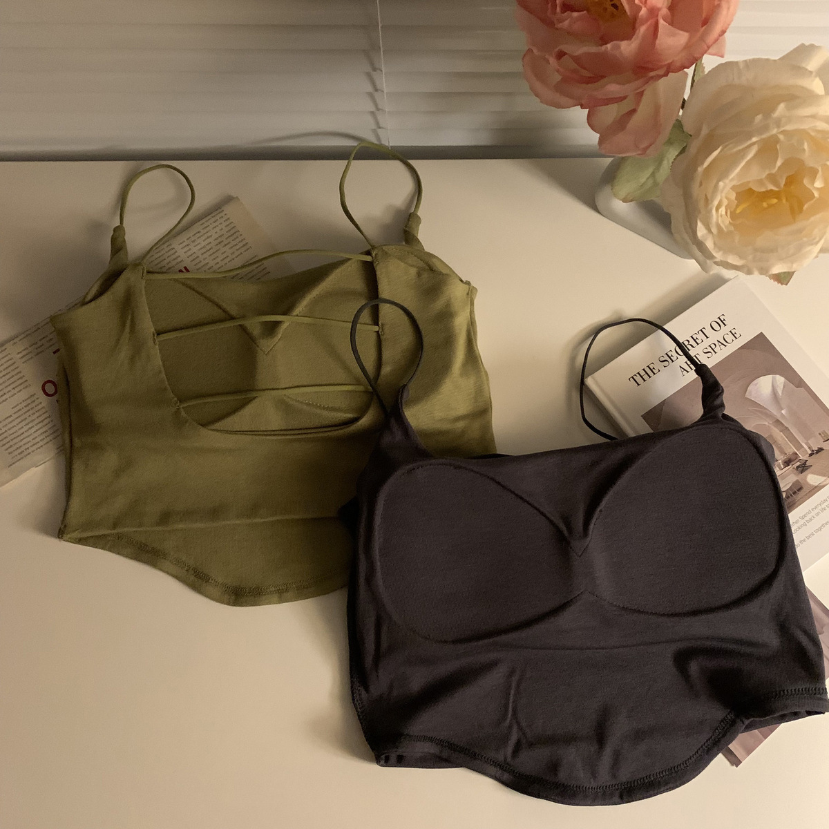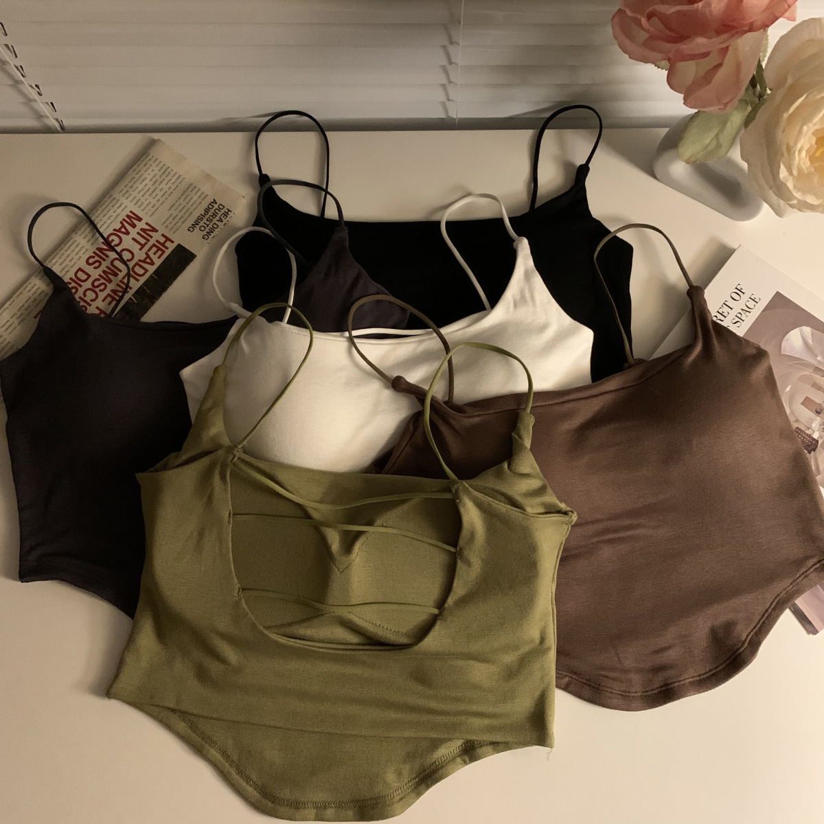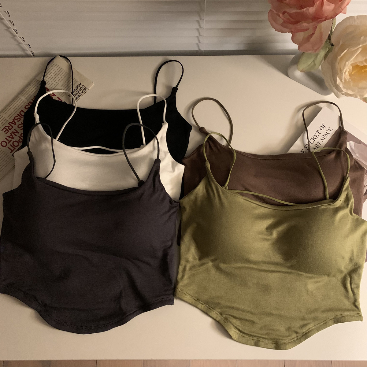935 # 스파이스 걸 아름다운 스트랩 가슴 패드 작은 조끼 슬링 여성의 여름 꽉 짧은 내부 베이스 셔츠 민소매 겉옷