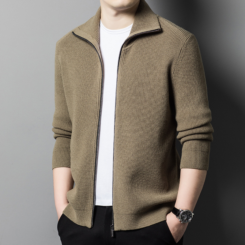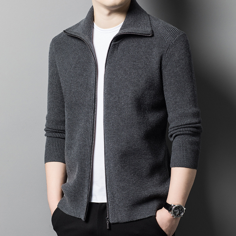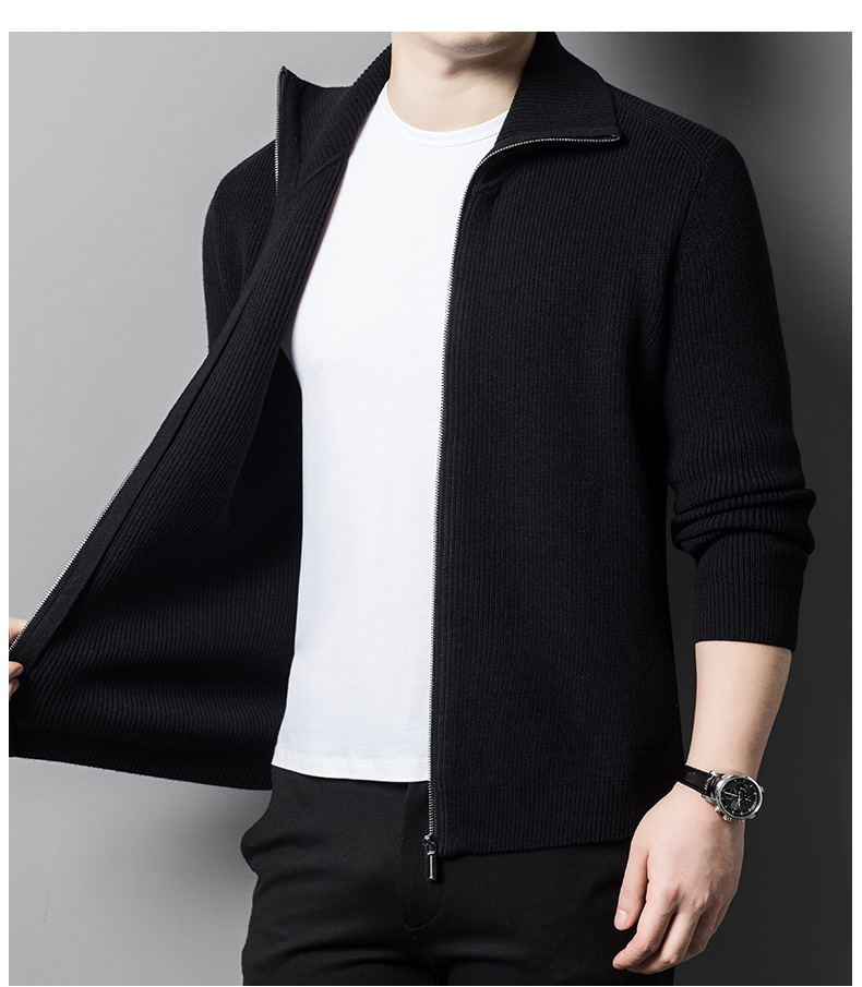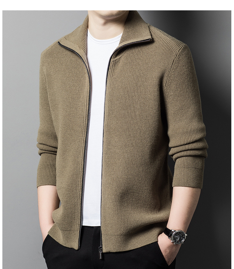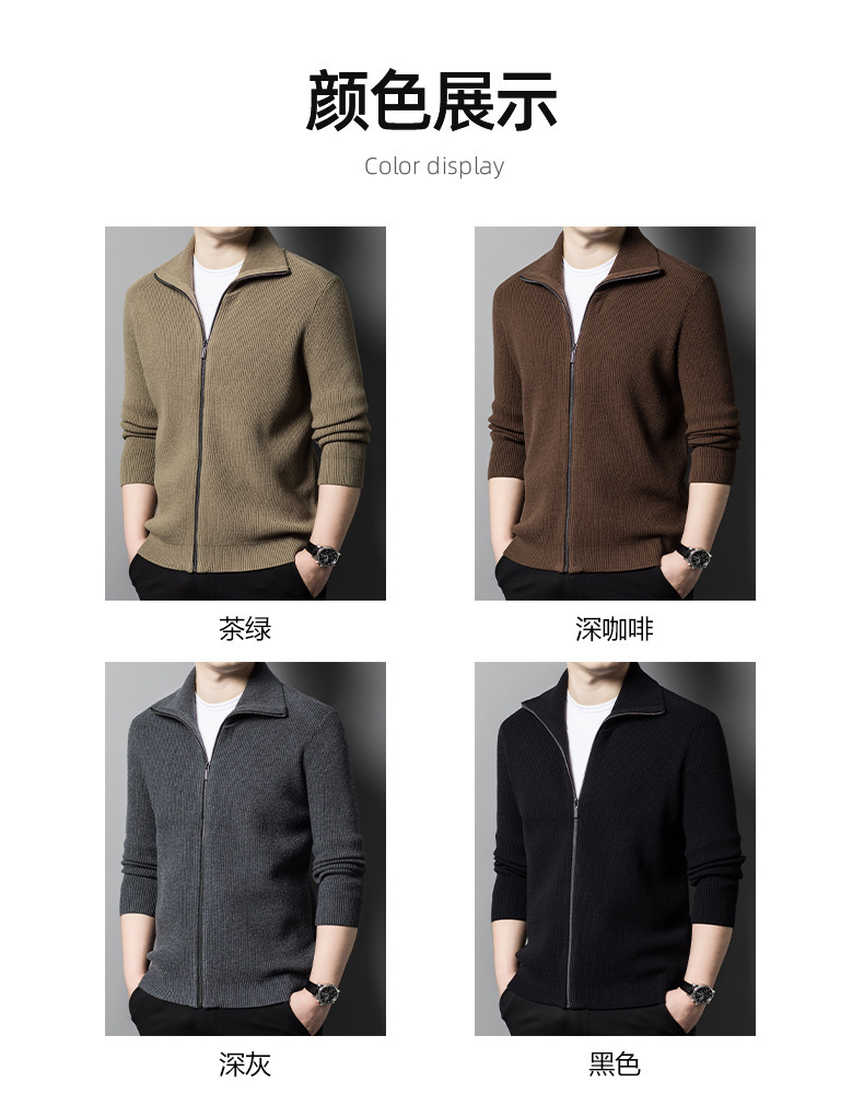 라이브 핫 셀링 울 라펠 니트 가디건 재킷 남성용 2023 가을과 겨울 새로운 두꺼운 지퍼 스웨터 남성복스토어 가기