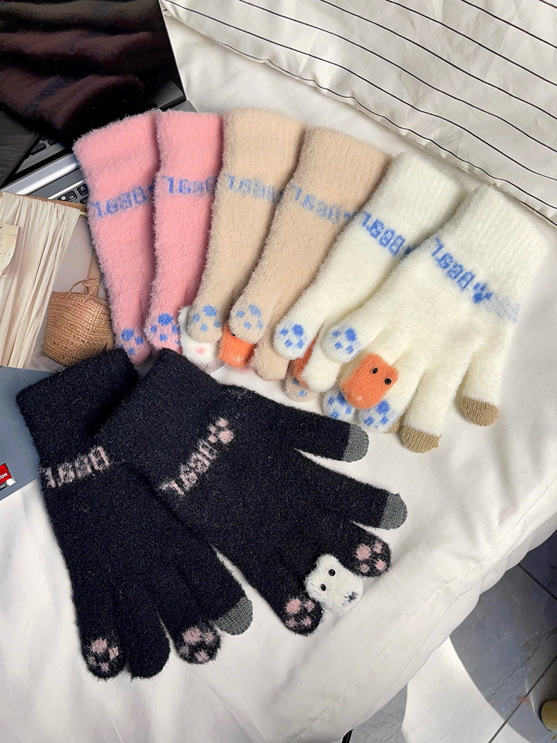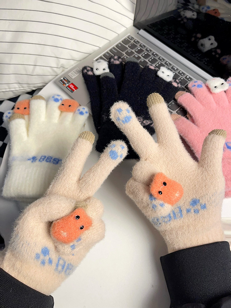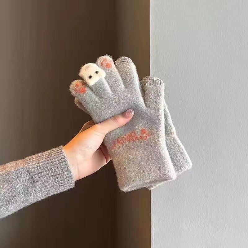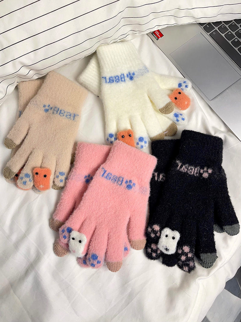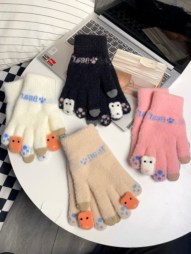 겨울 따뜻한 장갑 만화 손가락 곰 귀여운 장갑 여성 니트 기모 손가락 장갑 승마 장갑 도매스토어 가기