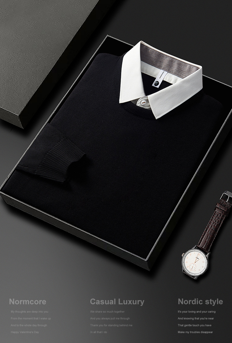 가짜 투피스 스웨터 남자 가을과 겨울 검은 셔츠 칼라 남자 내베이스 스웨터 오버롤 맞춤형스토어 가기