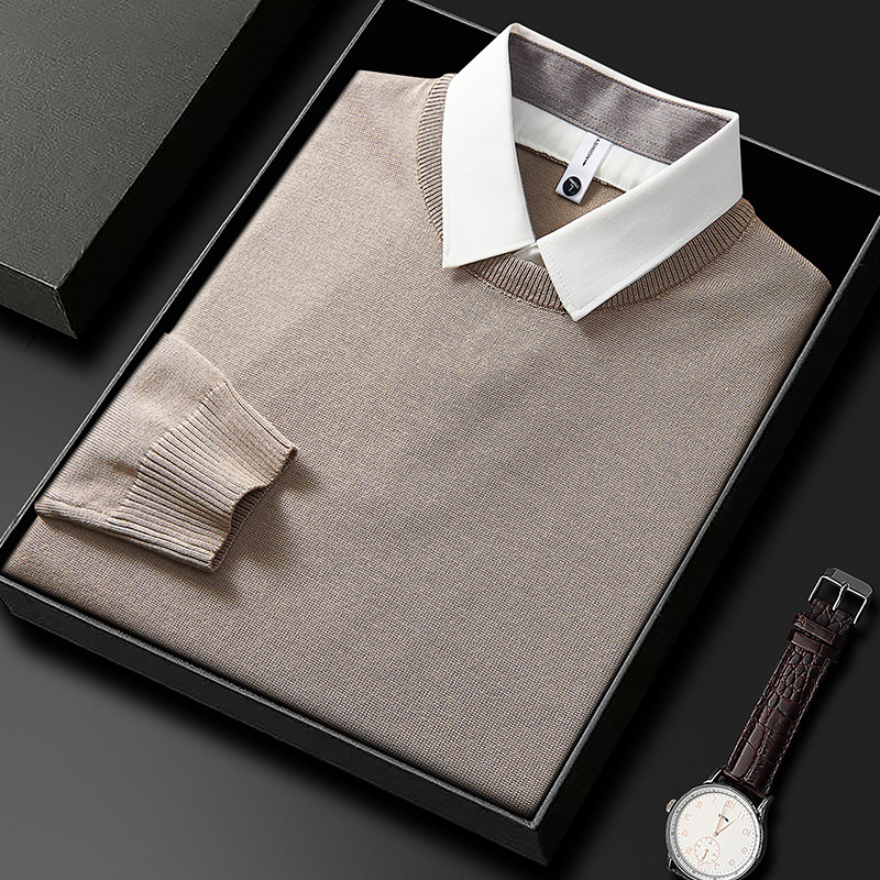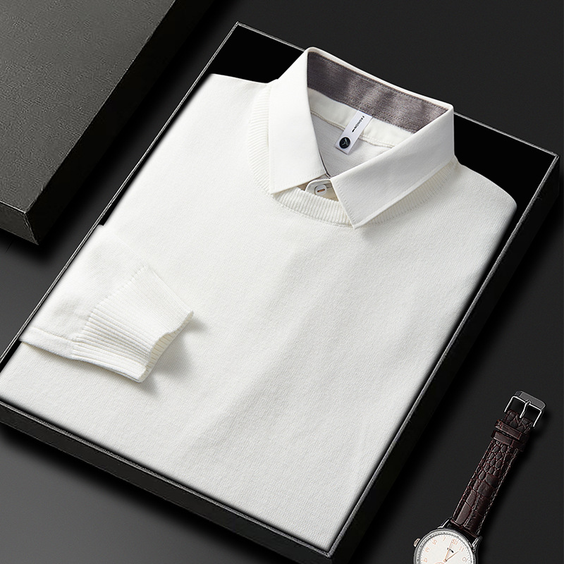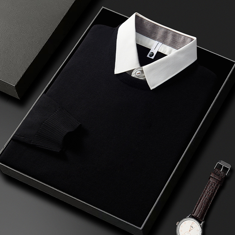 가짜 투피스 스웨터 남자 가을과 겨울 검은 셔츠 칼라 남자 내베이스 스웨터 오버롤 맞춤형