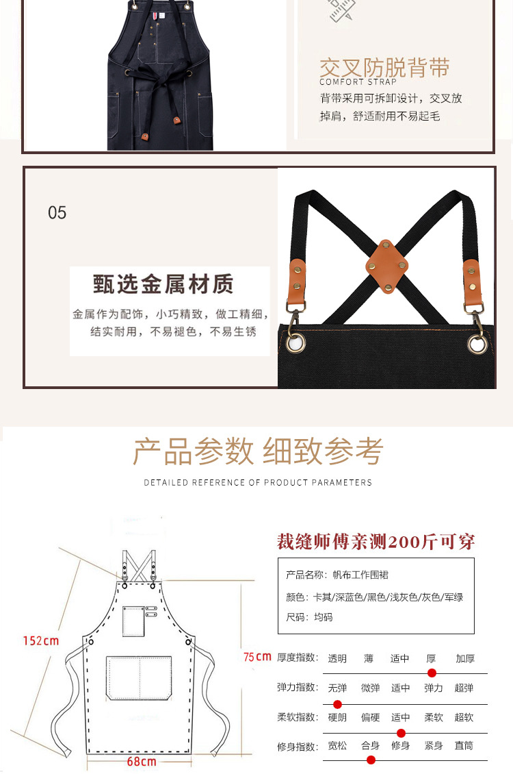 크로스 보더 본격적인 캔버스 앞치마 가정용 주방 방수 및 내유성 취사 커피 숍 목재 장인 원예 앞치마 인쇄