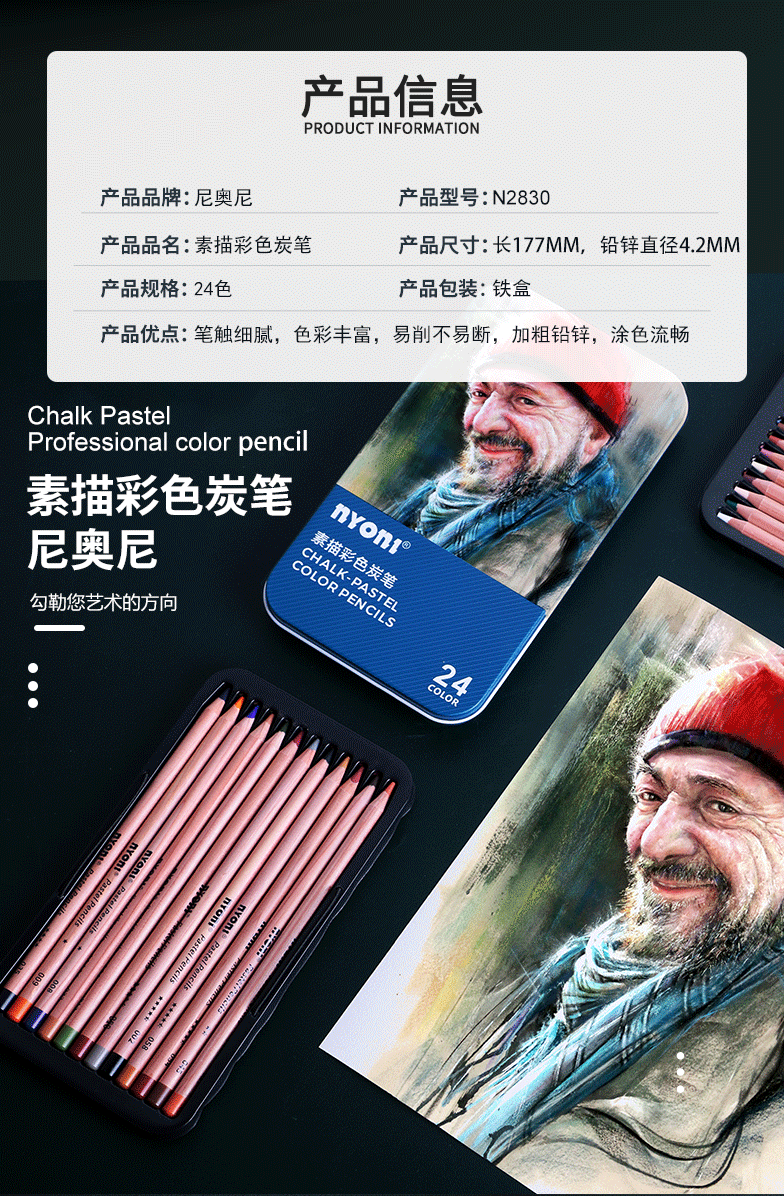 尼奥尼nyoni炭笔批发软中硬素描铅笔速写笔特软铅笔用品混合装