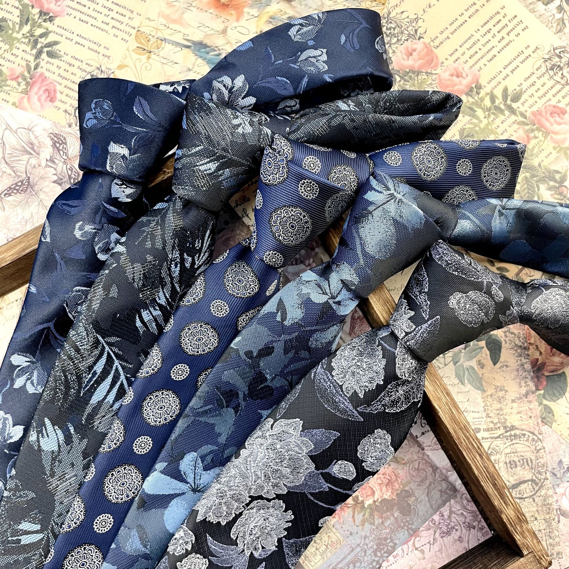 • 24 검정과 파랑 꽃 넥타이 핸드 타이