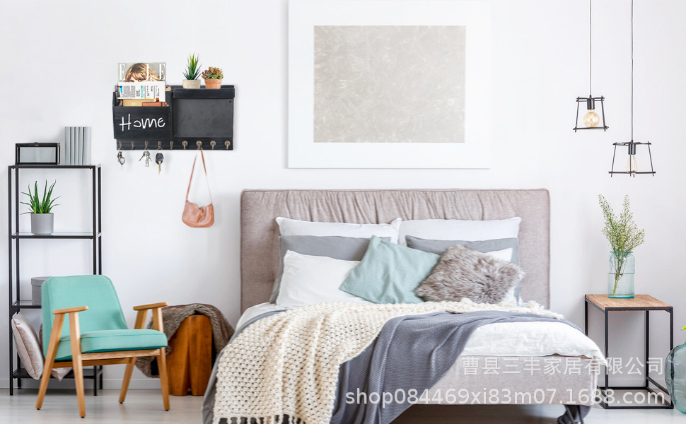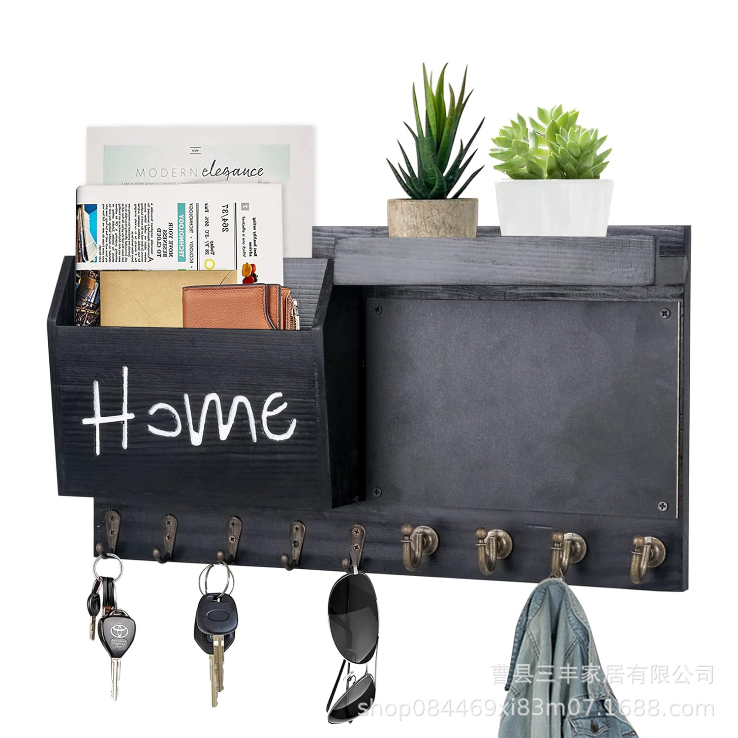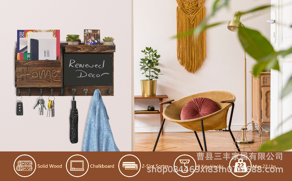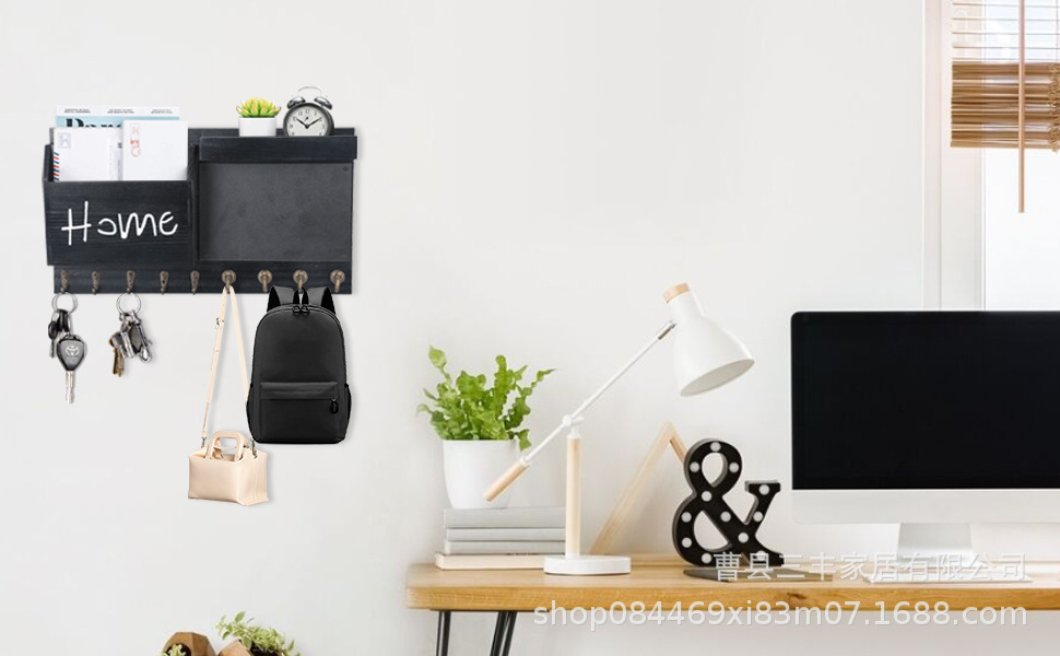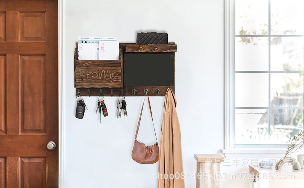 작은 칠판 편지 보관 랙 베란다 벽걸이 후크 코트와 모자 랙이있는 국경 간 나무 우편 키 랙스토어 가기